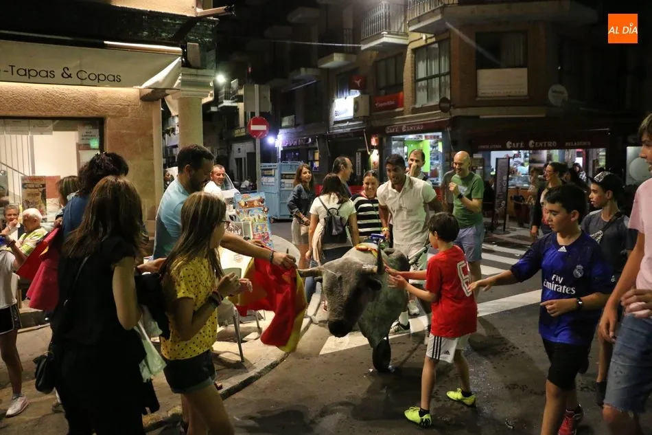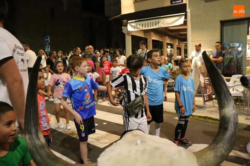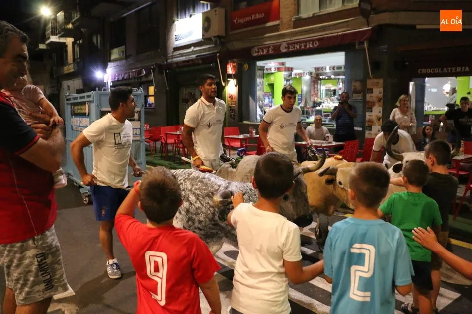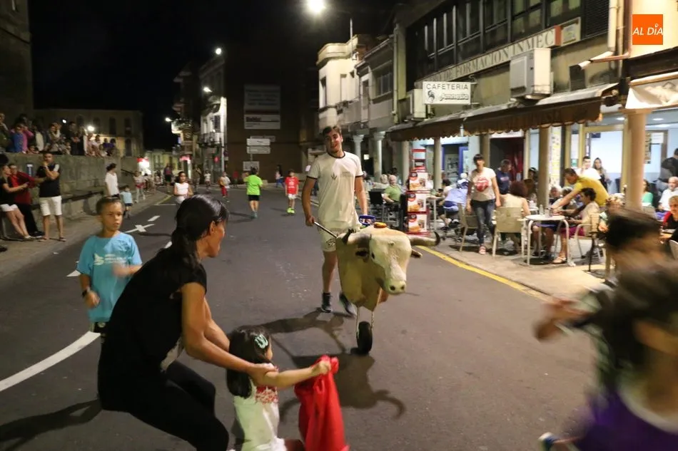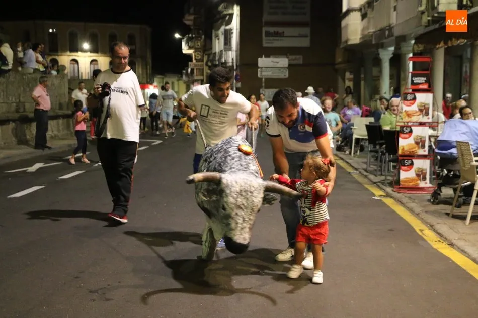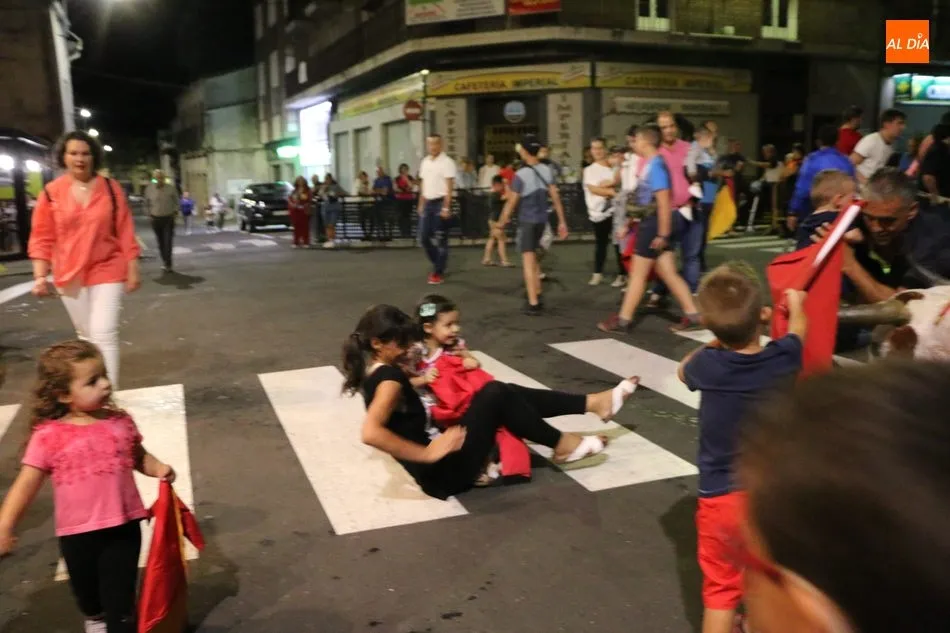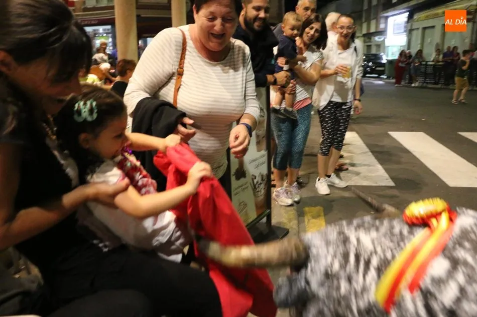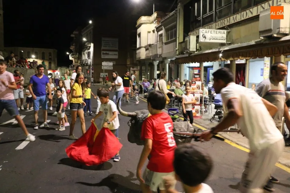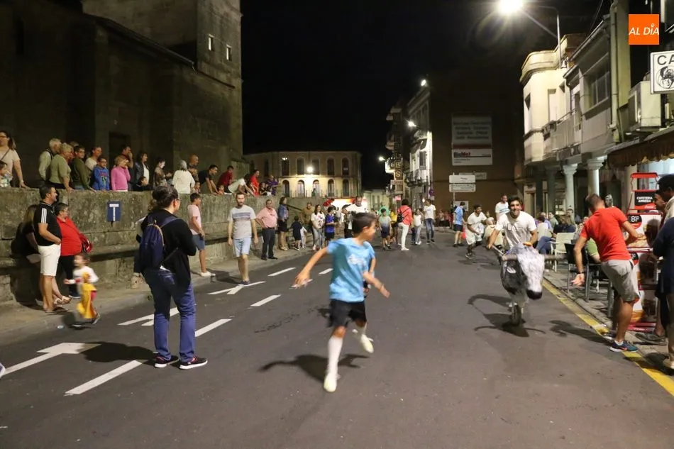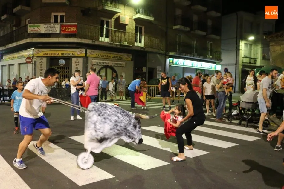 A las diez de la noche estaba anunciada la salida del primero de los encierros, y allí aguardaban los más valientes con muletas y capotes para hacer pasar a los morlacos de Carlos Huertos, todo un espectáculo que además de divertir crea afición a la fiesta de los toros, especialmente a los festejos populares.