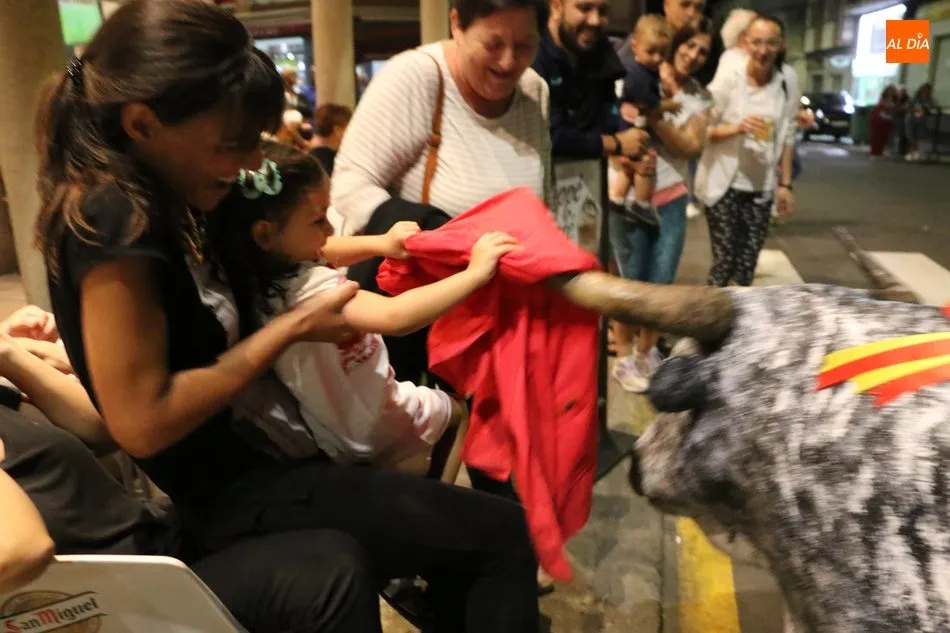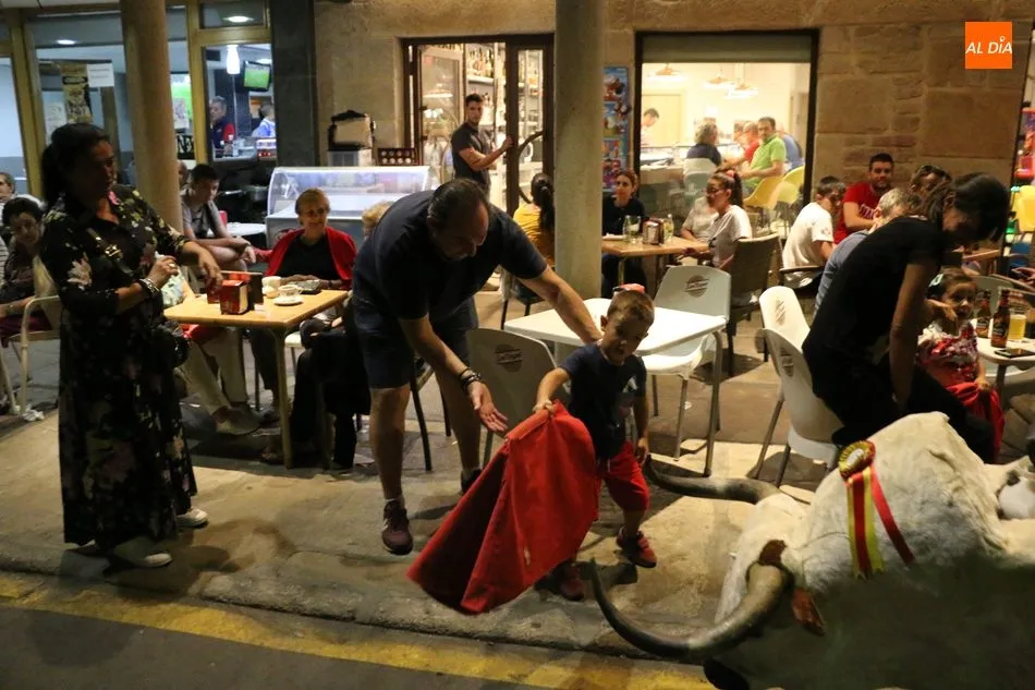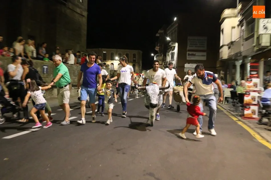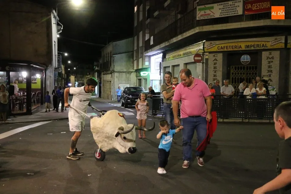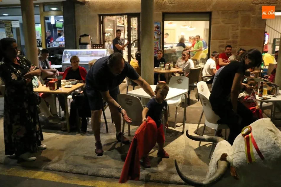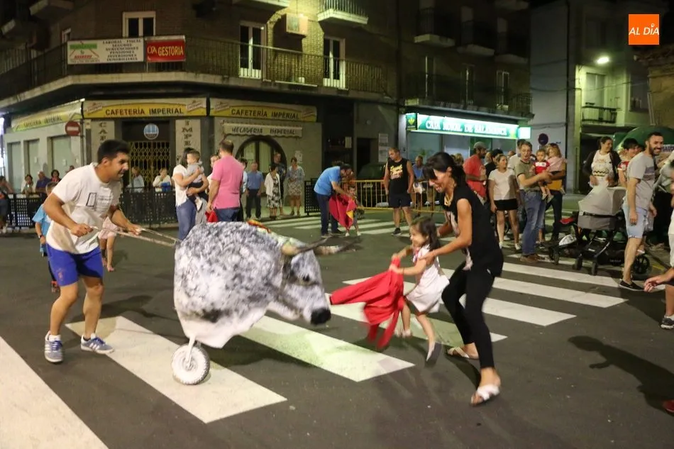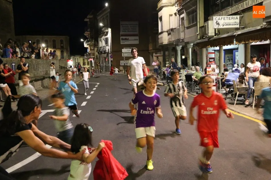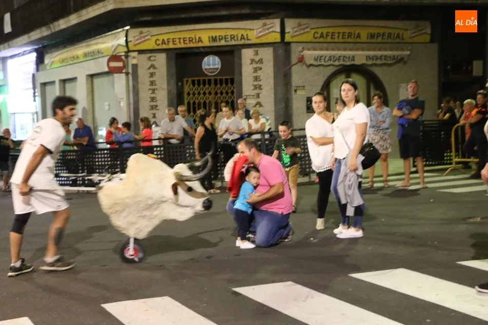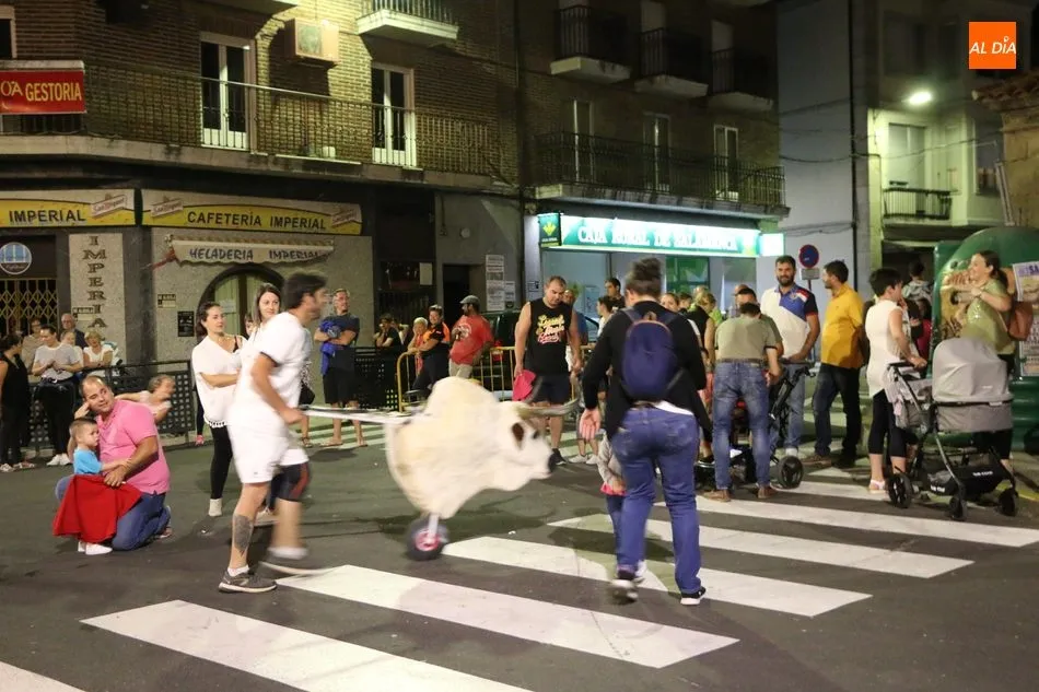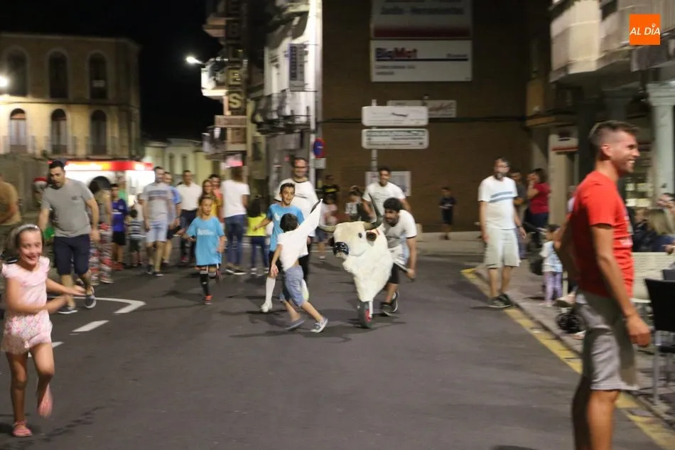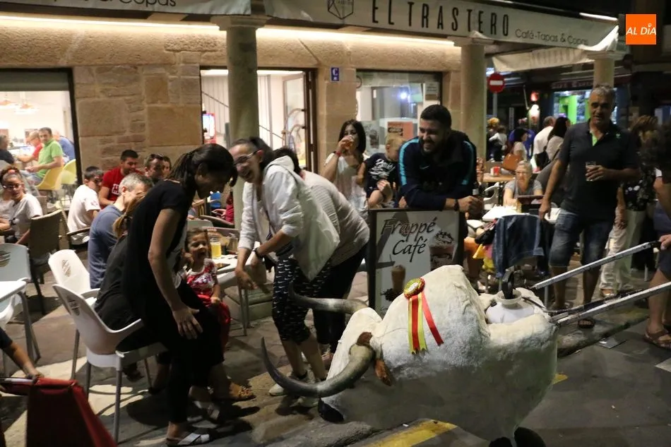 A las diez de la noche estaba anunciada la salida del primero de los encierros, y allí aguardaban los más valientes con muletas y capotes para hacer pasar a los morlacos de Carlos Huertos, todo un espectáculo que además de divertir crea afición a la fiesta de los toros, especialmente a los festejos populares.