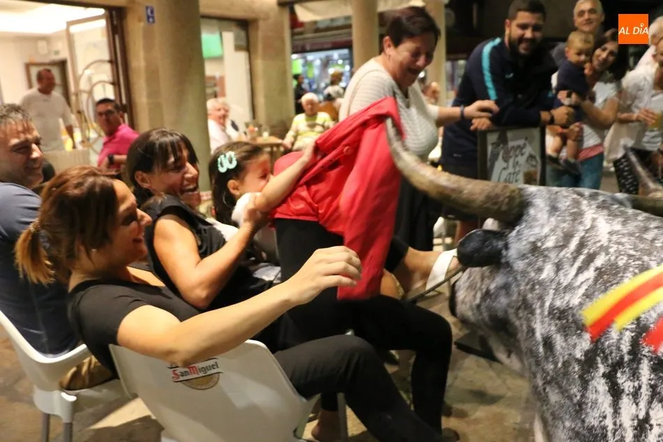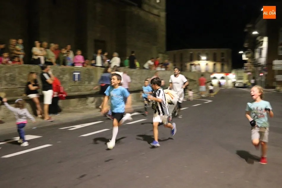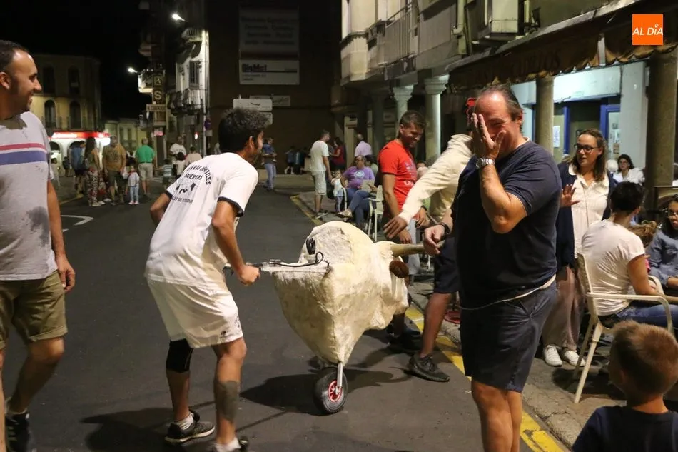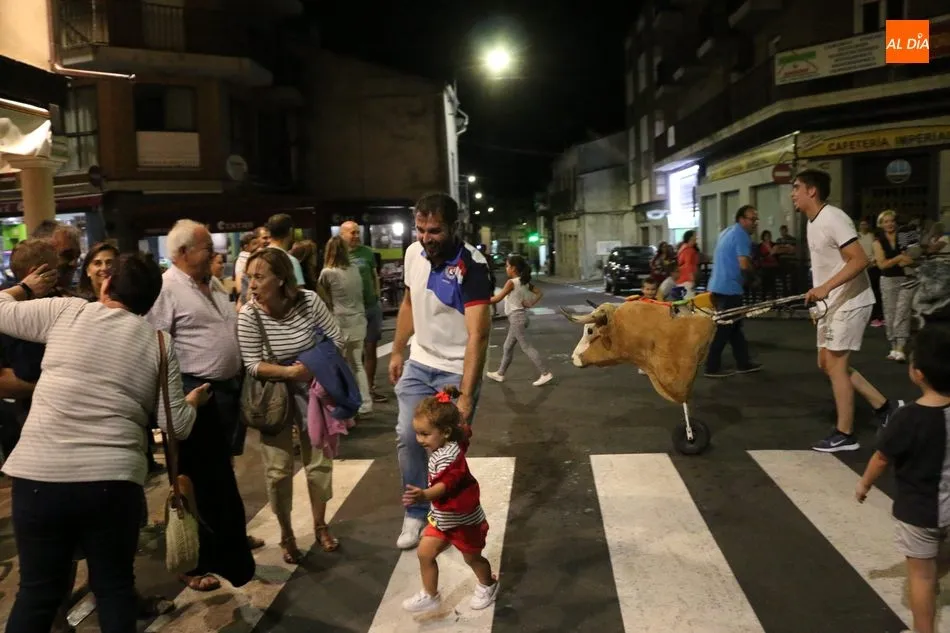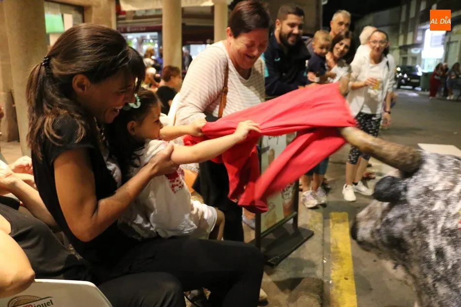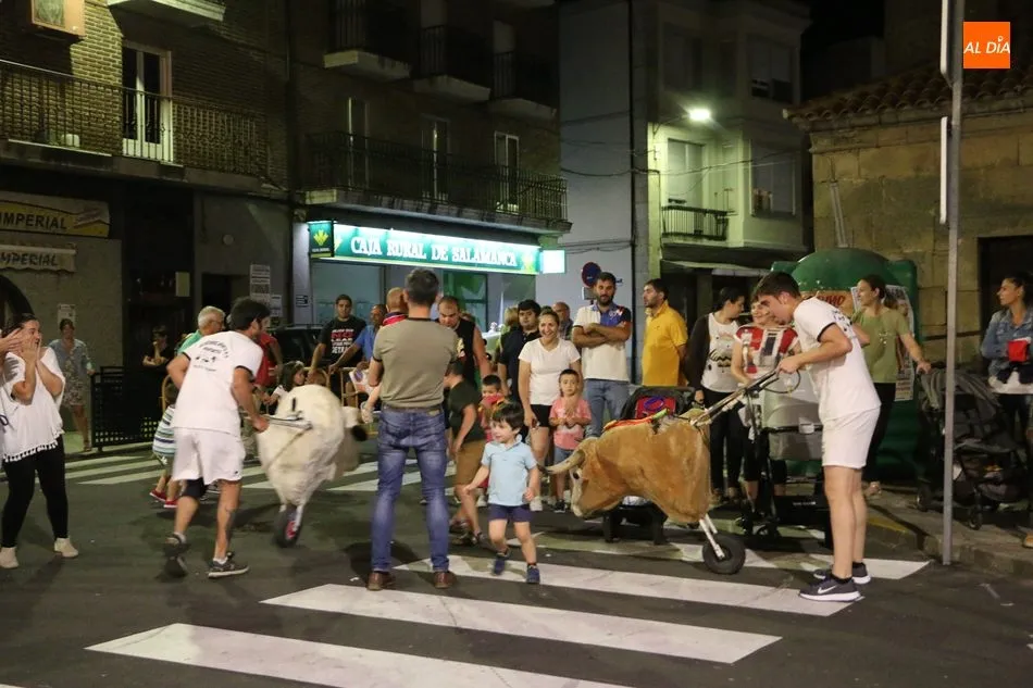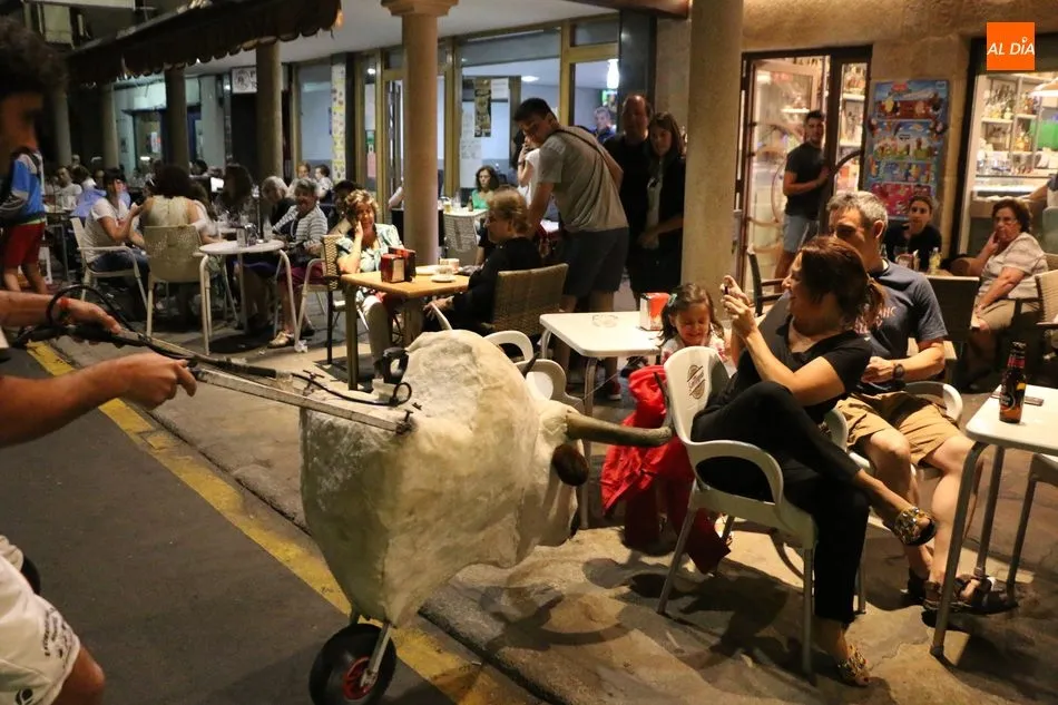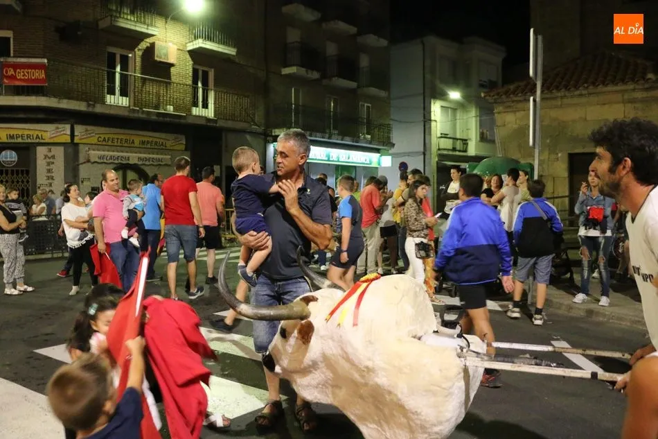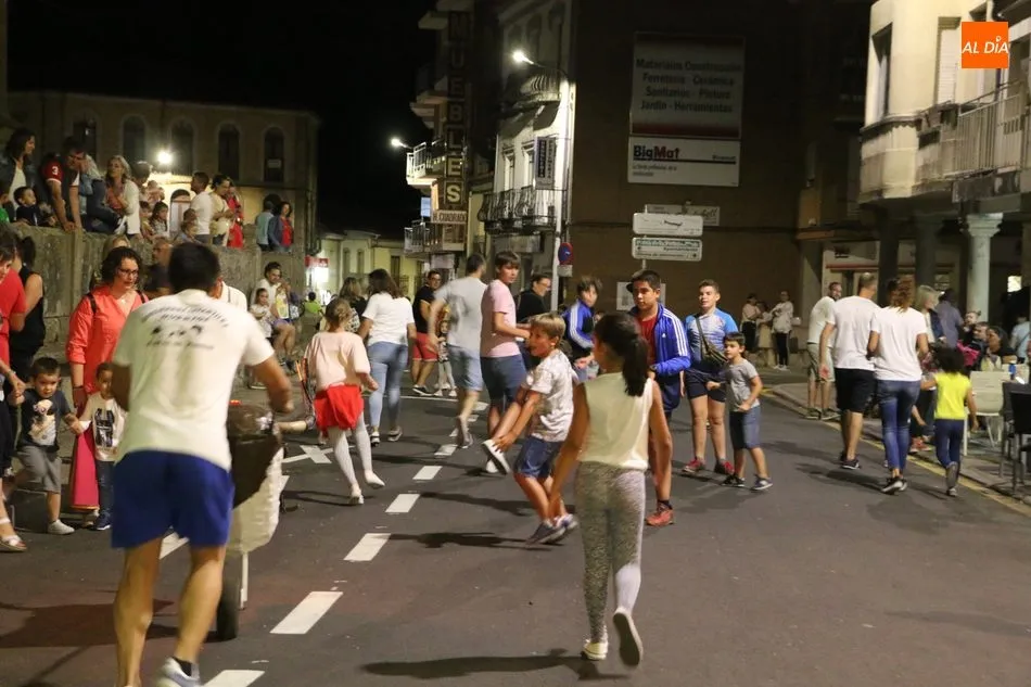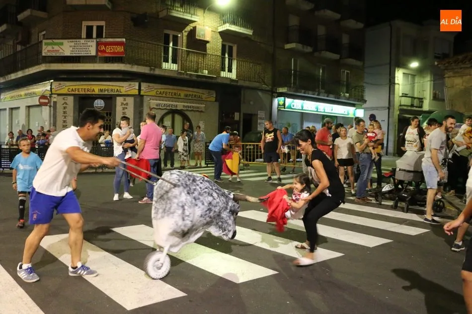 A las diez de la noche estaba anunciada la salida del primero de los encierros, y allí aguardaban los más valientes con muletas y capotes para hacer pasar a los morlacos de Carlos Huertos, todo un espectáculo que además de divertir crea afición a la fiesta de los toros, especialmente a los festejos populares.