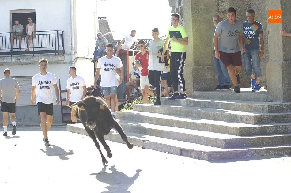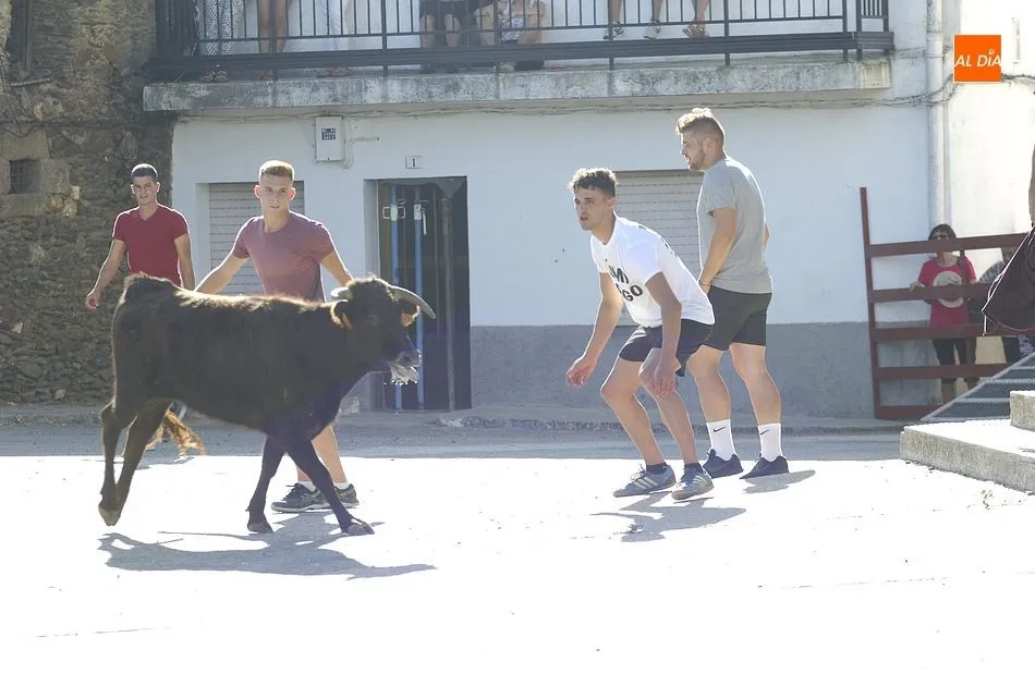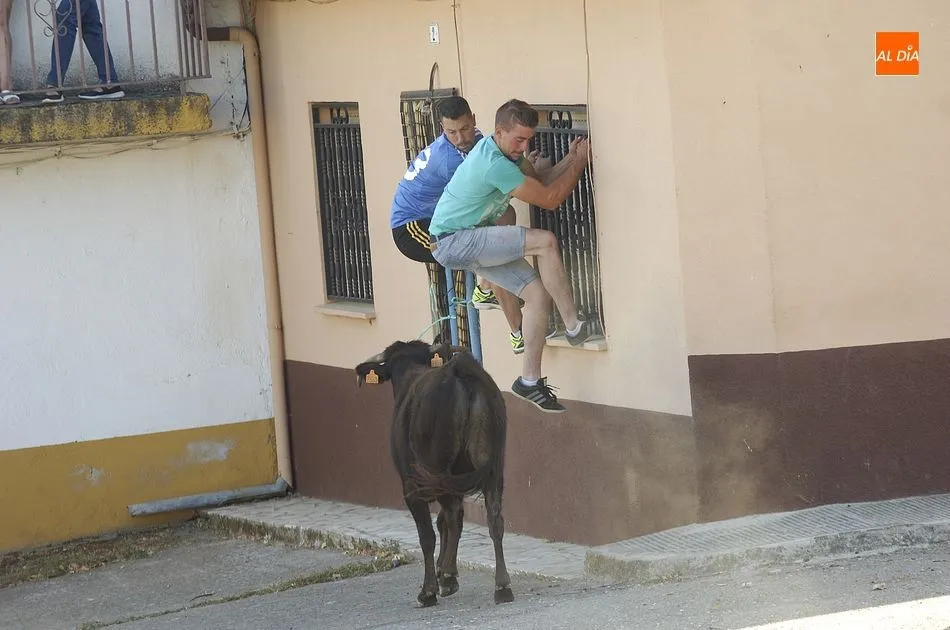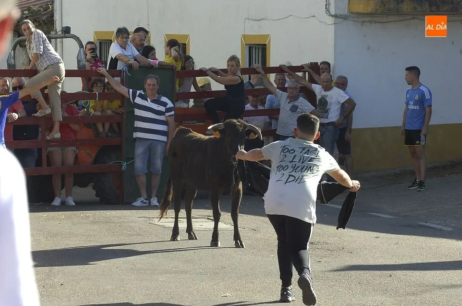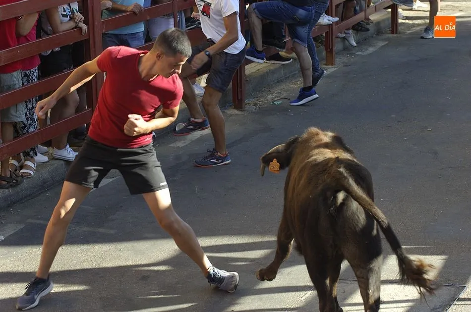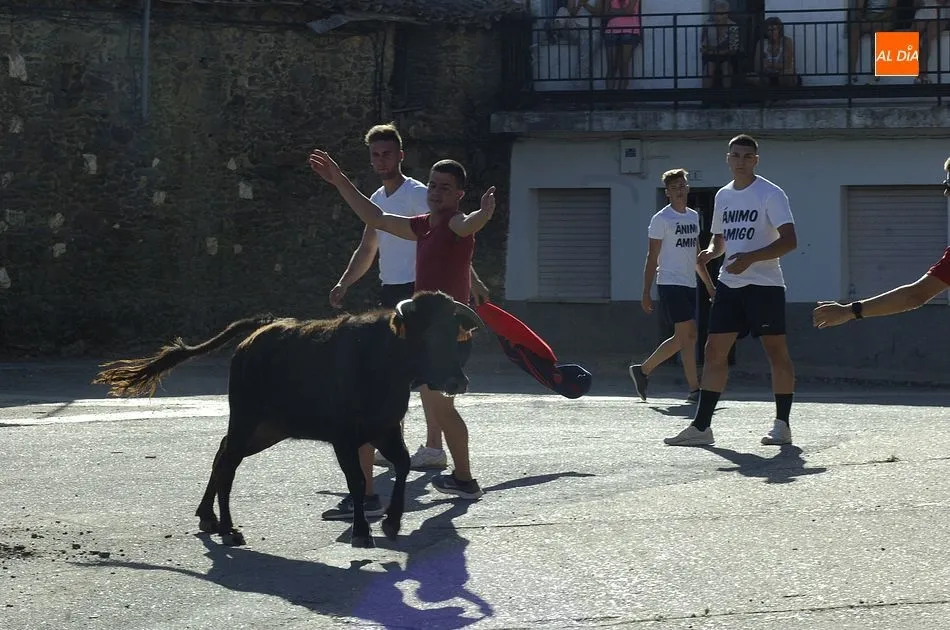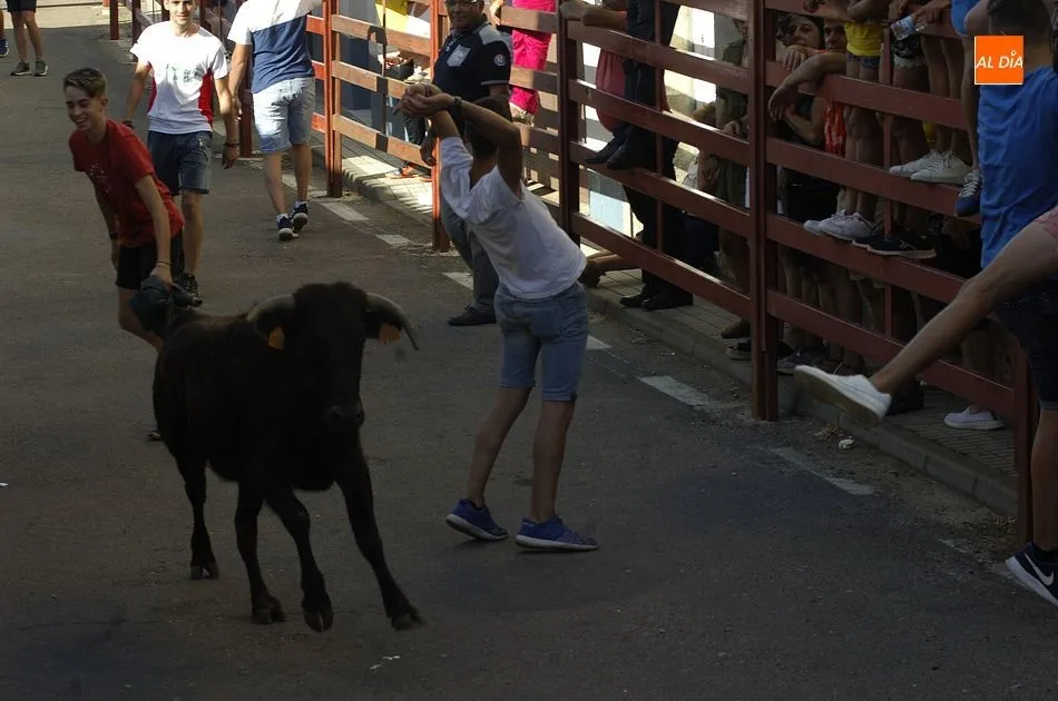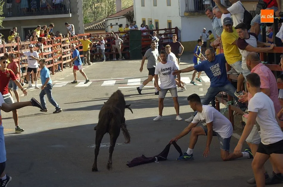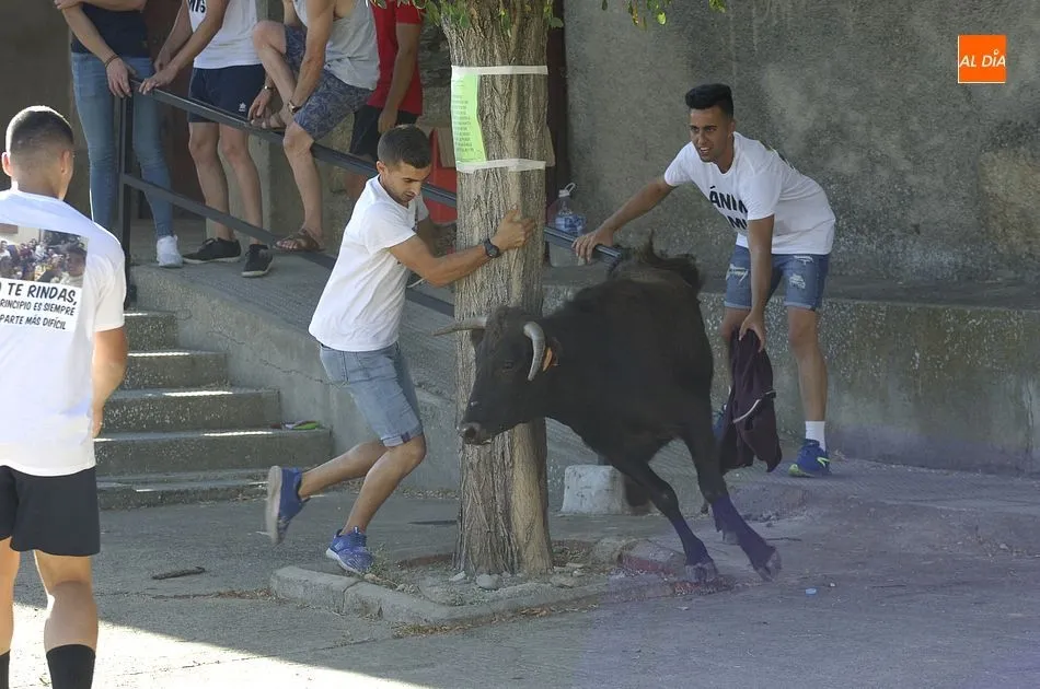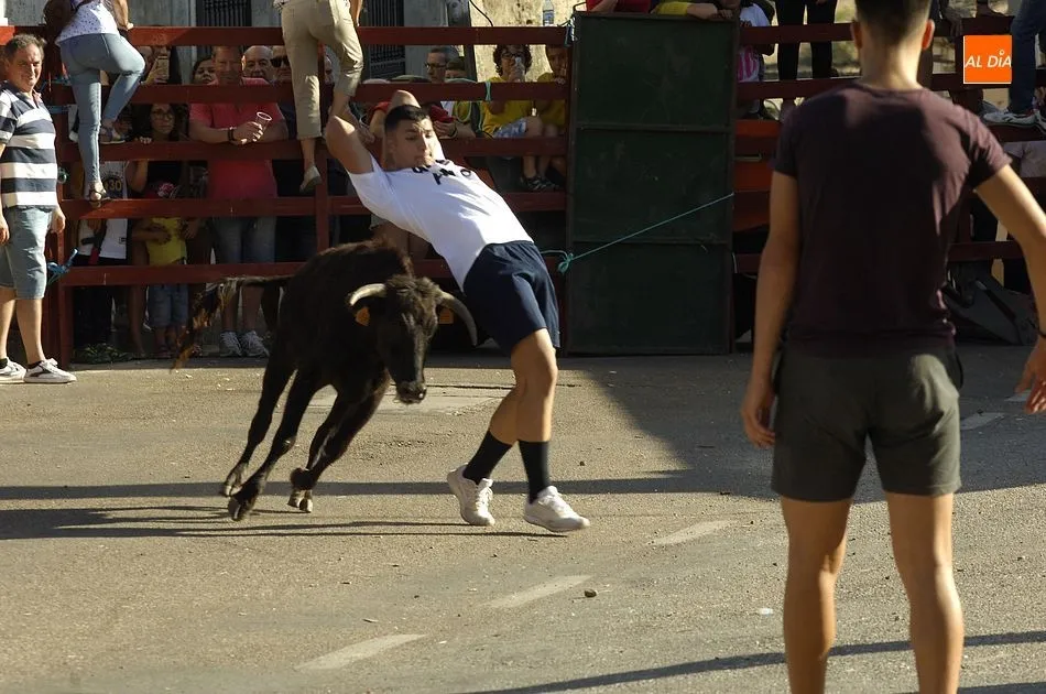 Tras una mañana de jueves dedicada a los más pequeños con actividades programadas por los propios quintos, los más mayores llegando el medio día se sumaron a la segunda actividad, una ruta de pinchos por los bares de la localidad, hasta que por la tarde llegara la hora de demostrar la valentía y afición taurina con un espectáculo de recortes, una suelta de vaquillas para su toreo al estilo tradicional por una de las calles principales del pueblo y la plaza donde se encuentra clavado el pino que hace unos días cortaron los quintos con ayuda de profesionales del corte de madera.
