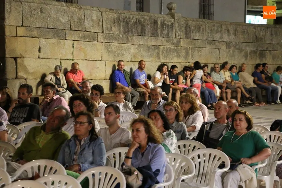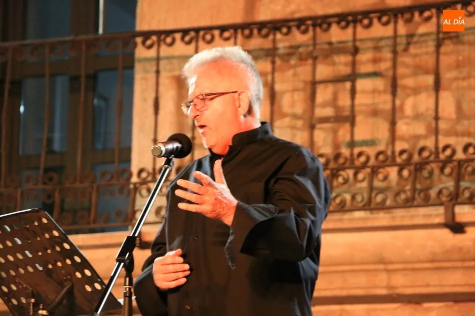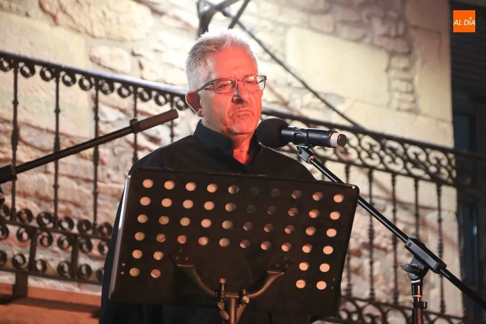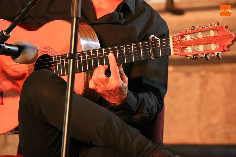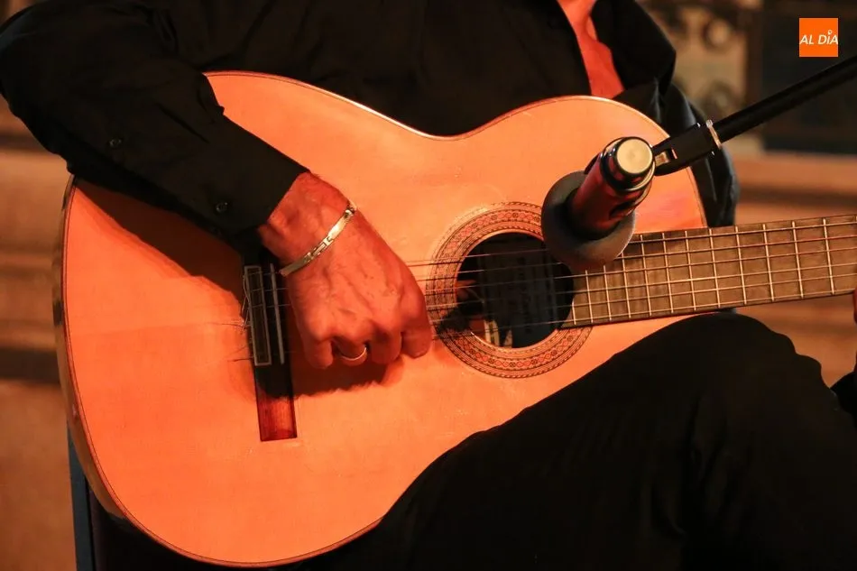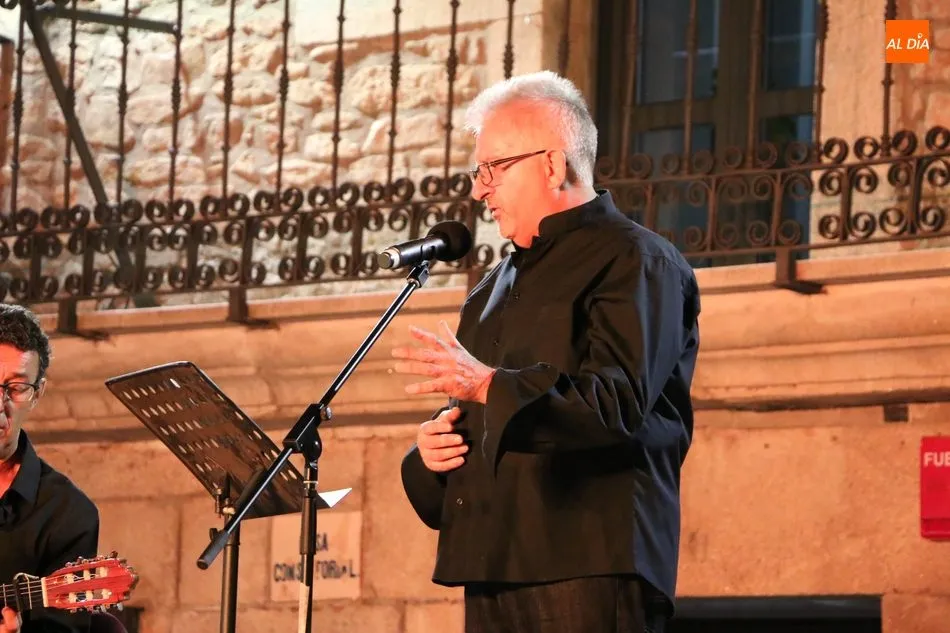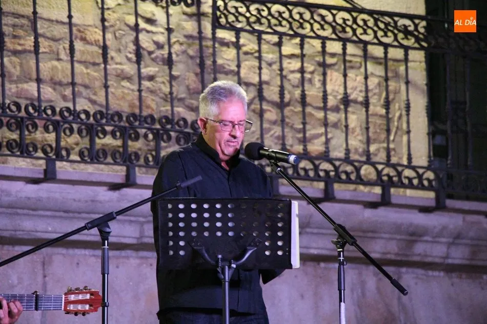 Una bella mirada a la poesía de siempre bajo los acordes de la guitarra española en un marco como la Plaza de España y con ?Petrus?, la torre de la iglesia, de centinela.
