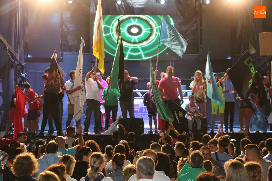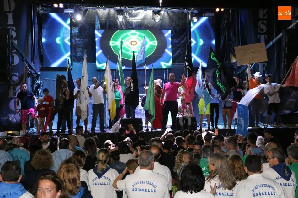 Una a una, anunciadas por Santos, fueron desfilando a su llegada a la Plaza tras un intenso y maratoniano pasacalles protagonizado por la charanga La Clave. Con todas las banderas sobre el escenario de la disco-móvil Estrella Show, se procedía a la entrega del premio de un jamón a la presentación más original de la noche, para proseguir con la música hasta altas horas de la madrugada de este jueves.