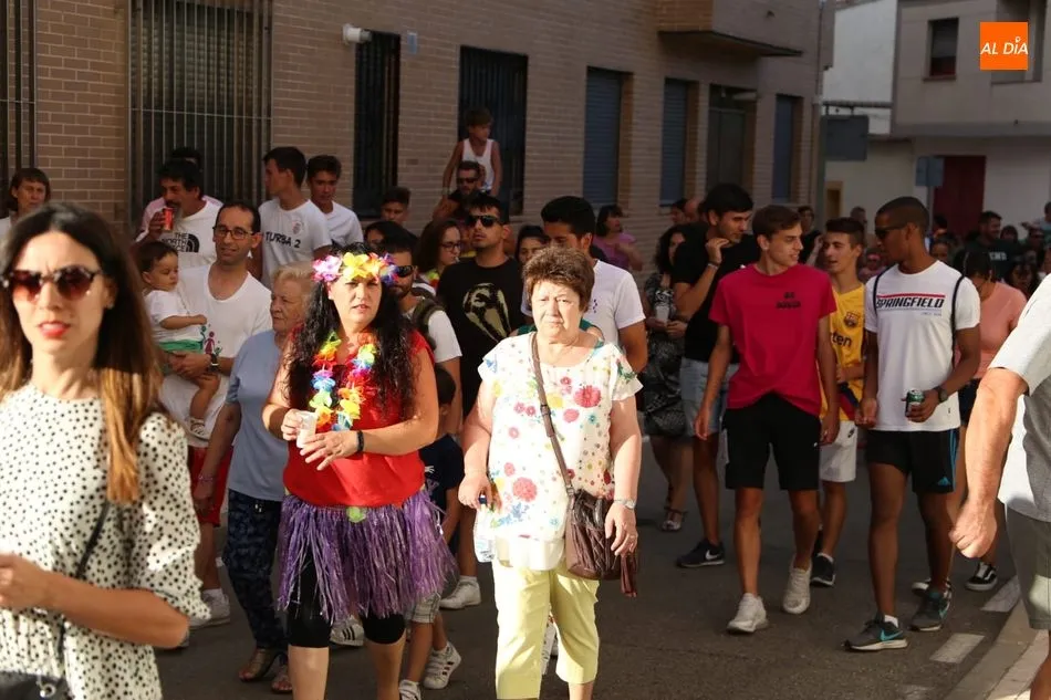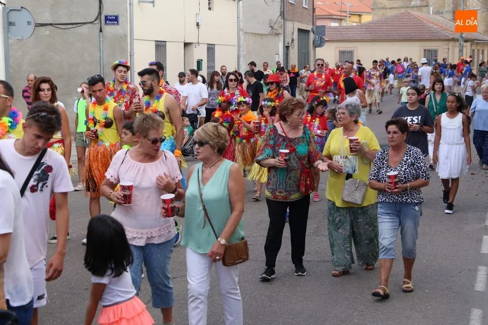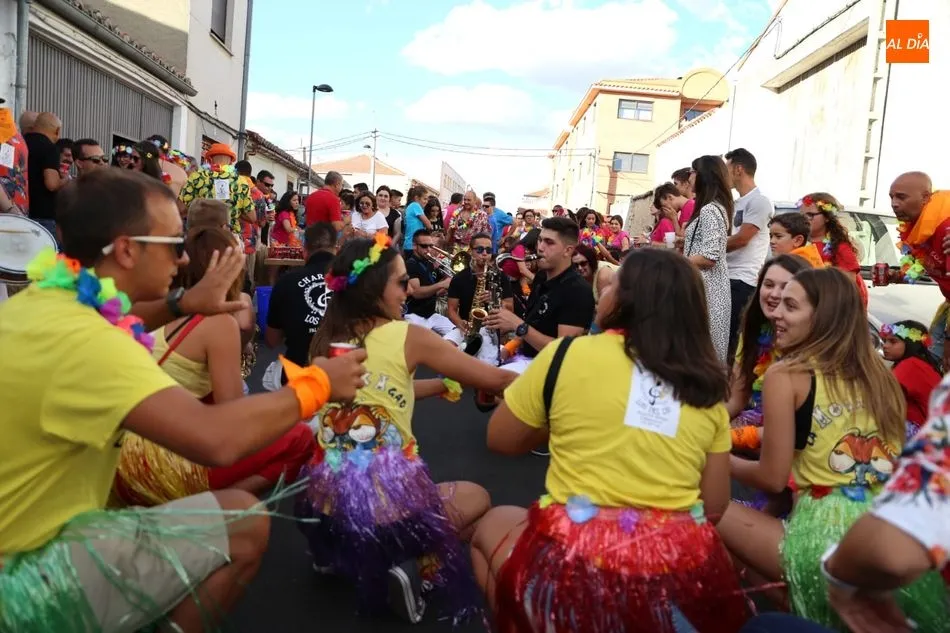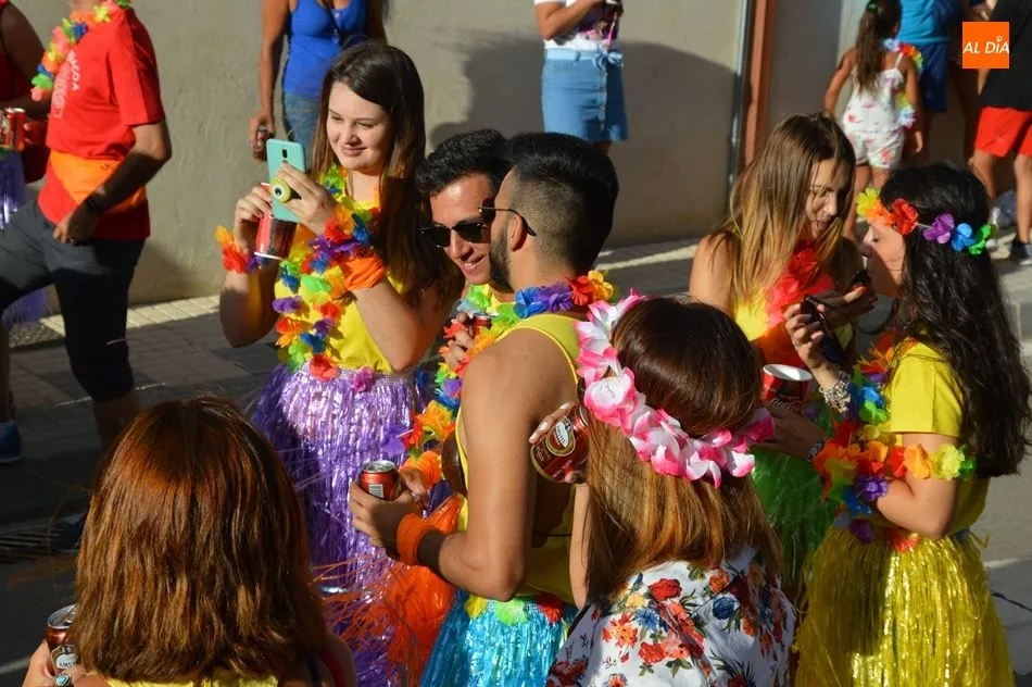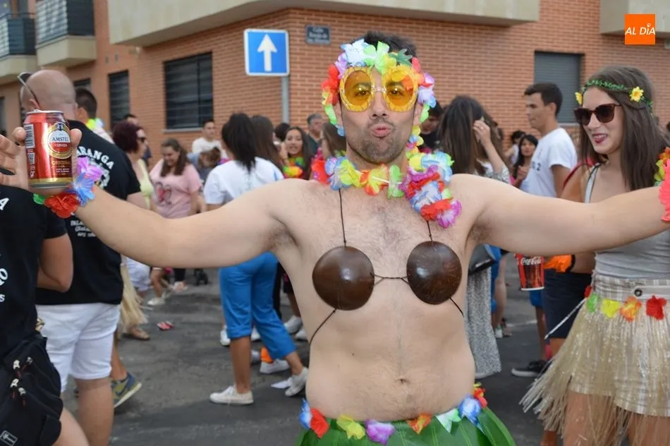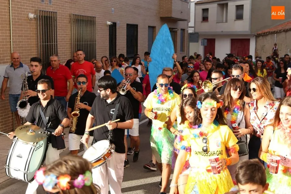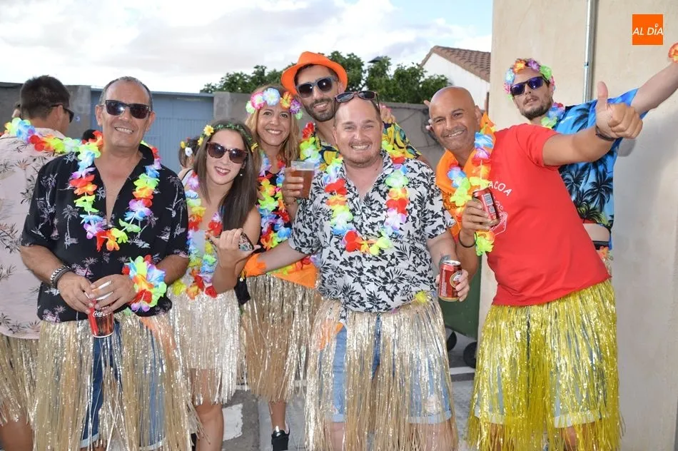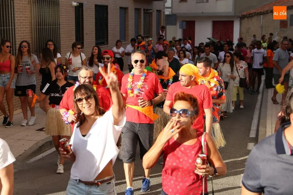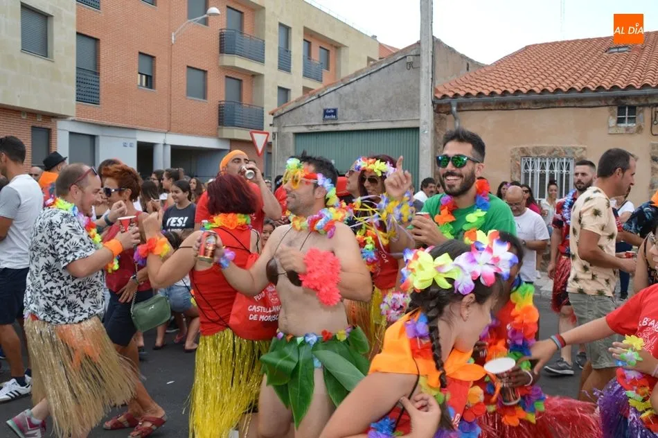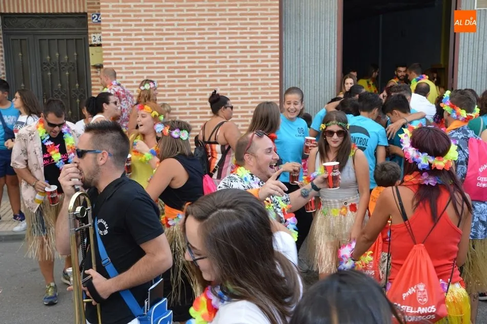 Castellanos de Moriscos disfruta ya sus fiestas patronales en honor al Santísimo Cristo de las Batallas. Desde el Ayuntamiento han partido esta tarde los integrantes de las diferentes peñas para protagonizar un paseo al estilo hawaiano por las calles del municipio. En el recorrido han estado acompañados por la música de la charanga Los del Lío y han realizado varias paradas para reponer fuerzas, finalizando con la degustación de la ?mega empanada? de Castellanos de Moriscos.
