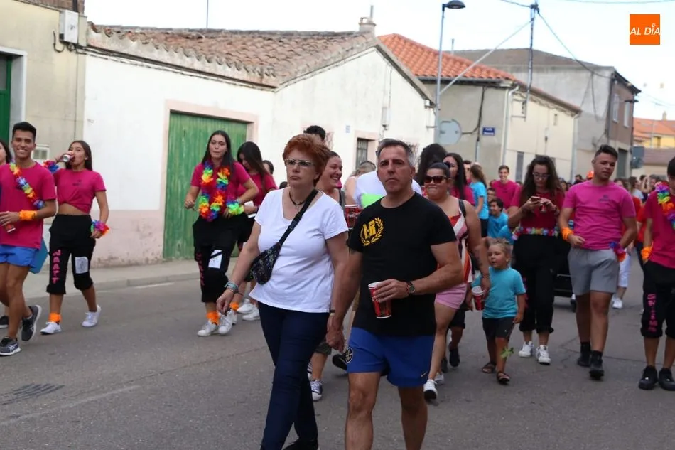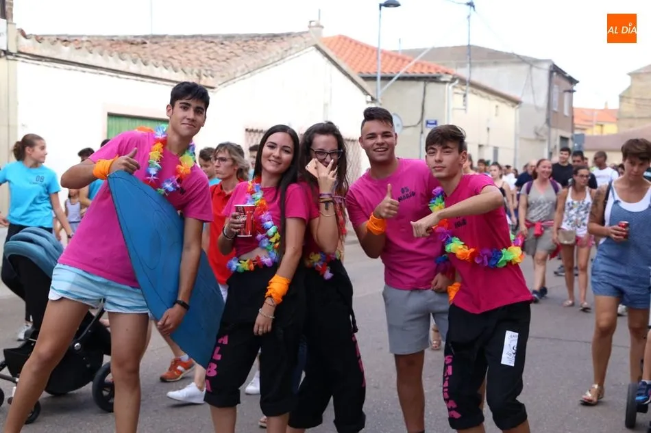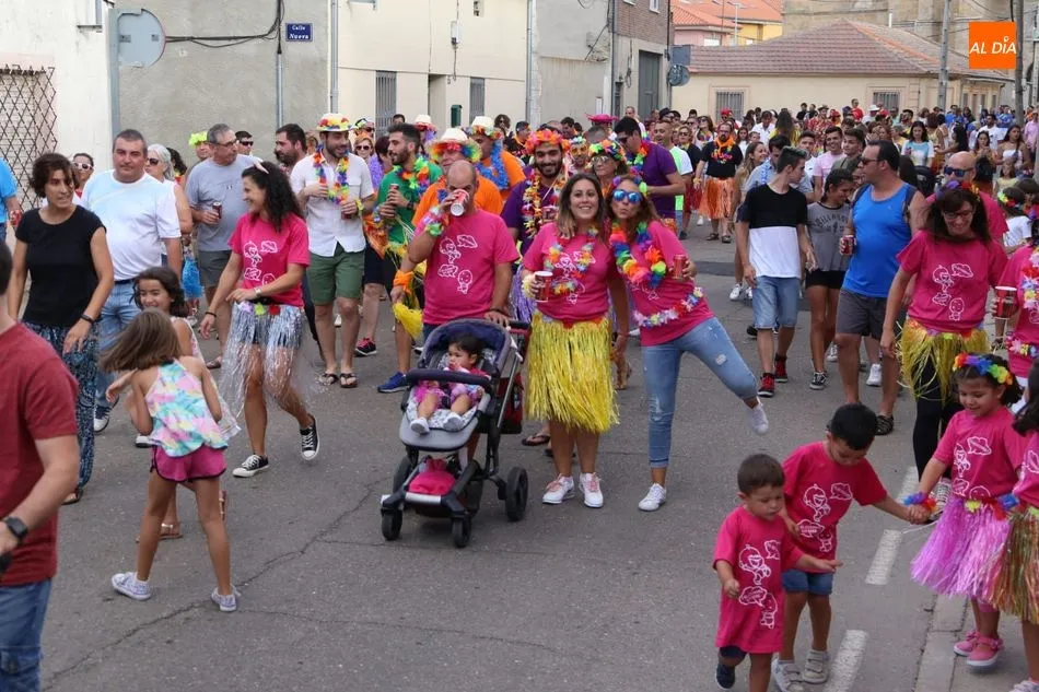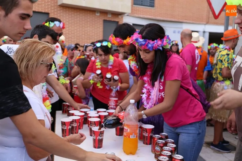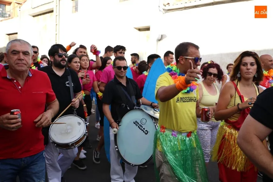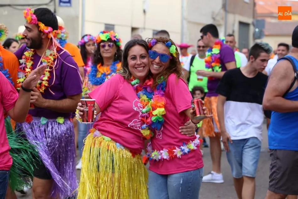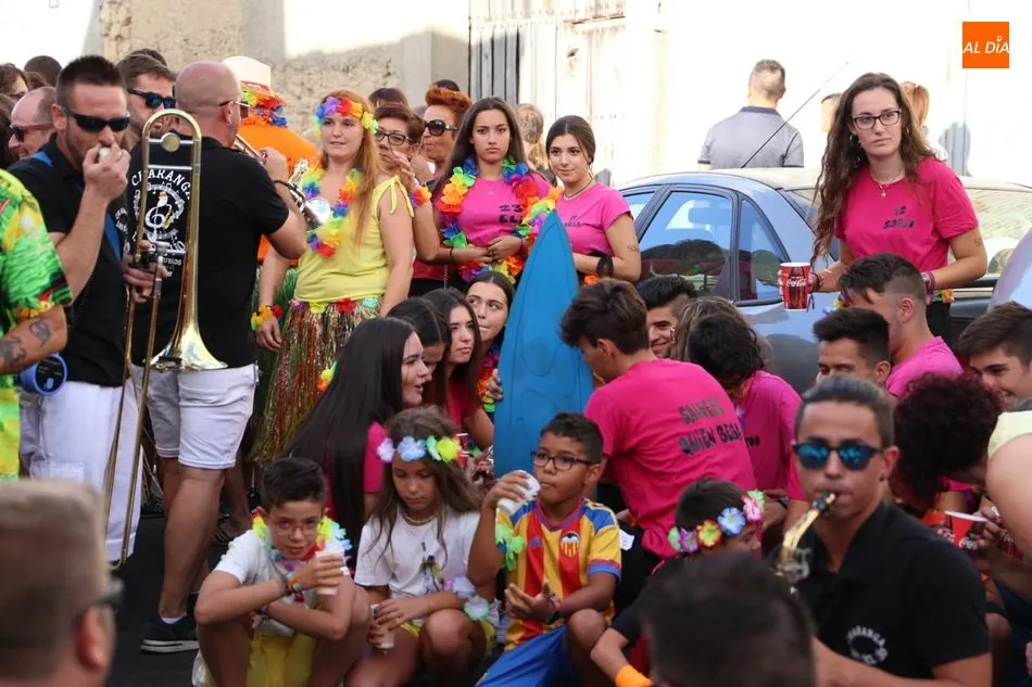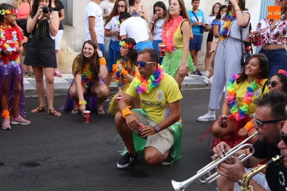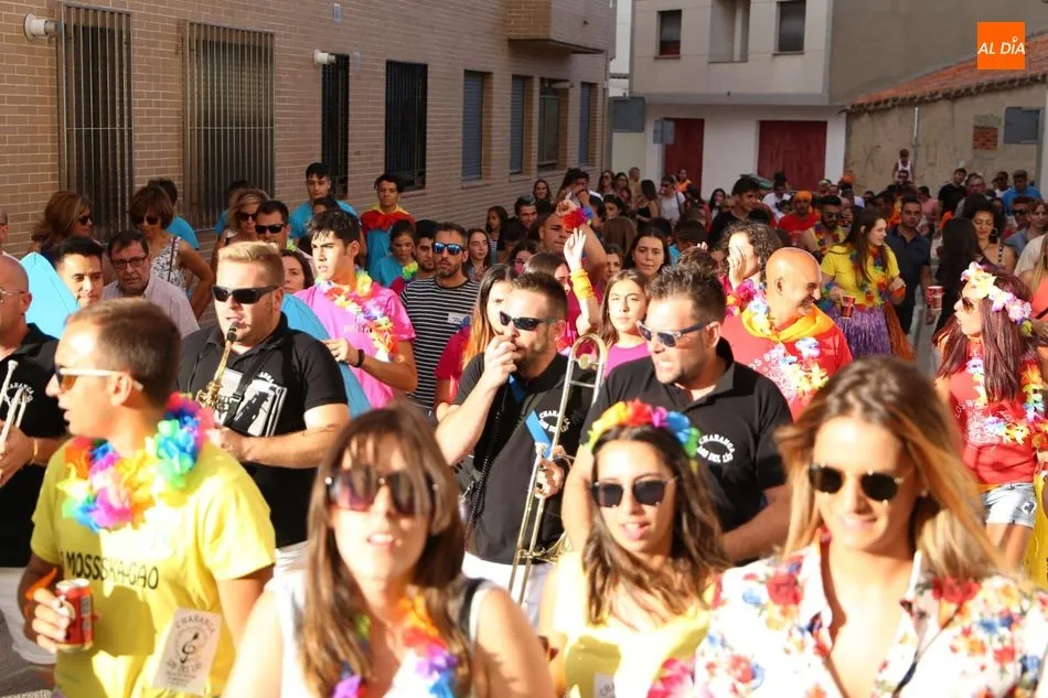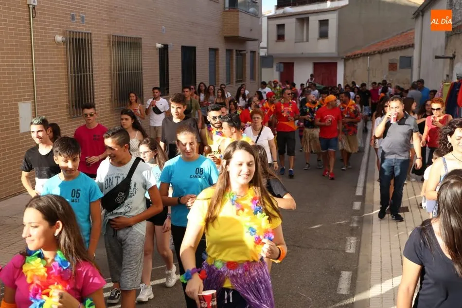 Castellanos de Moriscos disfruta ya sus fiestas patronales en honor al Santísimo Cristo de las Batallas. Desde el Ayuntamiento han partido esta tarde los integrantes de las diferentes peñas para protagonizar un paseo al estilo hawaiano por las calles del municipio. En el recorrido han estado acompañados por la música de la charanga Los del Lío y han realizado varias paradas para reponer fuerzas, finalizando con la degustación de la ?mega empanada? de Castellanos de Moriscos.