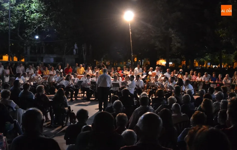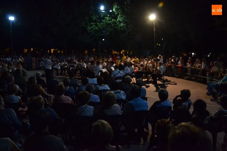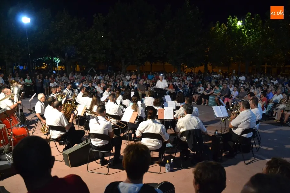 La secuencia musical nocturna que está viviendo esta semana Ciudad Rodrigo continuó en la jornada del jueves en el Parque de La Glorieta, cuya pista de patinaje fue escenario como todos los años de un concierto de la Banda Municipal de Música.