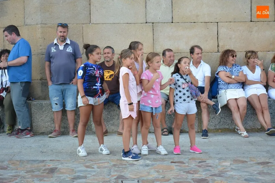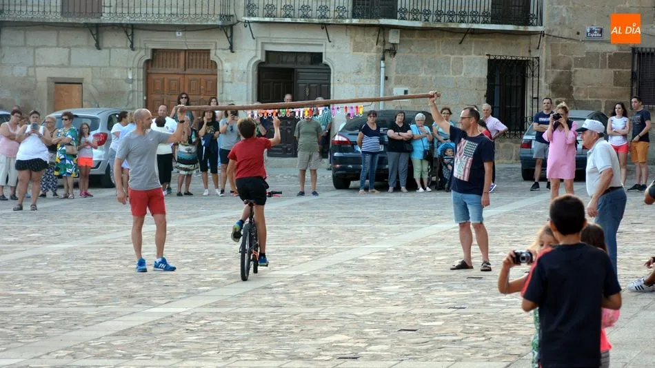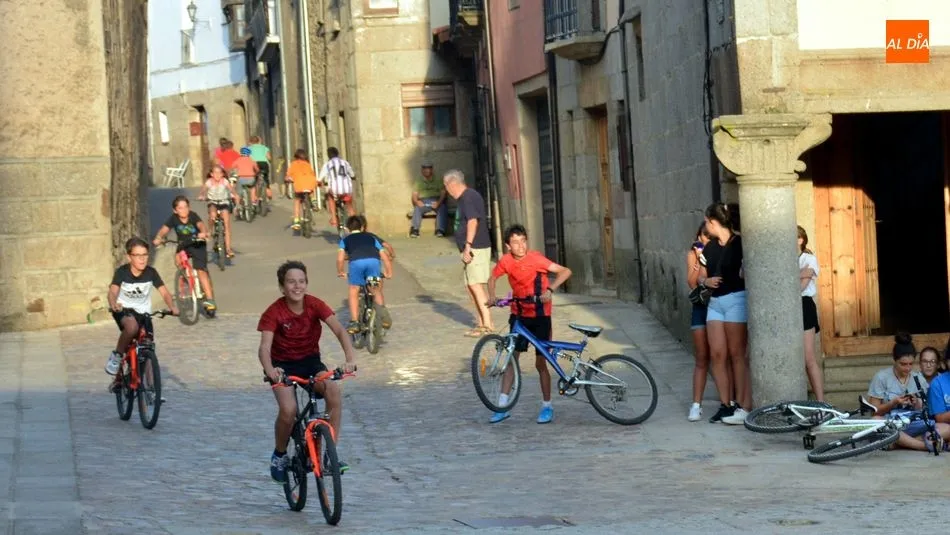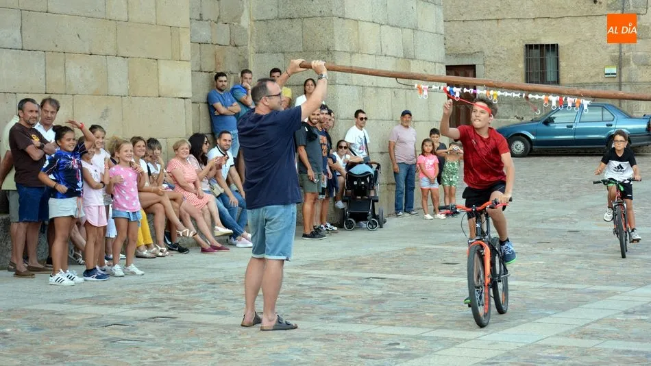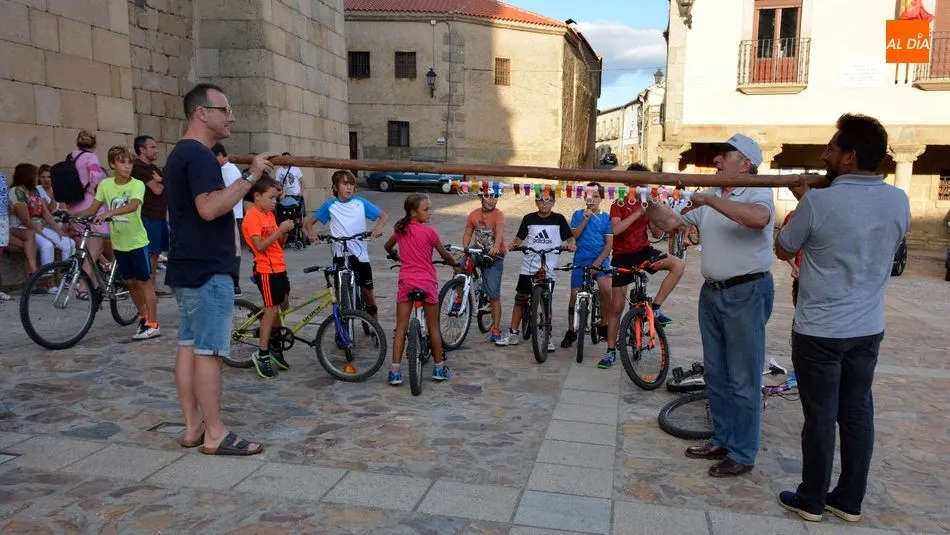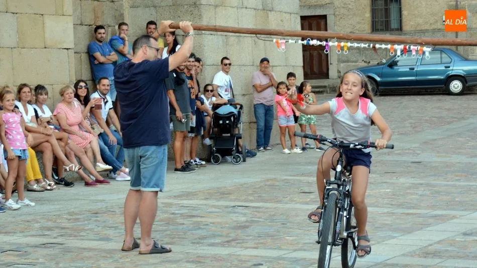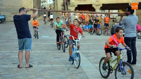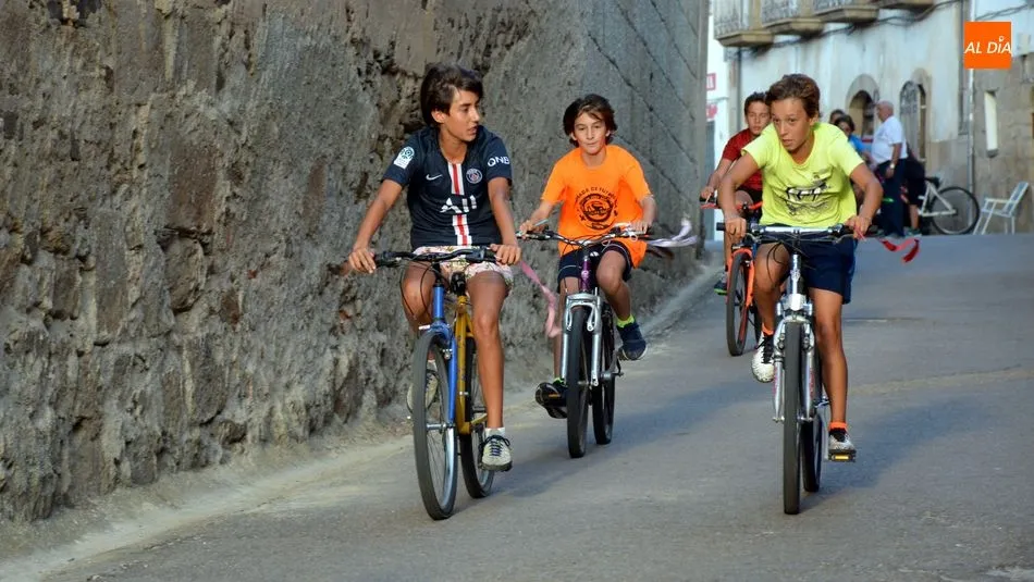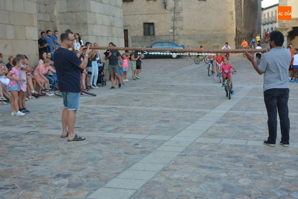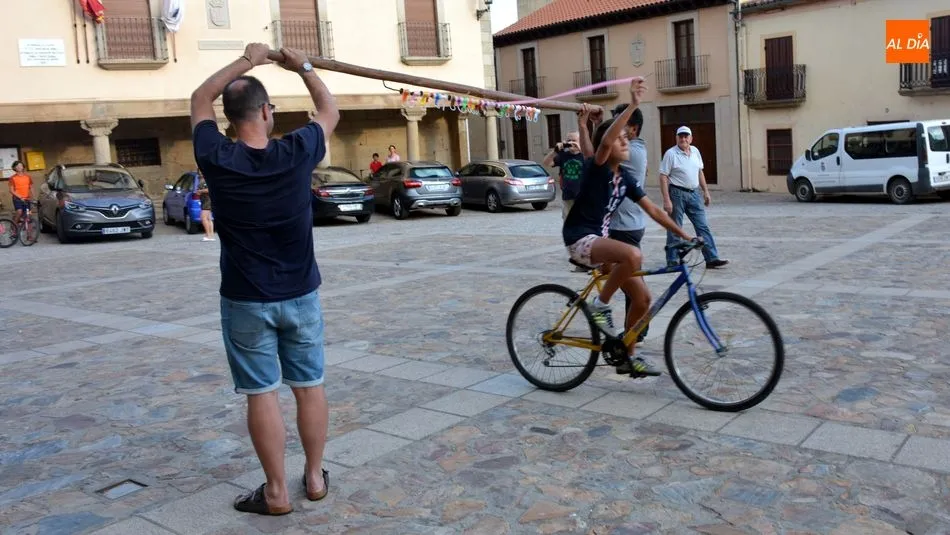 La Plaza de España de San Felices de los Gallegos ha sido escenario la tarde del jueves, 8 de agosto, del tradicional juego de la carrera de cintas, una divertida competición que durante muchos años protagonizaban los Quintos de cada año el Domingo de Resurrección. Los corredores que participaron en el espectáculo eran mucho más jóvenes que los Quintos de entonces y los burros fueron sustituidos por bicicletas. Los niños del pueblo y los muchos pequeños que pasan sus vacaciones en la villa de San Felices se divirtieron intentando coger las cintas que colgaban de un palo, que sujetaban dos voluntarios, pasando por debajo montados en sus bicicletas. Las carreras de los pequeños y sobre todo los éxitos de los que conseguían coger una de las cintas al pasar, eran reconocidos por los aplausos de los espectadores, madres, padres, abuelos y muchos vecinos de la villa que no quisieron perderse el espectáculo.