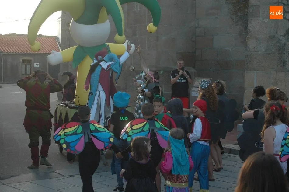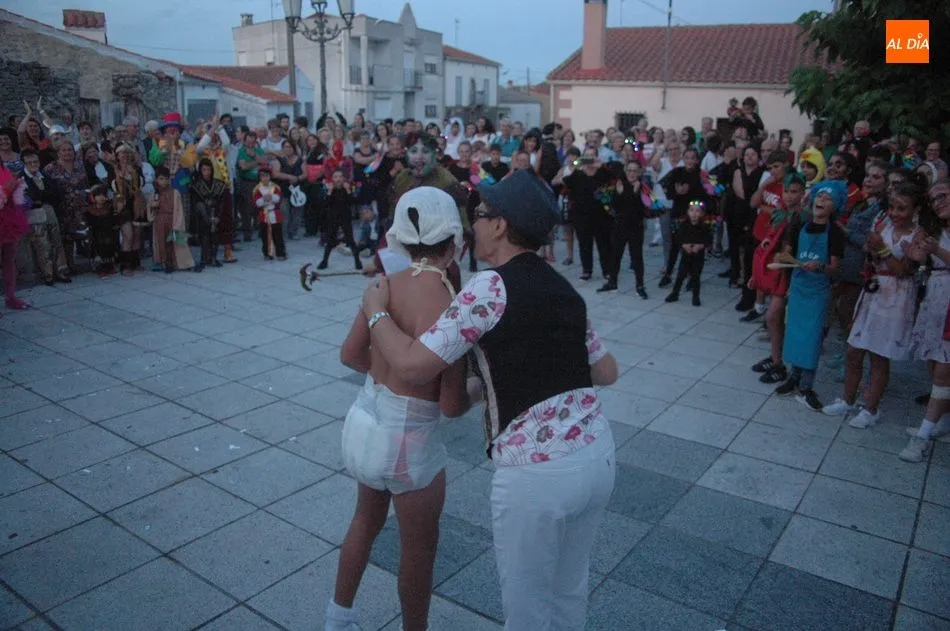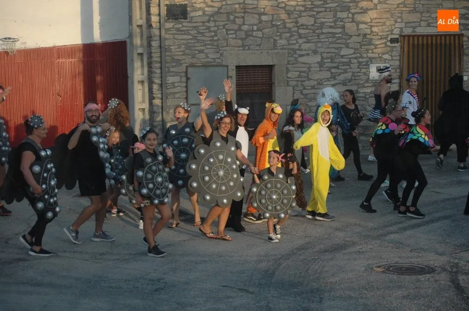 Más de 300 personas, pequeños y mayores, se daban cita este viernes en la plaza de Almendra para celebrar su ya tradicional concurso de disfraces organizado por el Ayuntamiento de la localidad, con motivo de las fiestas de verano, un evento que este año incorporaba como novedad un pasacalles, con parada en la residencia municipal de mayores, que de esta manera sus usuarios también disfrutaban del espectáculo, y una divertida bufonada que concluía en la Plaza.