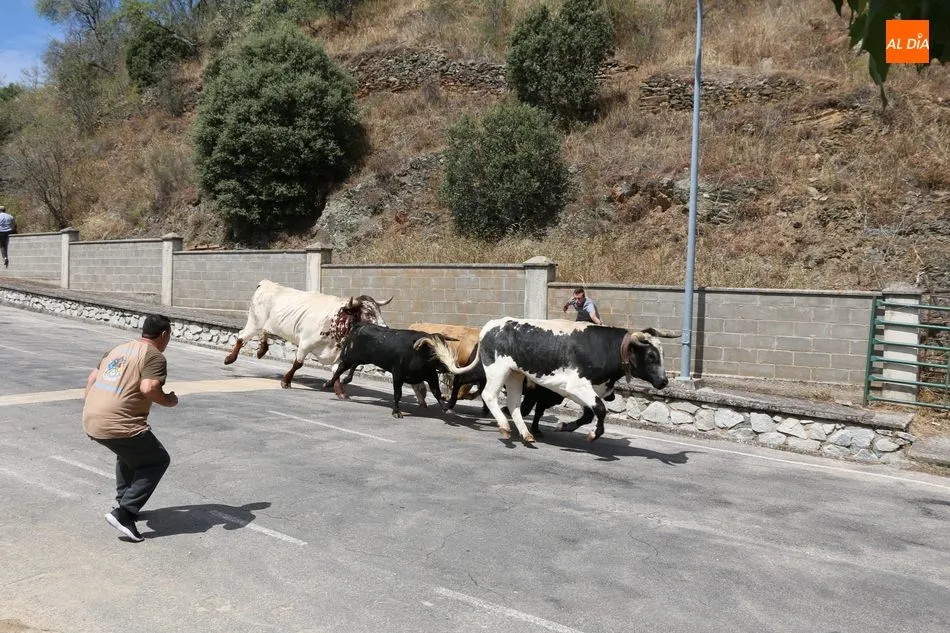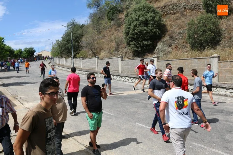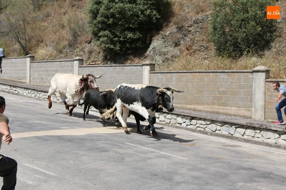 Rápido y vibrante. Así discurrió el primer encierro de las fiestas de Saucelle, festejo en el que se corrieron cuatro novillos de Valrubio, de desigual presentación. Aunque la manada se entretuvo unos minutos en las proximidades de la iglesia, una vez que los mansos arroparon a los de Gejuelo del Barro, la manada se dirigió sin titubeos hacia el coso taurino, si bien uno de los novillos se quedaría rezagado unos segundos junto con uno de los cabestros.