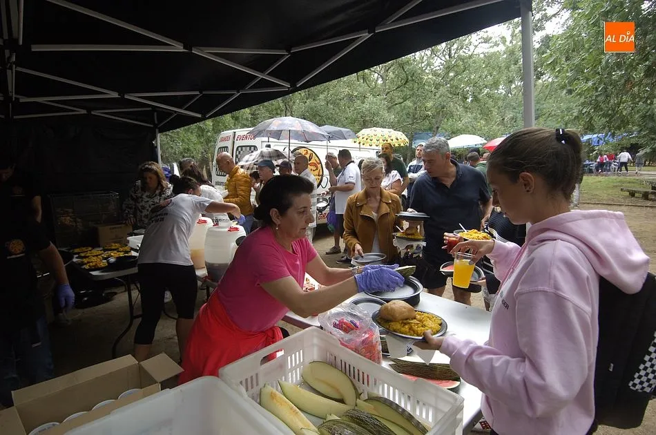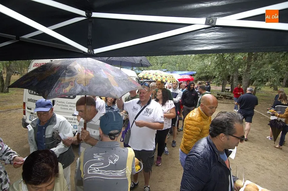 Agallas tuvo en la jornada del viernes otra de las citas de referencia de sus fiestas en honor al Santo Cristo del Buen Suceso: la gran paellada, que se vio deslucida por la lluvia que caía a la hora prevista para la comida.