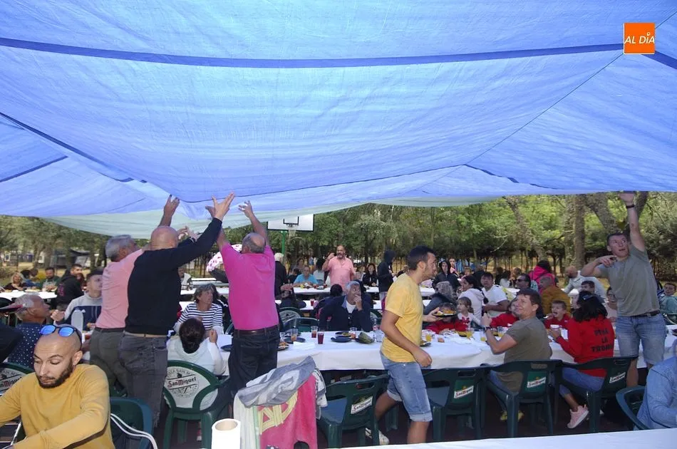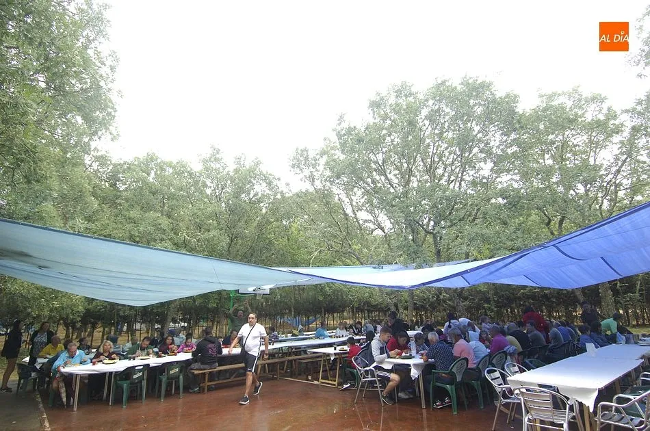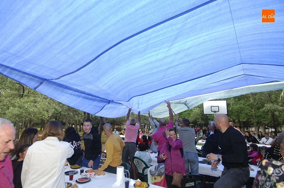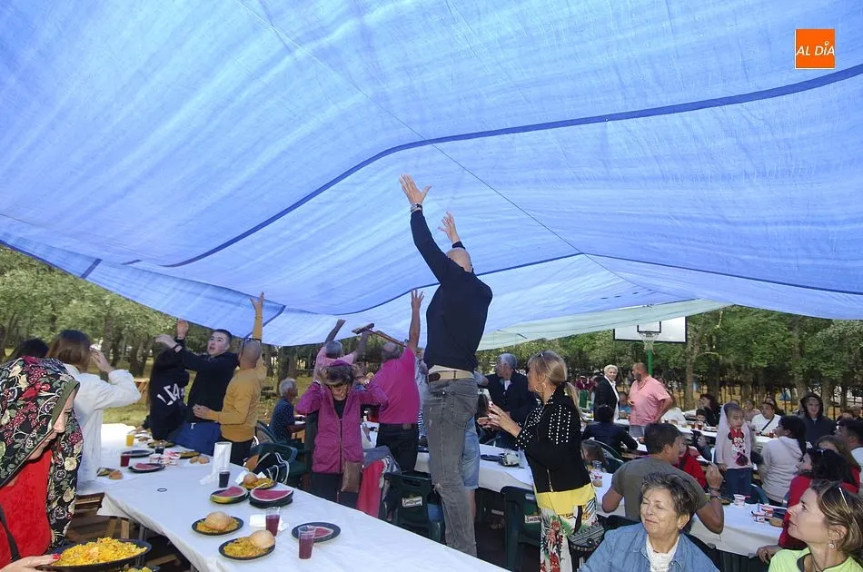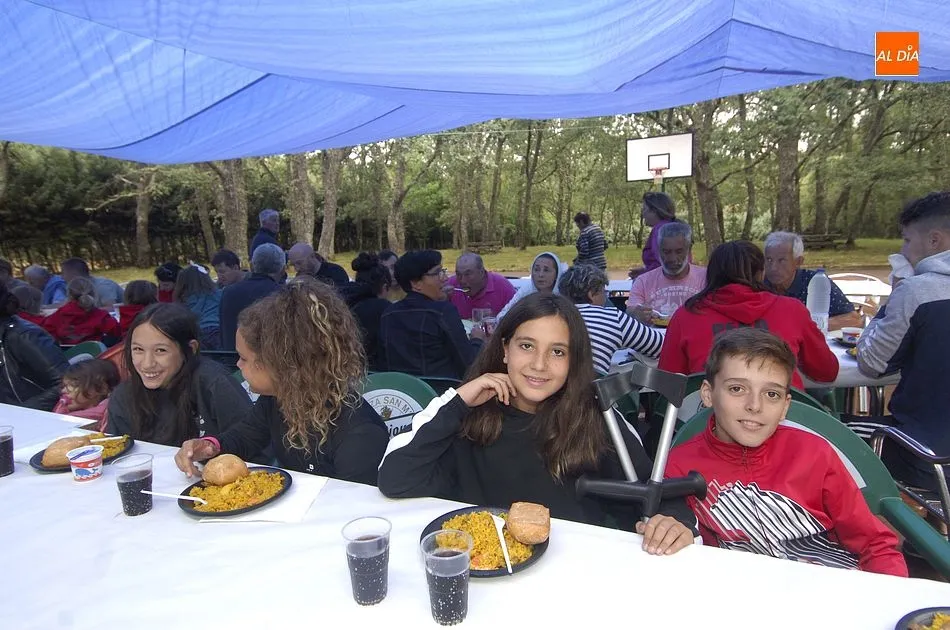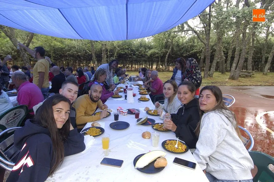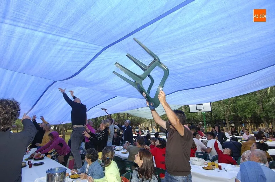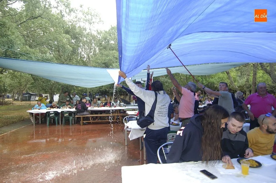 La lluvia obliga a los vecinos de Agallas a refugiarse para comer la paella festiva