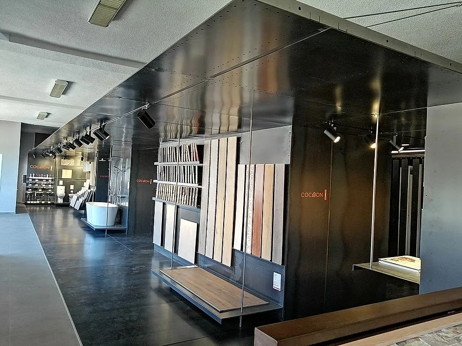Se trata de una exposición atractiva, cómoda y acogedora, para que el cliente aprecie la singularidad del producto en un nuevo concepto de tienda. La estancia será en un entorno de calma y diferenciado del espacio expositivo e la tienda. Un Ambiente nuevo, exclusivo y único que pretende acercar las últimas tendencias y formatos modernos a particulares y profesionales de la construcción, del interiorismo y la arquitectura en nuevo y acogedor espacio de trabajo, de fácil accesibilidad y funcional donde reina la elegancia, la sobriedad y el orden.