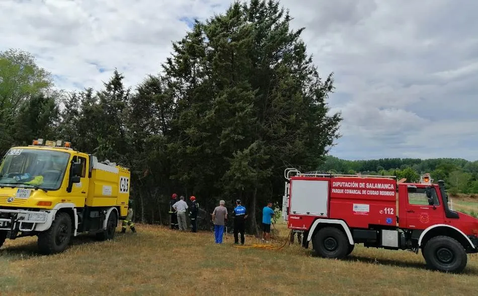 Por fortuna, un vecino se dio cuenta enseguida de que habían surgido llamas, dando rápidamente la voz de alarma. En pocos minutos, se desplazaron al lugar efectivos de los Bomberos de Ciudad Rodrigo y un equipo de extinción de la Junta de Castilla y León, movilizándose incluso el helicóptero de extinción de la Junta con base en El Bodón. El helicóptero llegó a sobrevolar Ciudad Rodrigo, pero no hizo falta que interviniese, ya que el trabajo de los equipos terrestres dio sus frutos.
