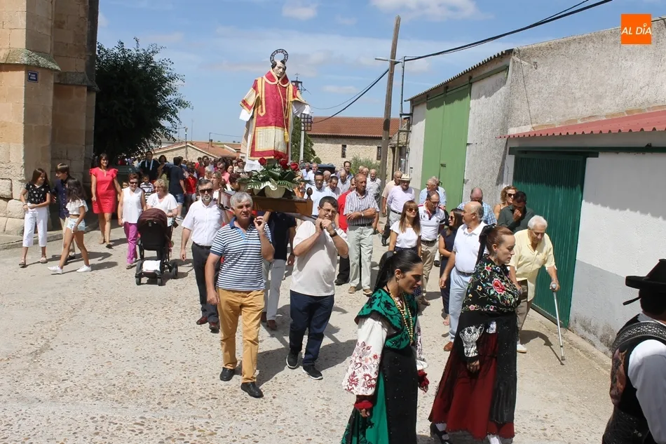 Día grande de las fiestas patronales en Rollán con la imagen del patrón San Lorenzo recorriendo las calles del municipio. Numerosos vecinos y amigos del municipio se han sumado a una jornada en la que los actos religiosos han sido protagonistas, con la celebración de la misa y posterior procesión. Día de San Lorenzo en el que acompañó además el buen tiempo. No han faltado a lo largo del recorrido de la procesión varias paradas para honrar al patrón con los bailes y sones tradicionales.