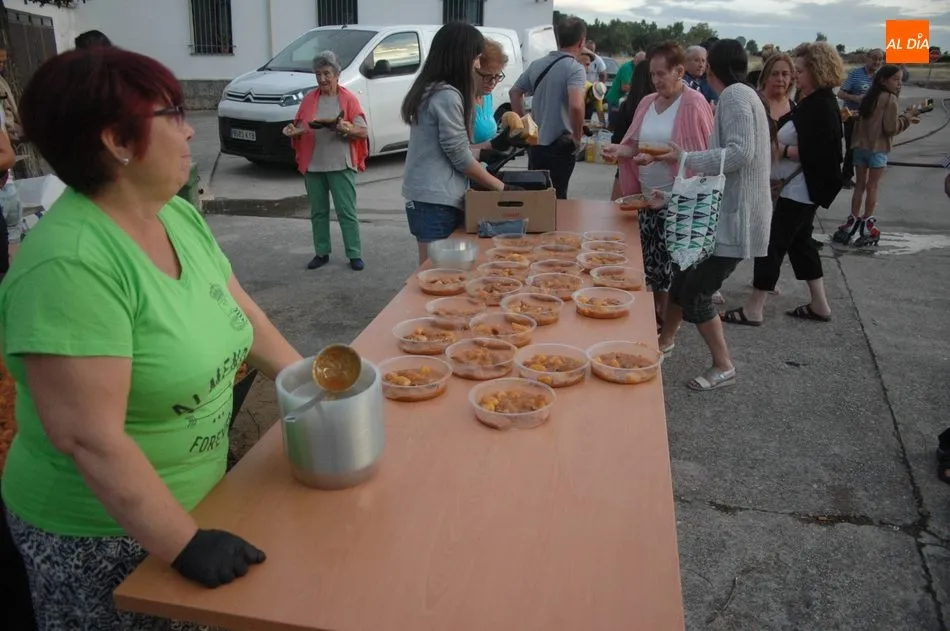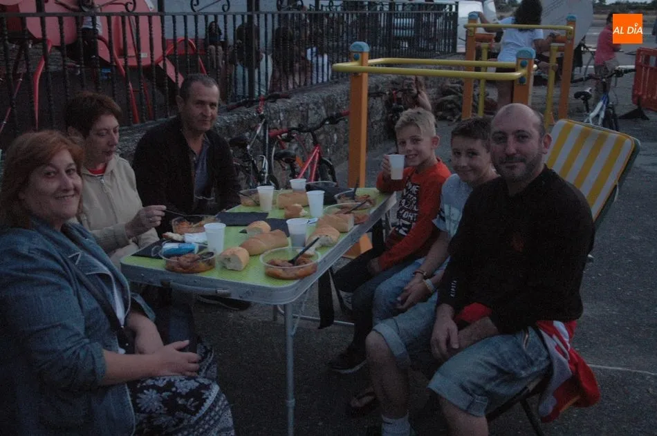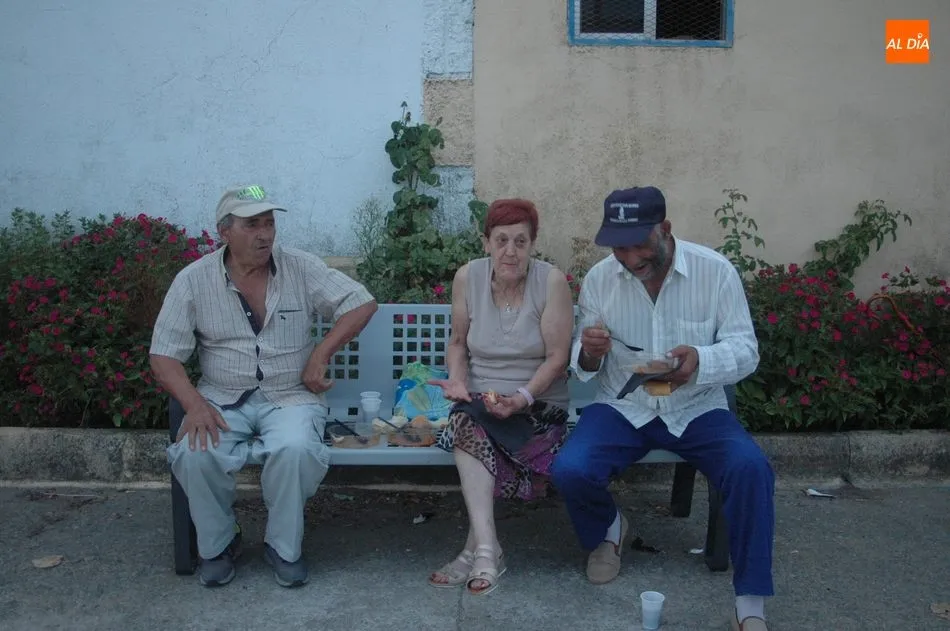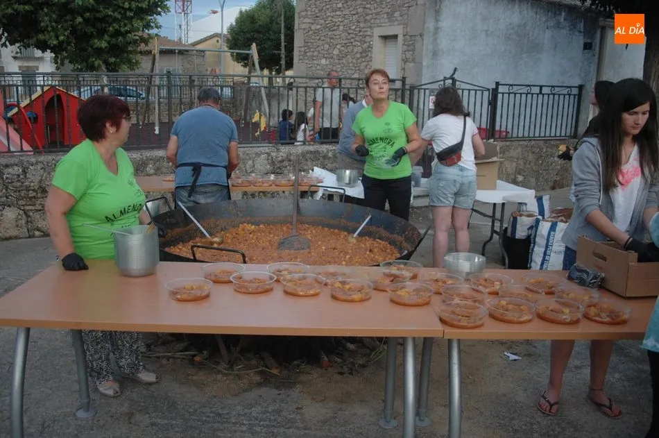 Después de una larga noche con una verbena amenizada por la orquesta Kronos, los vecinos de Almendra reponían fuerzas este sábado con una merienda popular para enfilar con garantías lo que les resta de las fiestas de agosto. En esta ocasión el Ayuntamiento de Almendra no reparó en gastos, pues se repartieron hasta 500 raciones de carrilleras ibéricas estofadas con patatas, un potenete plato para no temer una larga noche.
