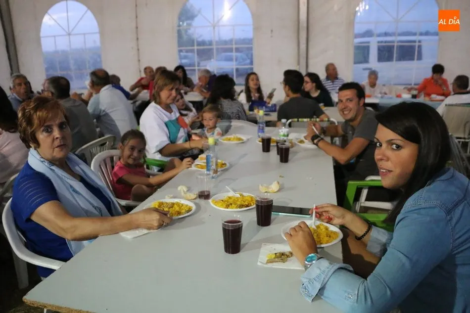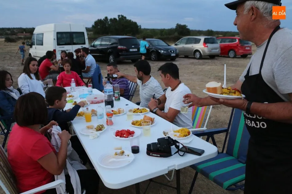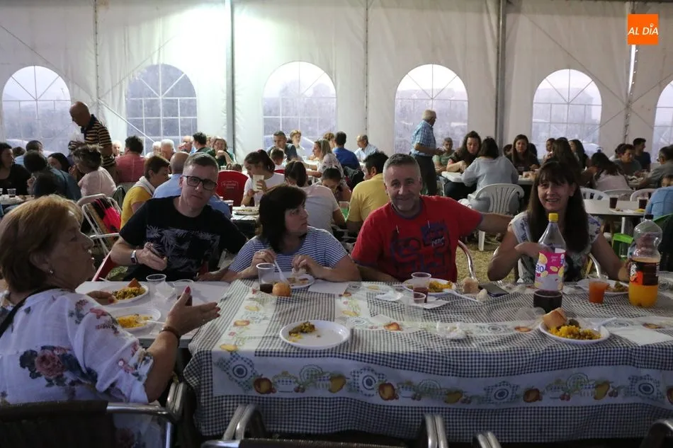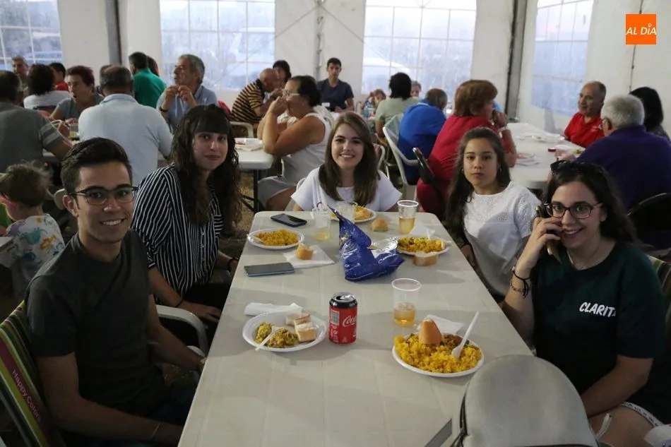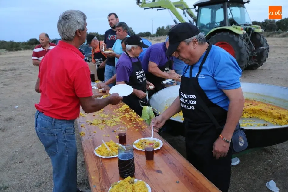 Los vecinos de Peralejos de Abajo daban cuenta en la noche de este sábado de una suculenta paella para enfilar con el estómago lleno el final de las fiestas de verano. Hasta 500 raciones de arroz se repartieron en la carpa por cortesía del Ayuntamiento, un encuentro para jóvenes, pequeños y mayores, que no quisieron perderse el plato de arroz para despedir las celebraciones de agosto.