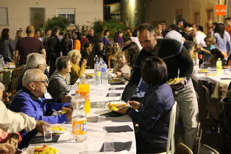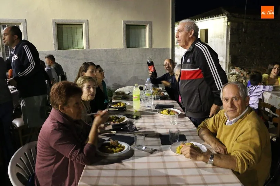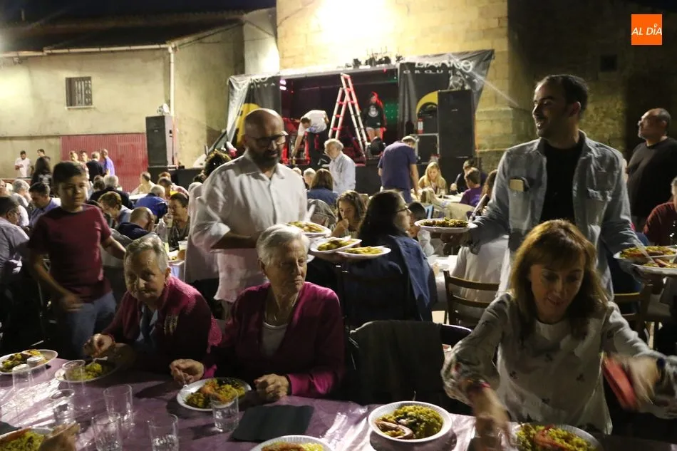 Los vecinos de Fuentes de Masueco daban cuenta en la noche de esta sábado de una suculenta paella para afrontar con garantías la larga velada que les espera, en esta ocasión amenizada por la orquesta Lízaro. Hasta 225 raciones de arroz con gambón y mejillón particular, un lujo de Santi.