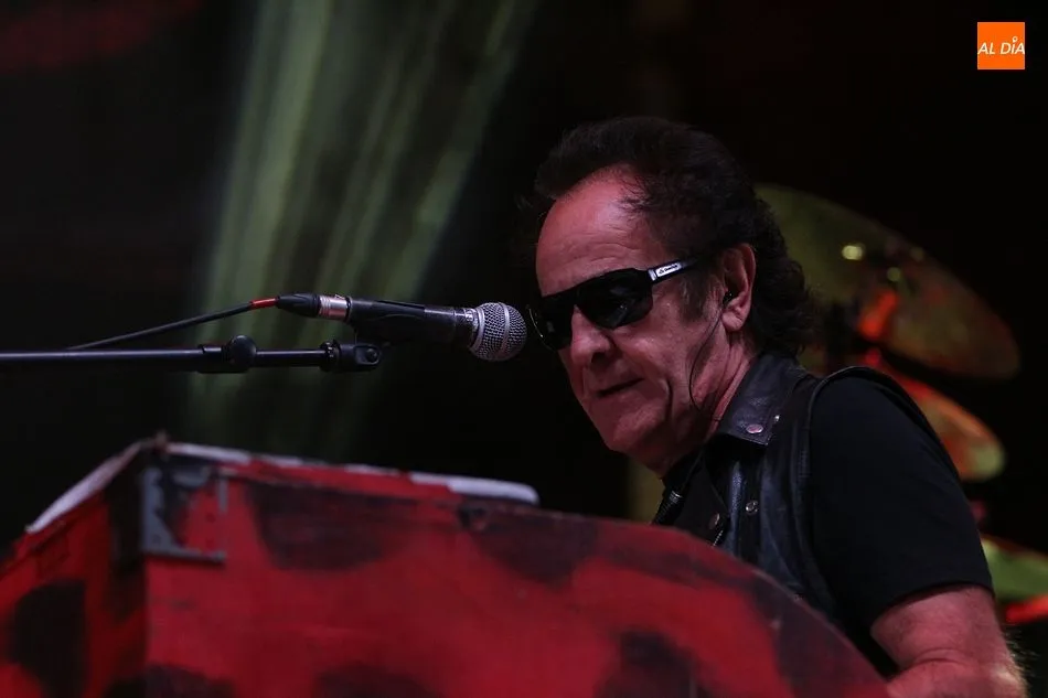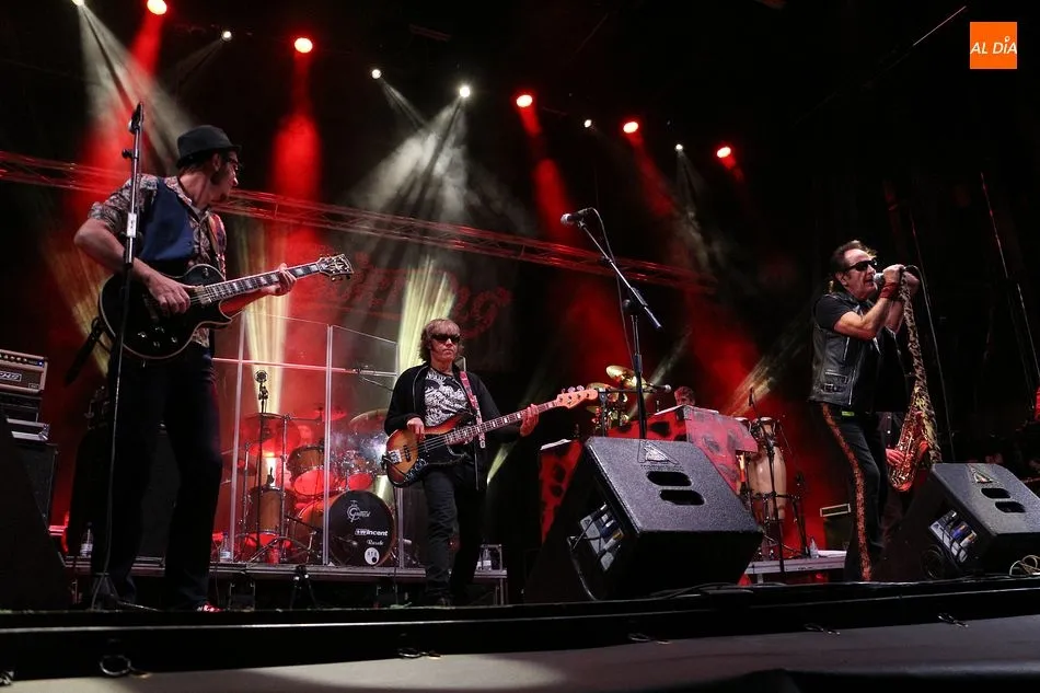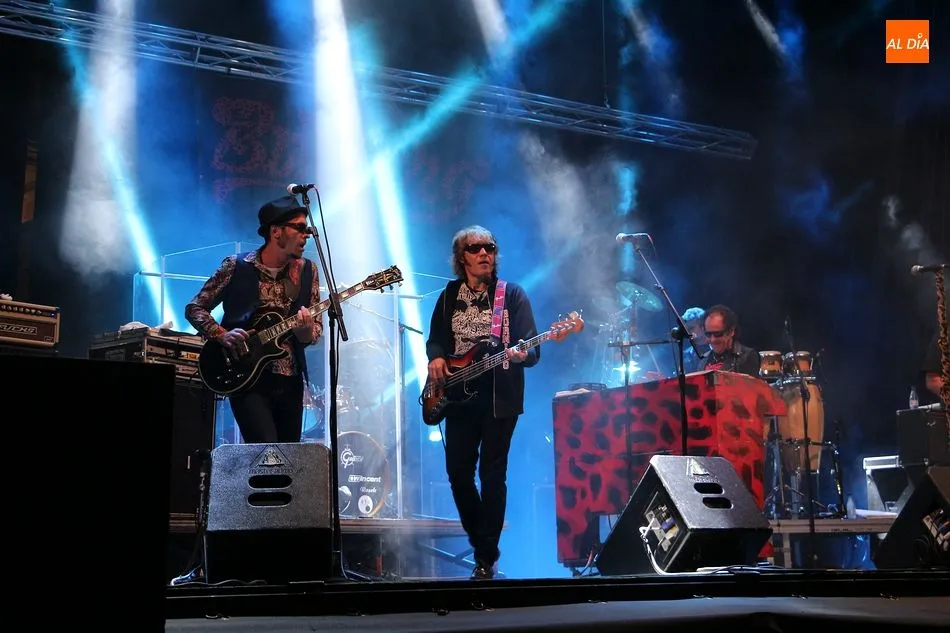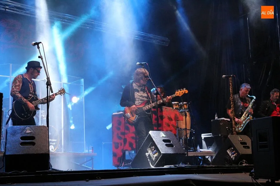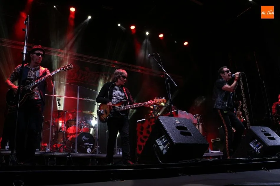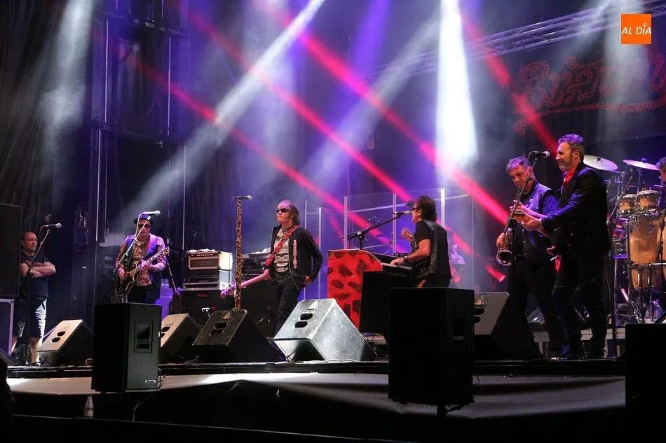 La Plaza Mayor de Guijuelo ha vivido esta noche el segundo concierto de los festejos de la villa con la actuación del mítico grupo Burning. La formación liderada por Johnny Cifuentes ha desplegado todo su arsenal de éxitos tras 40 años en activo, deleitando a numeroso público que no quiso perderse uno de los grupos imprescindibles del rock español.