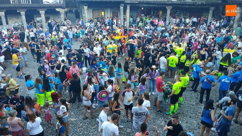 Las peñas de la localidad y numeroso público han abarrotado la Plaza Mayor para el pistoletazo de salida de las fiestas