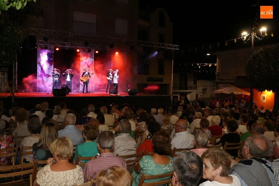 Guijuelo cierra el día grande de los festejos patronales con música. Además de la verbena con la orquesta Cinema, la plaza de Julián Coca ha vivido la primera cita de la programación cultural de los festejos. El cantante Ángel García, acompañado de sus mariachis, ha ofrecido el espectáculo ?Cambio de Tercio?, con la plaza prácticamente llena de público.