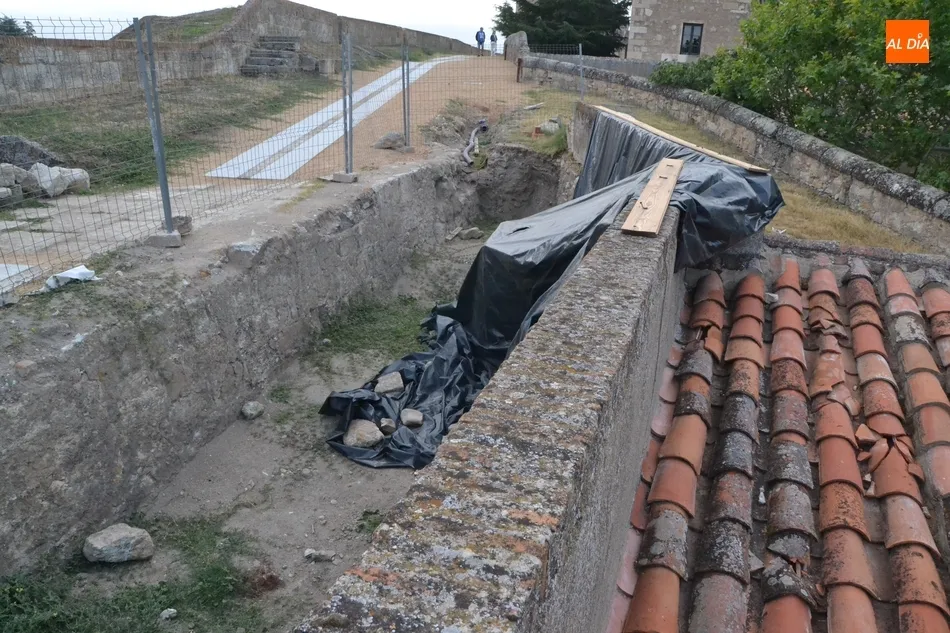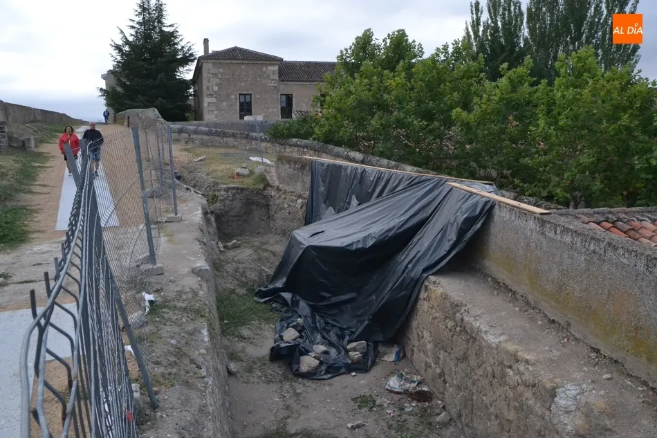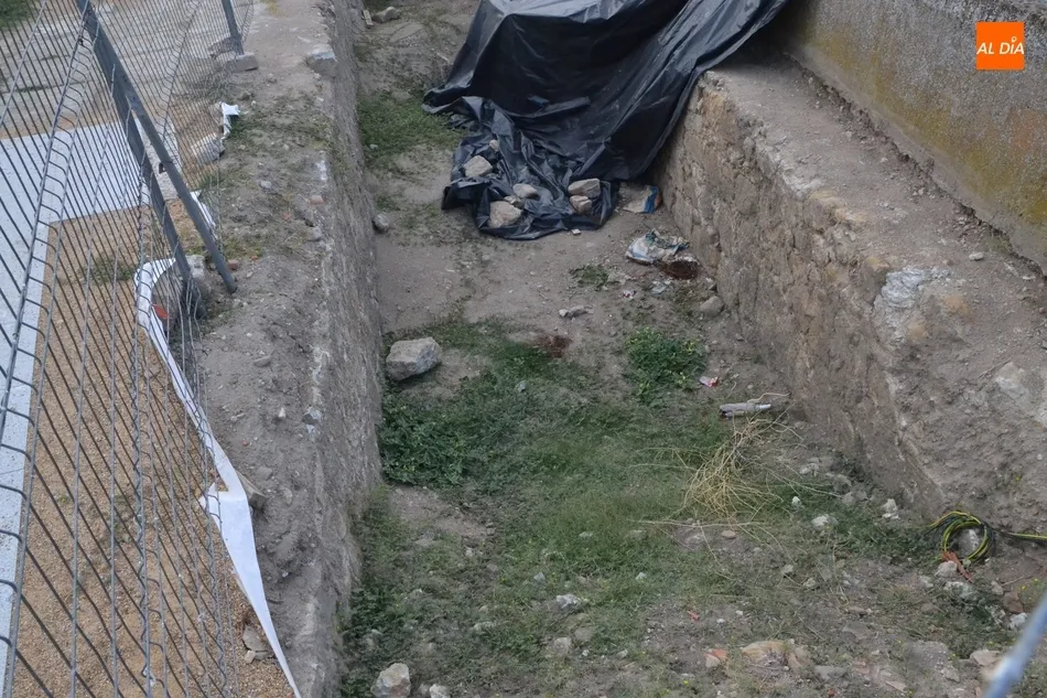 Como se puede ver también en la galería, lo que sí permanece completamente vallado es el punto donde aparecieron una serie de restos históricos enterrados bajo tierra (concretamente restos del antiguo Palacio de Amayuelas, entre ellos parte de una escalera helicoidal/de caracol).