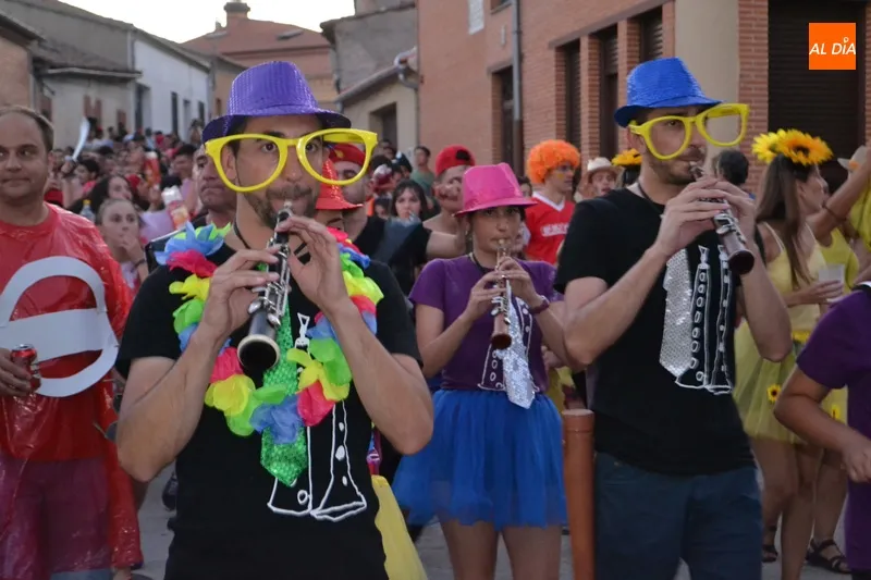 Un programa oficial, diseñado por el Ayuntamiento de la Villa, que arrancaba pasadas las ocho y media de la tarde desde la Peña Elfos, punto de partida del colorido desfile de peñas, en el que participaban varios cientos de personas, quienes no pararon de bailar, lanzar vítores al Santo y ofrecer su cara más divertida, que estuvo acompañada por numerosos vecinos durante todo el recorrido, además de contar con los sones del Grupo Dulzainero Adobe.