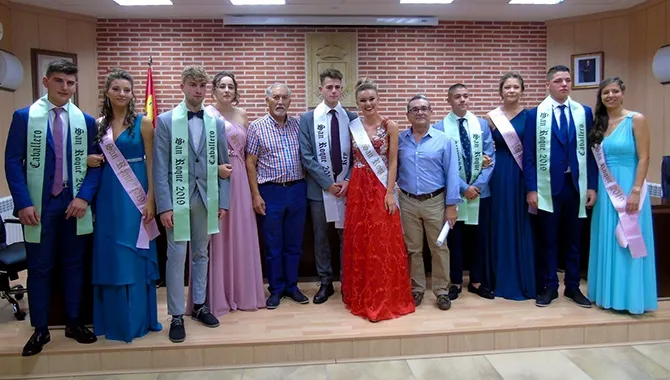 María Hernández González, Raquel Cabrer o Ledesma, Raquel López Bueno y Marta Pastor Cuesta, arropaban como Damas a Mónica Nieto Hernández, elegida Reina de las fiestas 2019