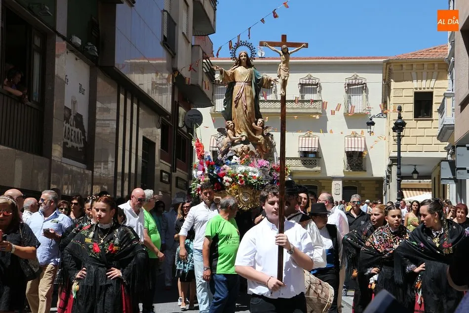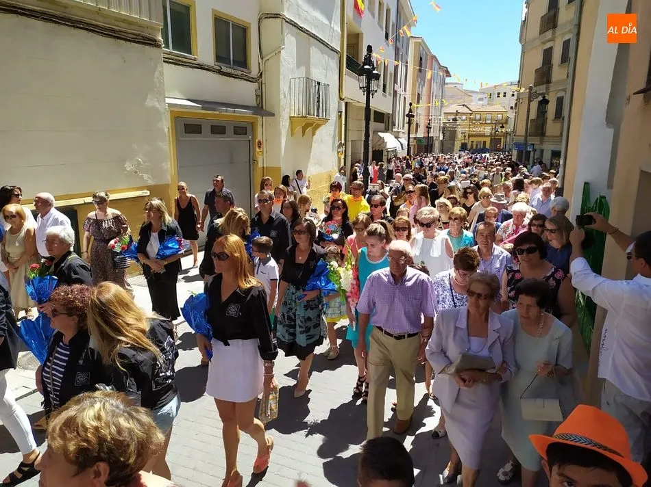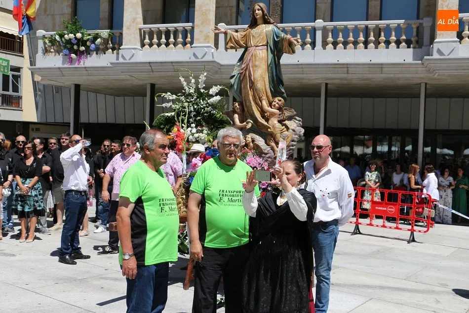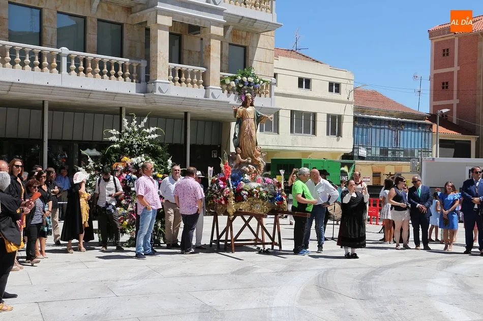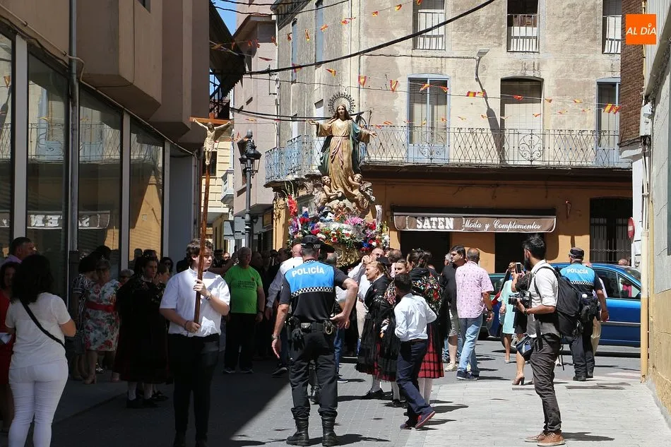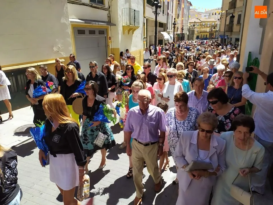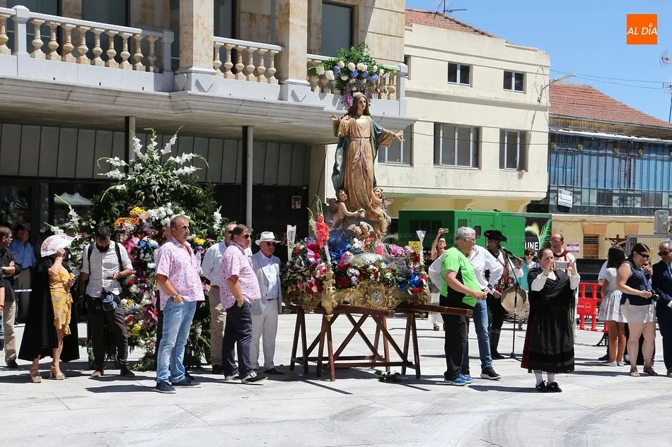 PROCESIÓN Y OFRENDA FLORAL en honor a Nuestra Señora de la Asunción, acompañada por la Banda Municipal de Música de Alba de Tormes. En la plaza Mayor.