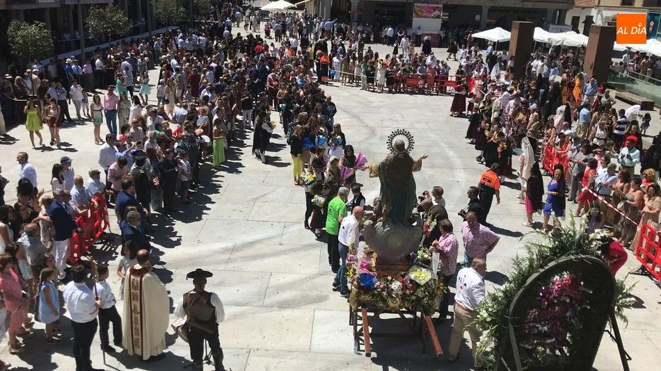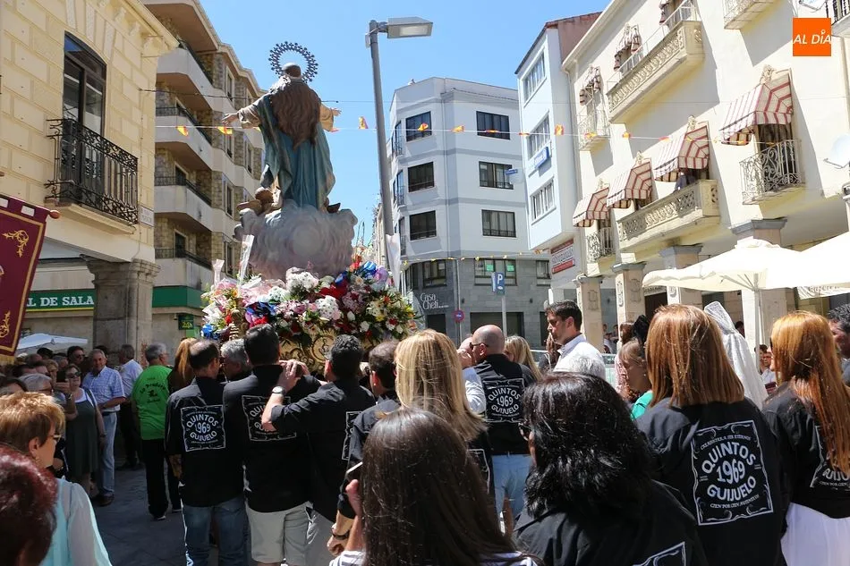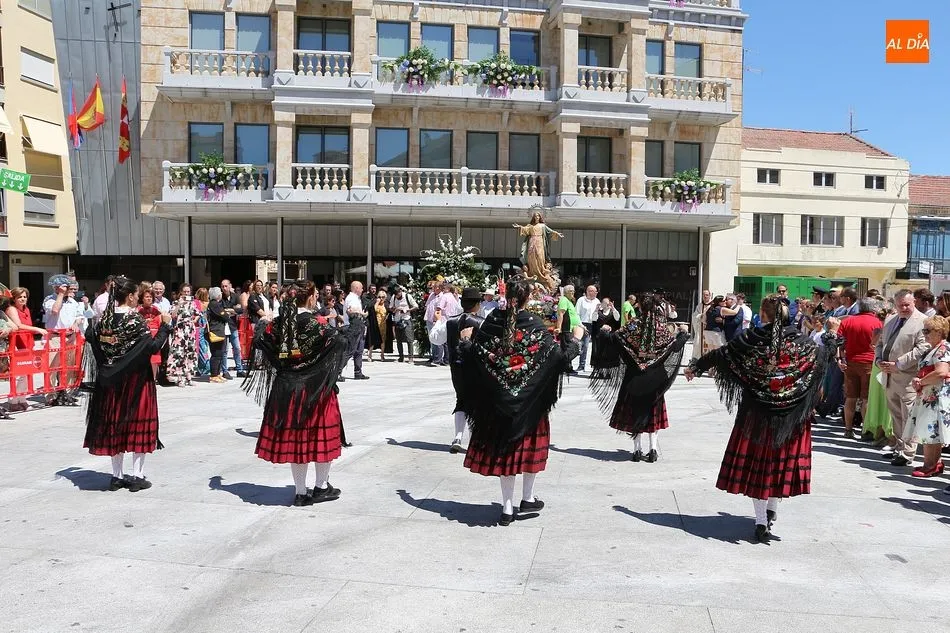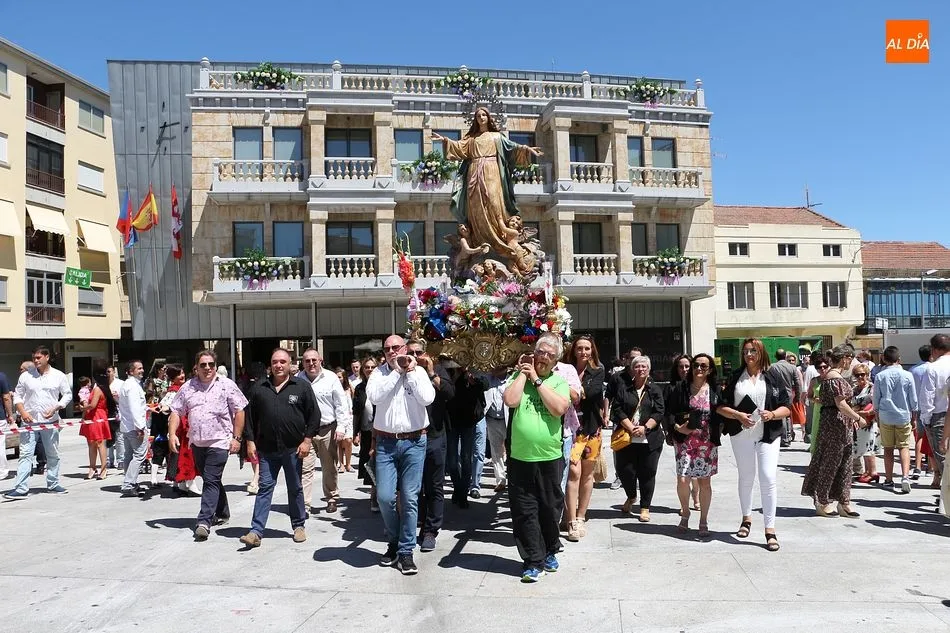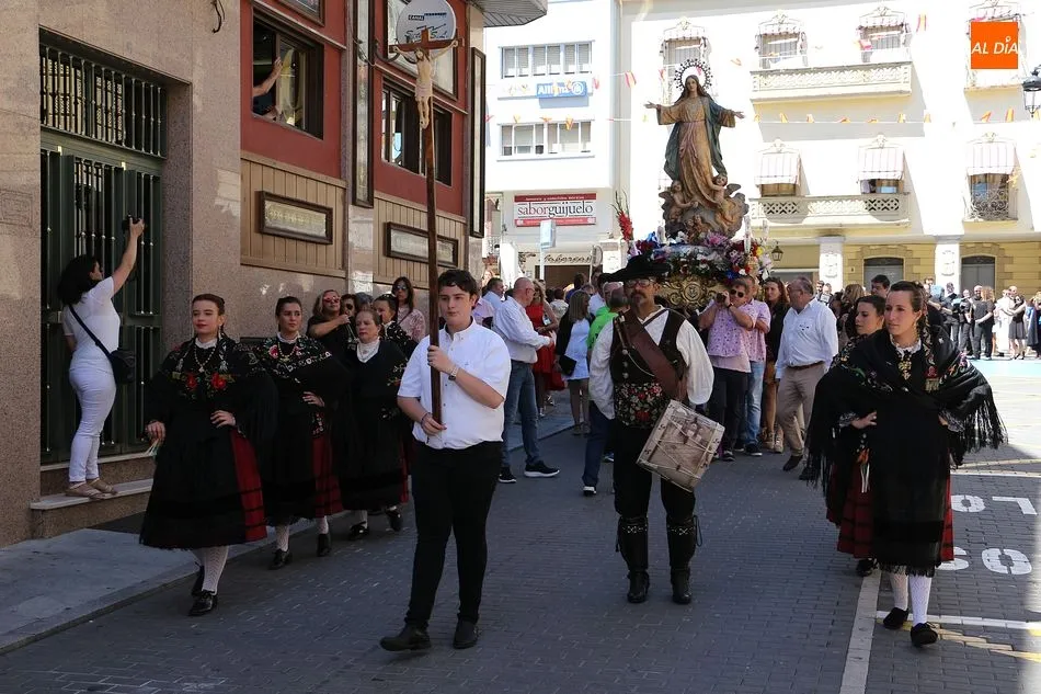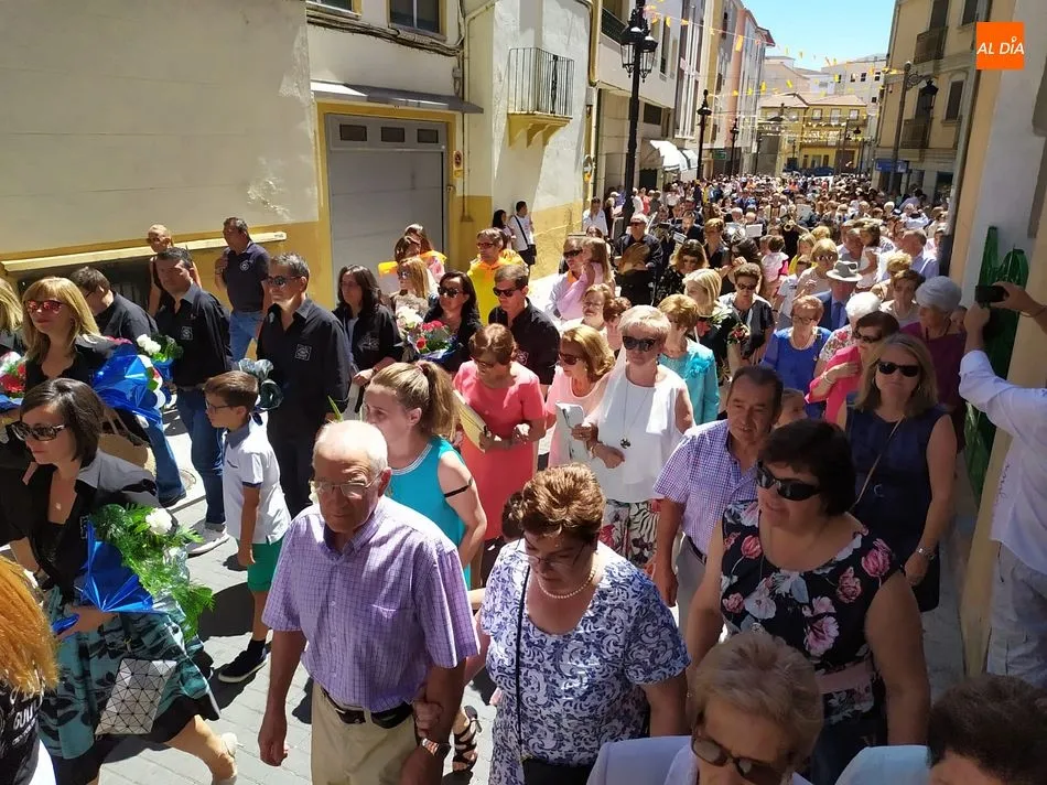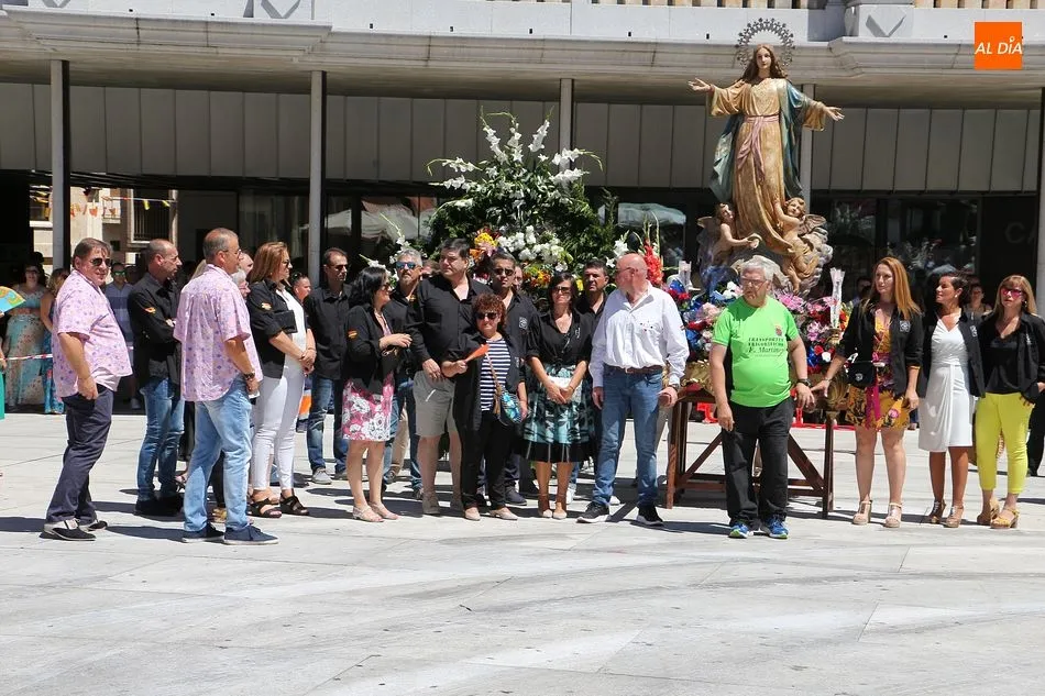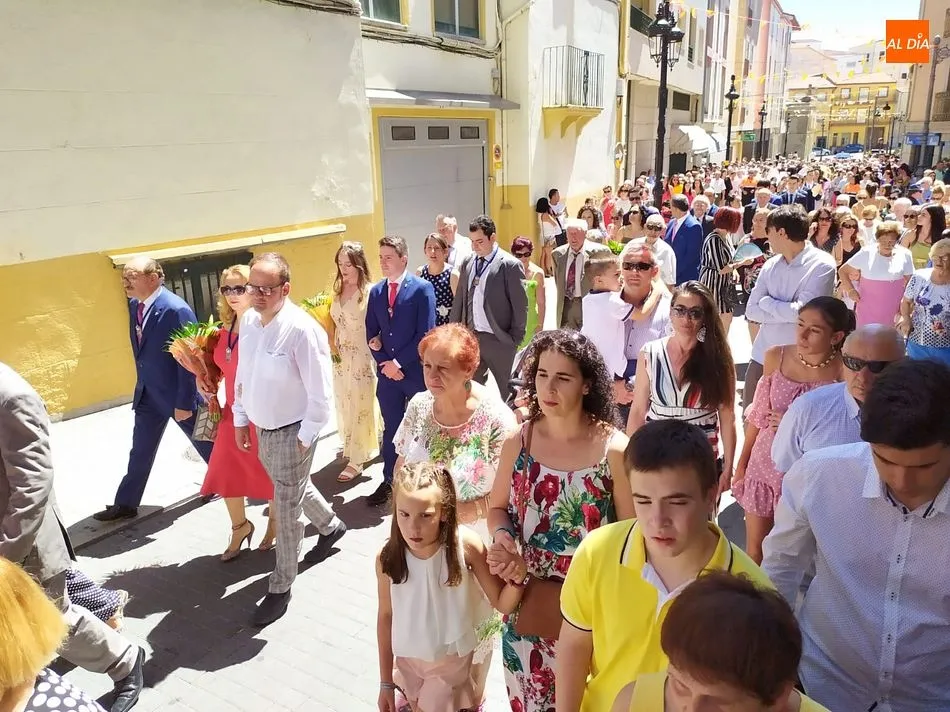 PROCESIÓN Y OFRENDA FLORAL en honor a Nuestra Señora de la Asunción, acompañada por la Banda Municipal de Música de Alba de Tormes. En la plaza Mayor.