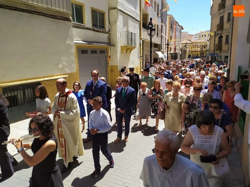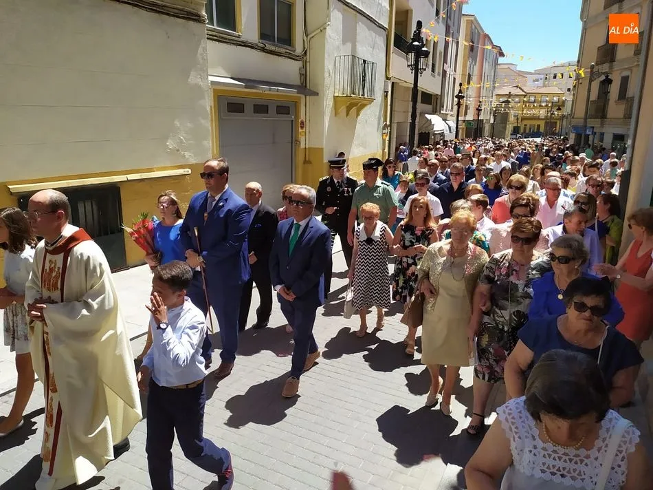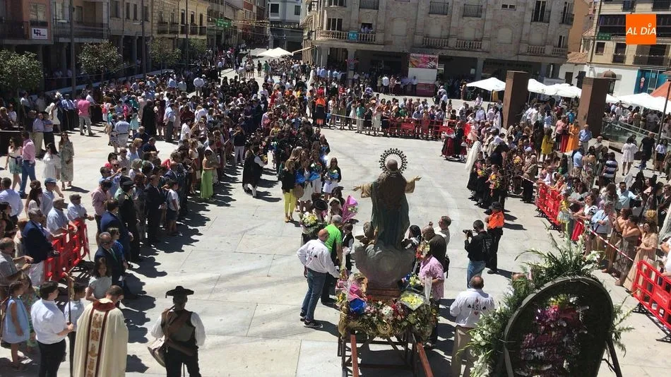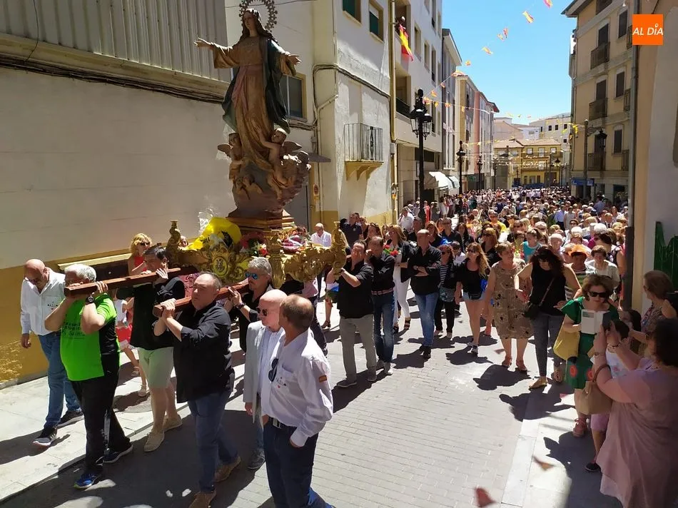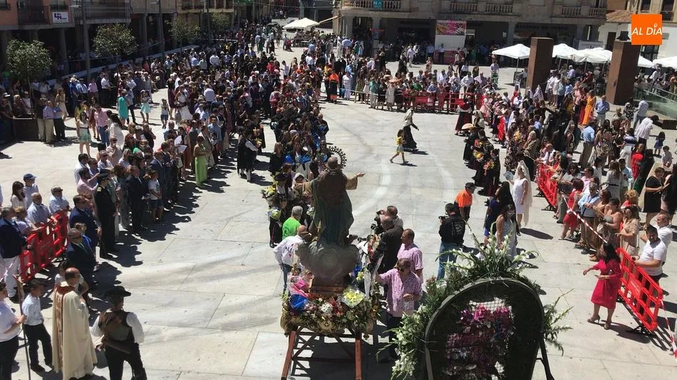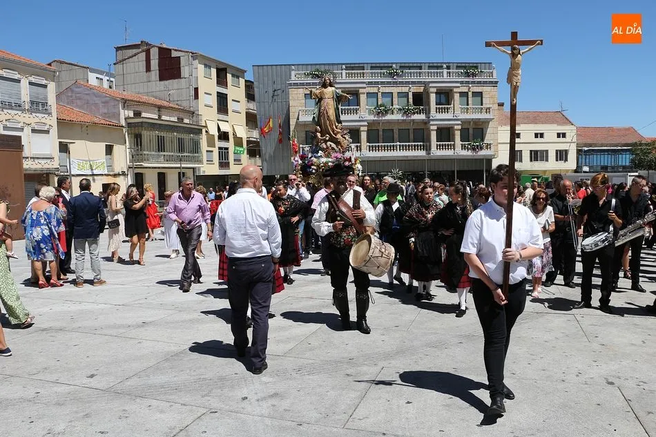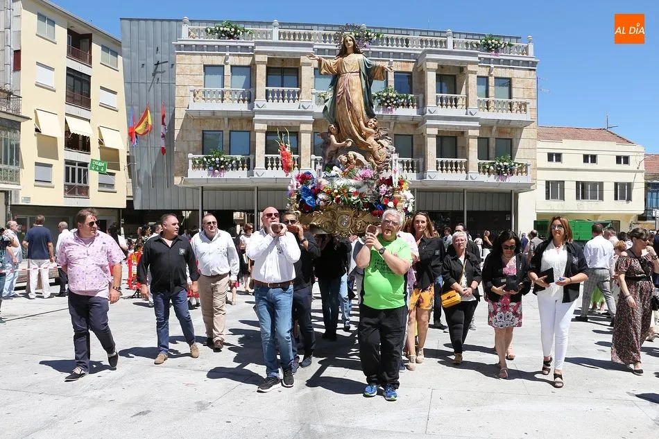 PROCESIÓN Y OFRENDA FLORAL en honor a Nuestra Señora de la Asunción, acompañada por la Banda Municipal de Música de Alba de Tormes. En la plaza Mayor.
