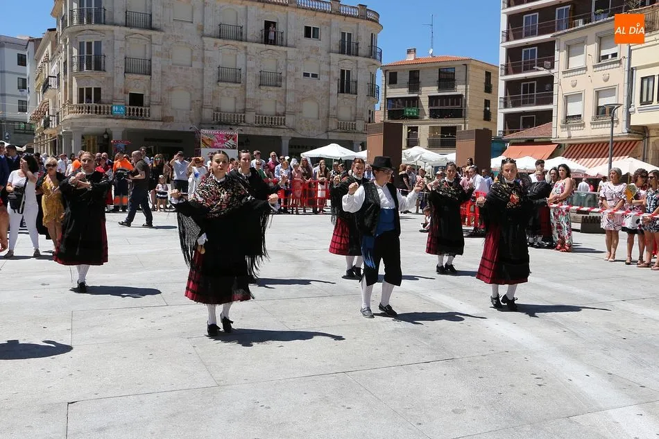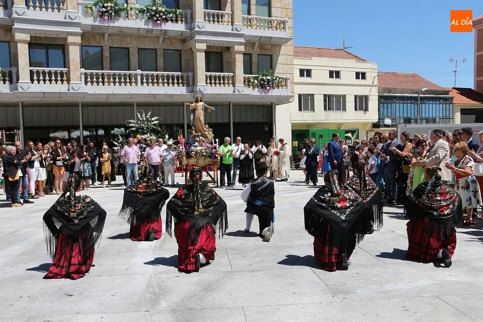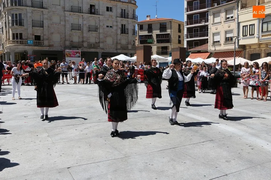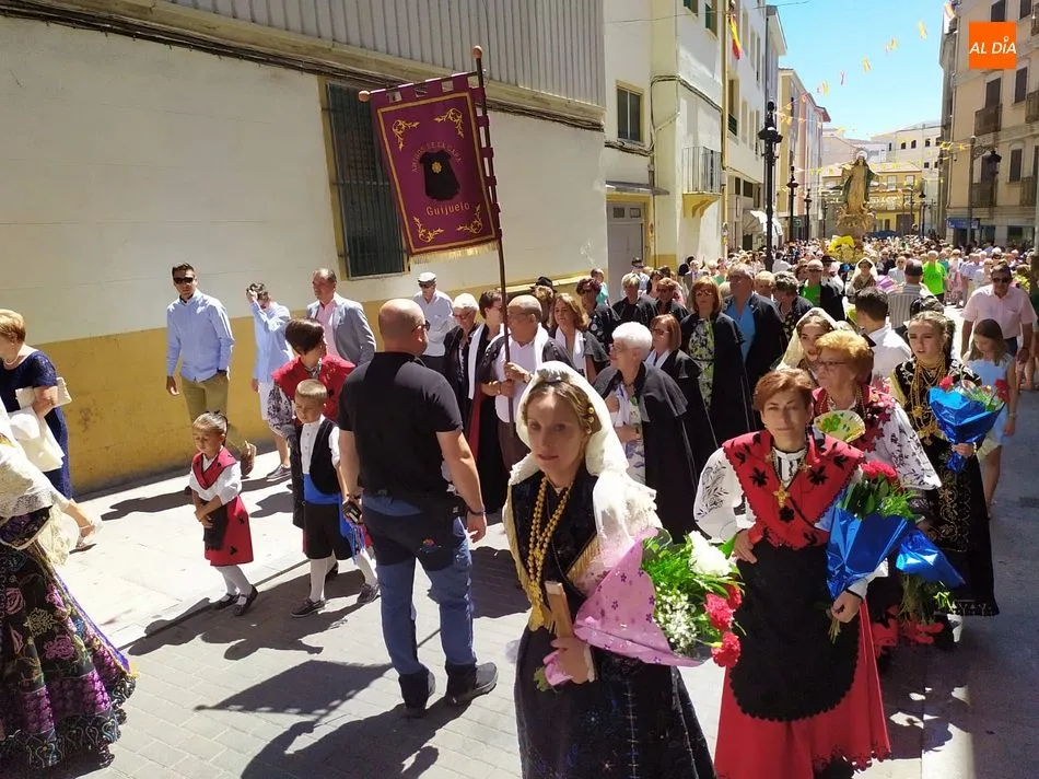 El tradicional ofertorio llenó la Plaza Mayor de Guijuelo de color con la ofrenda floral y los bailes del Grupo Folclórico El Torreón