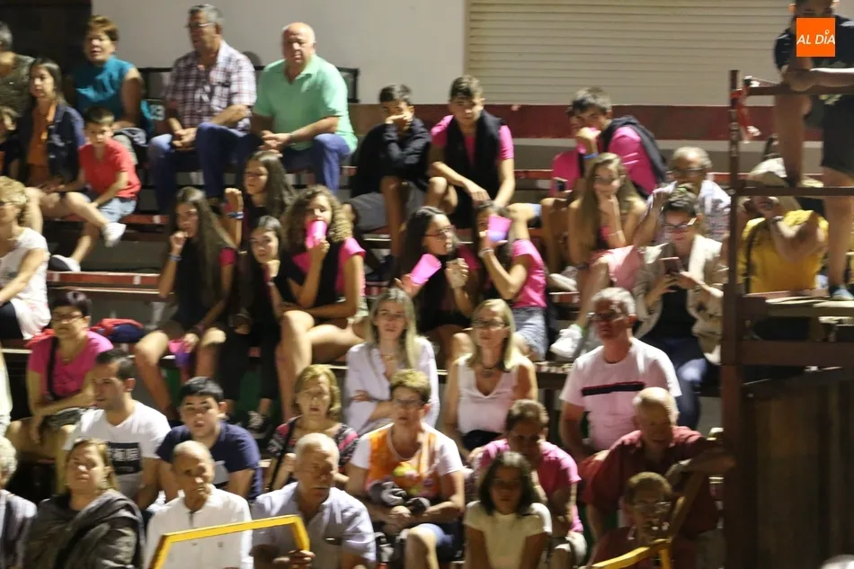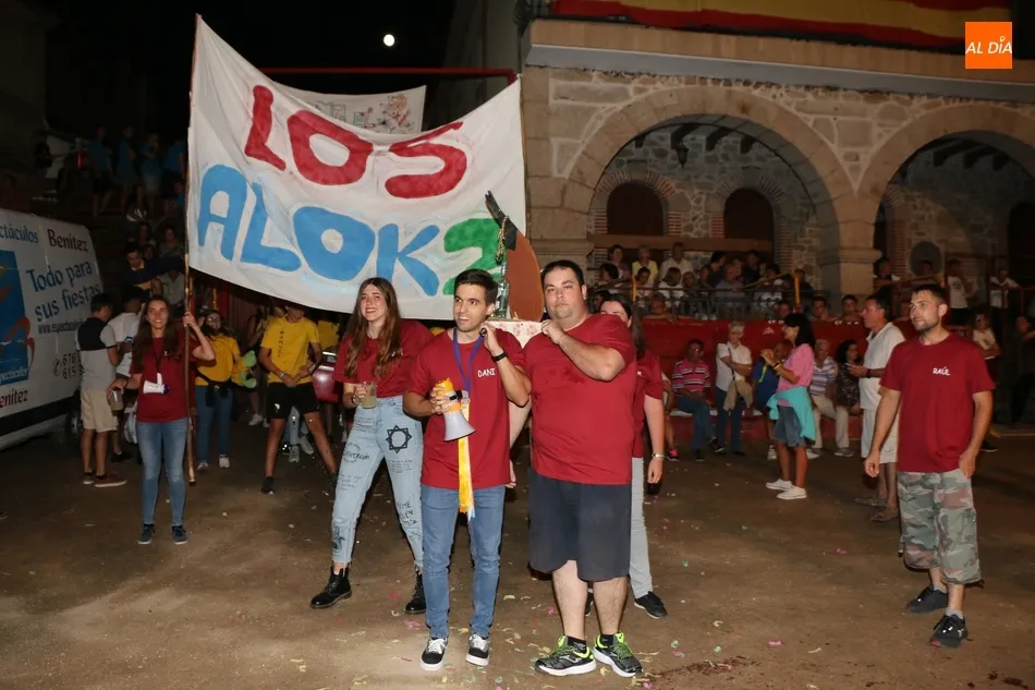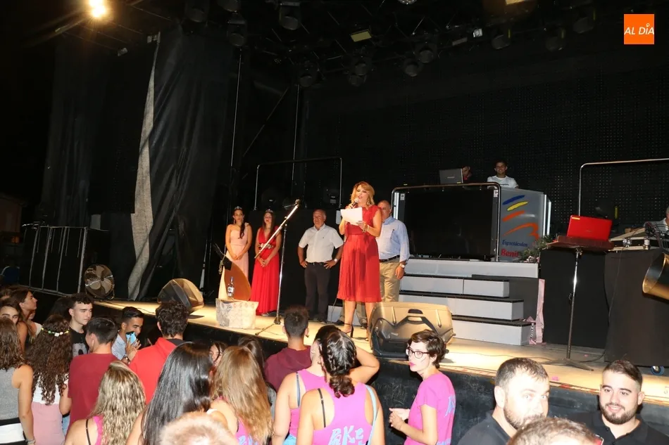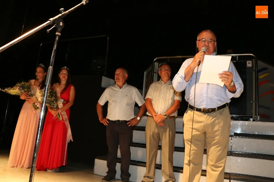 Sobre el escenario, los conductores de la presentación, la Corte de Honor con Lucía Fernández Grande y Ana Ullán Egido; el alcalde, Julián Martín, y los concejales Ismael Silva y Antonio Ullán. Tras la presentación de todas las peñas, Ismael Martín colocaba la banda de dama de honor a Ana Ullán, además de entregarle un ramo de flores. El alcalde hacía o propio con Lucía Fernández, para pasar a continuación a dirigirse a los asistentes y desearles a todos unas felices fiestas.