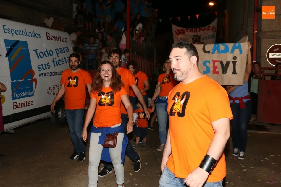 Conducido por Lidia Grande y Armando, la presentación de las peñas tras su desfile desde San Amaro fue, sin duda, uno de los eventos destacados de las fiestas de San Roque en Villarino. Históricas como Los Colocaos, Alkalá-Meko, Los Chapuzas, El Cencerro o El Rayo, y otras más recientes como Estás de Toma Pan y Moja, El Callejón o Pake+ dieron la talla en este evento, acto que marca el inicio oficial de las fiestas de San Roque 2019.