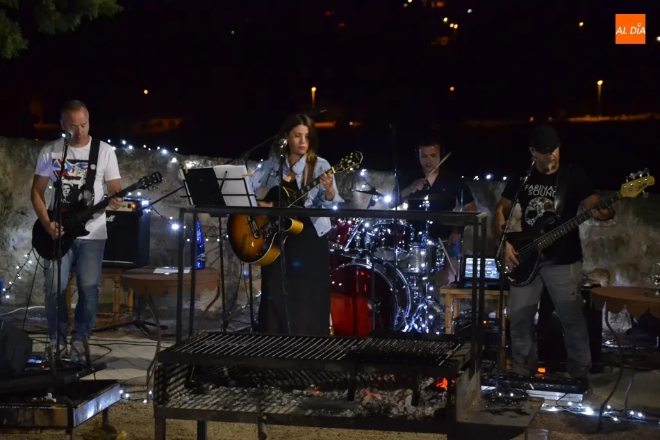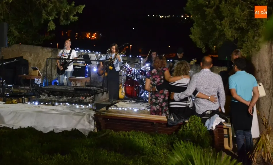 Con el estómago lleno, llegó el momento culminante de presenciar los fuegos artificiales desde una panorámica totalmente novedosa para unos cuantos de los asistentes (otros ya son veteranos en esta barbacoa). A diferencia del resto de personas que siguieron el lanzamiento, los que estaban en el Parador tuvieron un regalo complementario: tras los fuegos, comenzó a actuar en los jardines la formación mirobrigense Hondas Bridge Band, que ofreció un repertorio de canciones muy conocidas, como por ejemplo el emblemático Sultans of Swing de Dire Straits.