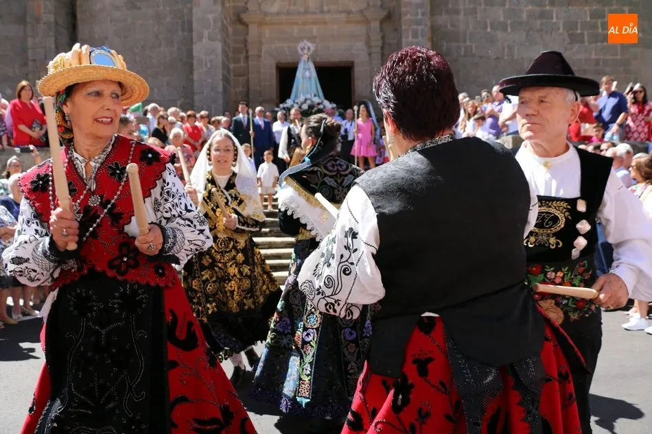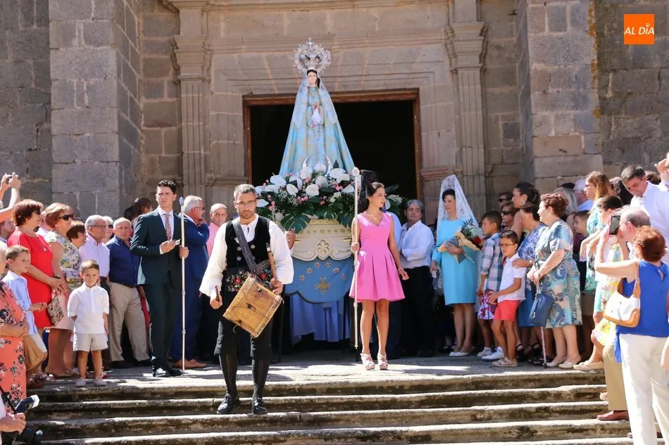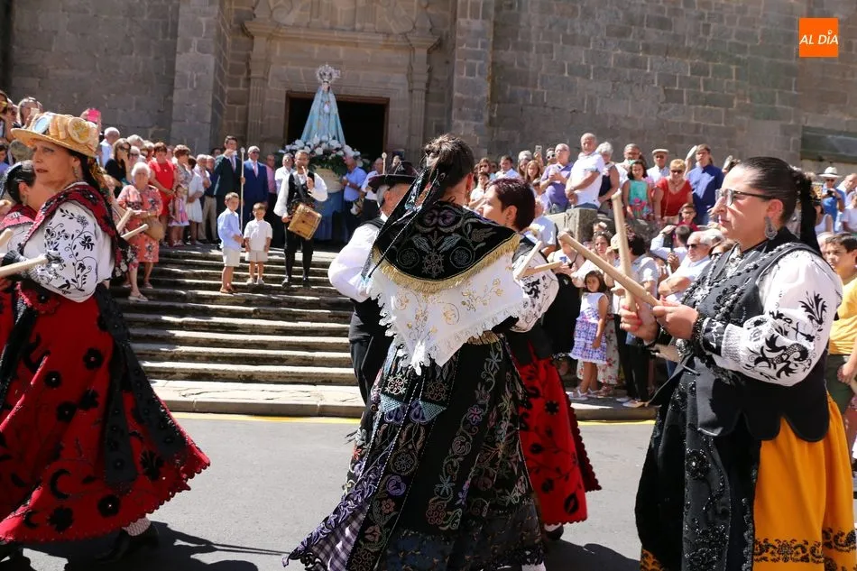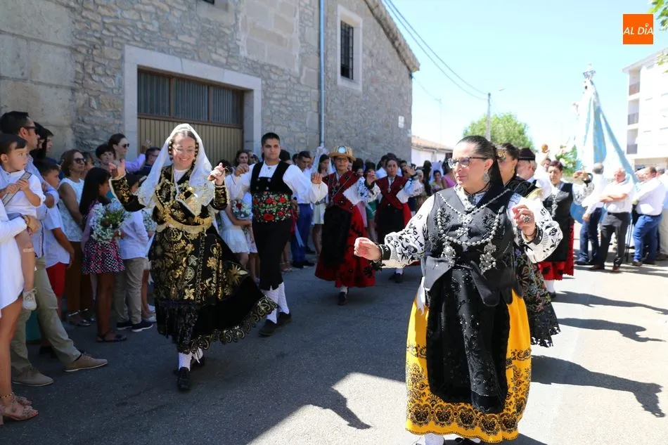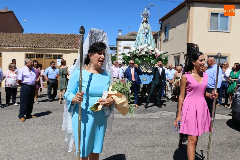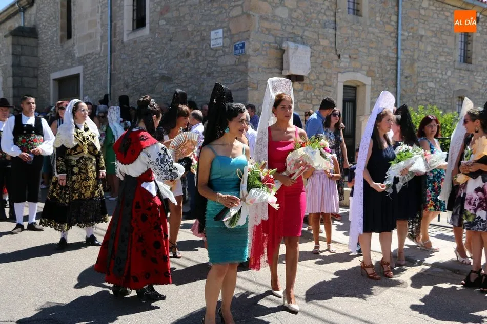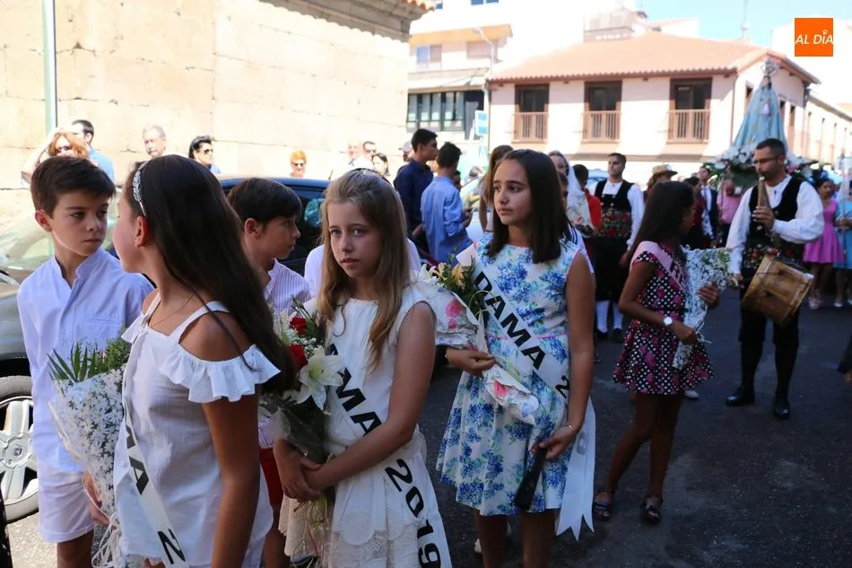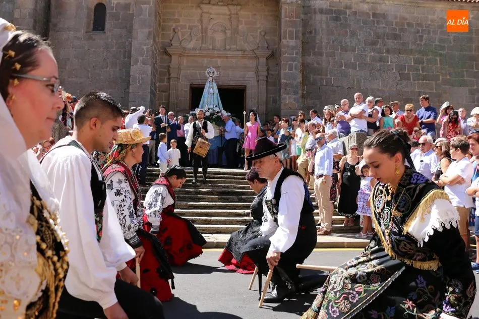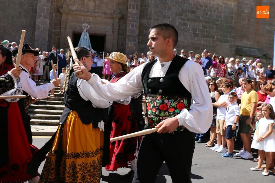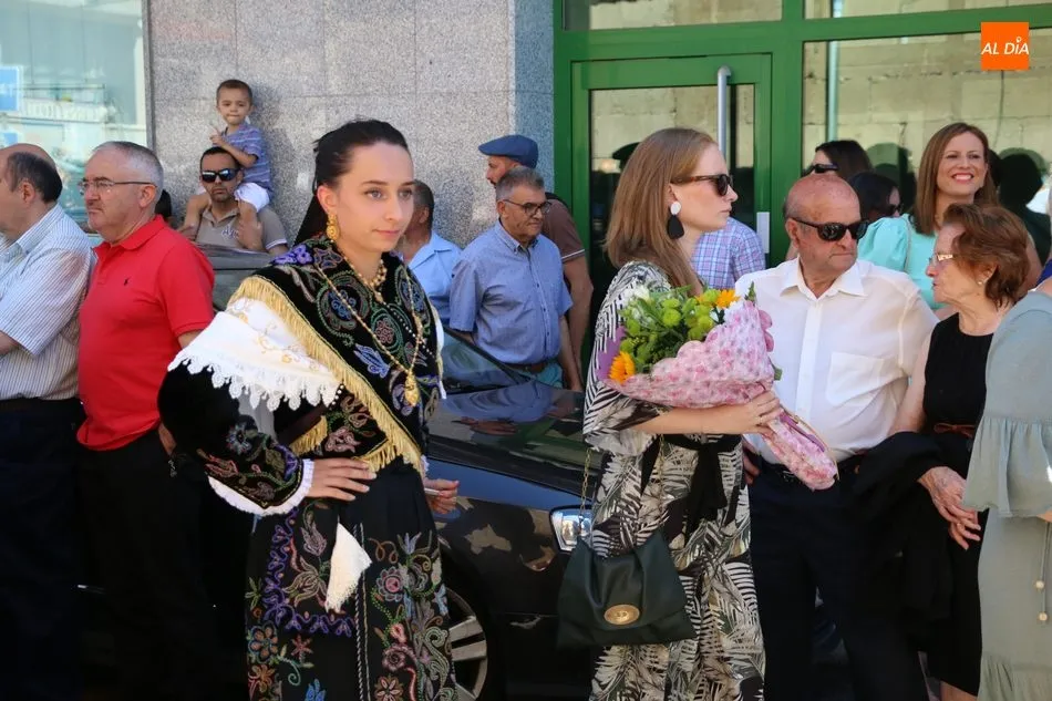 Tras la misa oficiada por los párrocos y sacerdotes de la localidad, con presencia de autoridades locales con la alcaldesa Luisa de Paz al frente, a la que acompañaba el teniente de alcalde Óscar Martín y el capitán de la Guardia Civil, Jesús Ríos, las campanas de la iglesia anunciaban la salida de la Virgen del Socorro a hombros de sus fieles y escoltada por sus mayordomas. Entre tanto, los sones de la gaita y el tamboril de David Vicente comenzaban a escucharse para recibir en la calle a Nuestra Señora, donde la aguardaban los integrantes del grupo de folclore Organza para ofrecerle sus danzas de paleos.