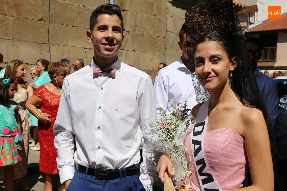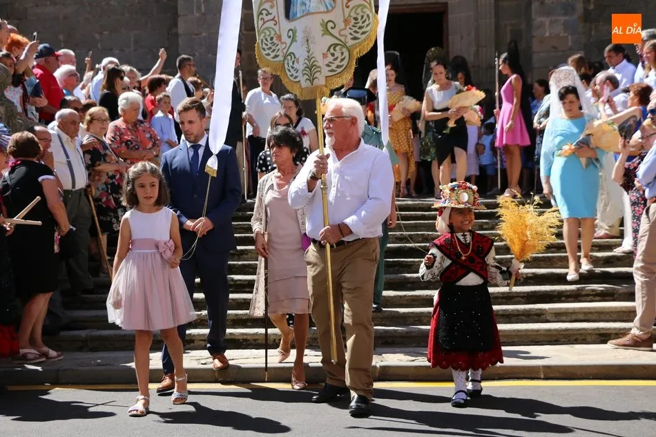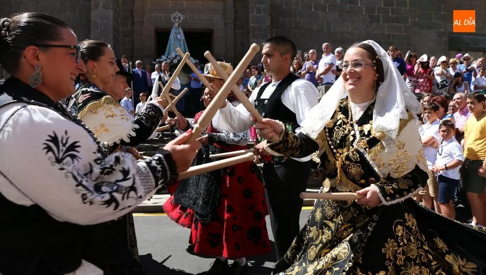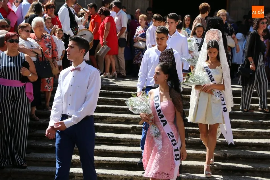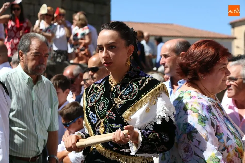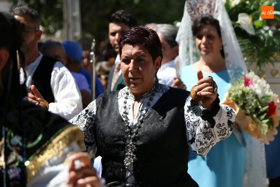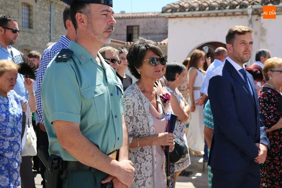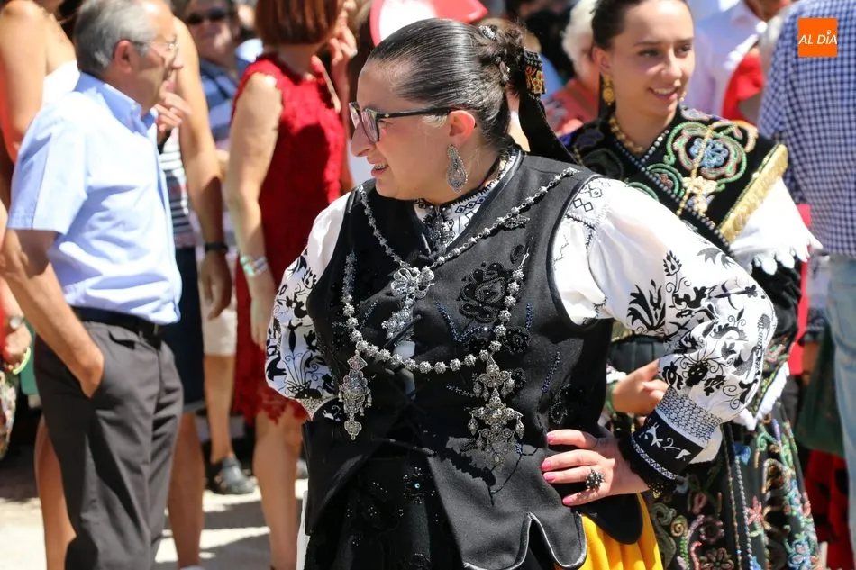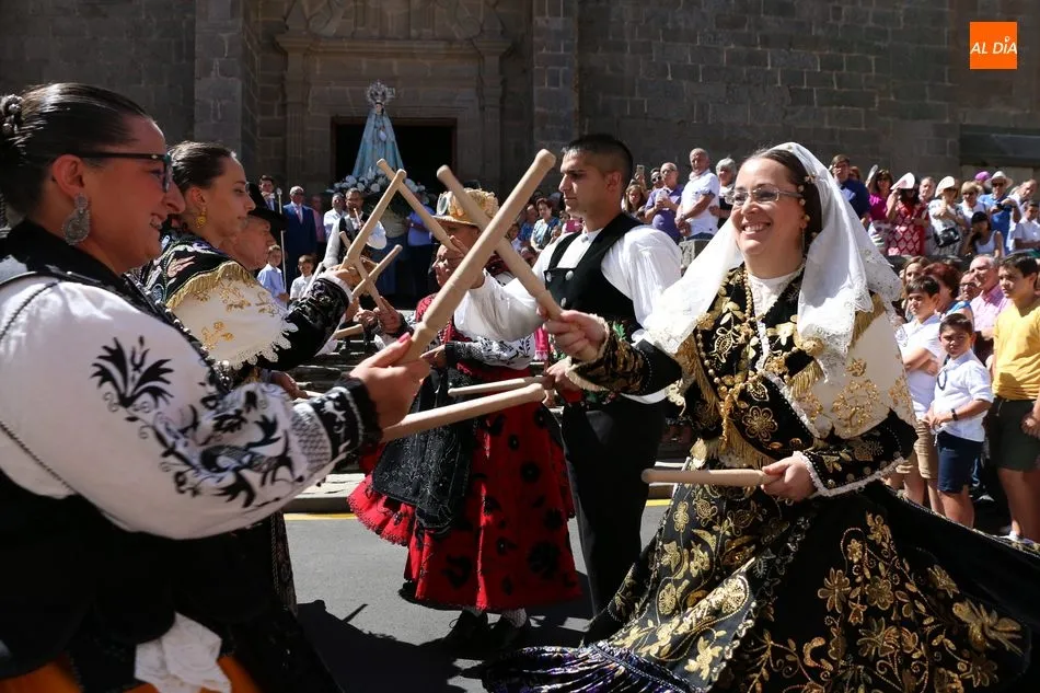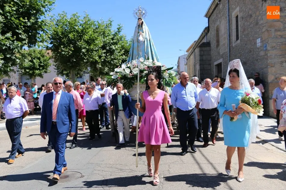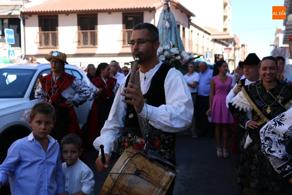 Tras la misa oficiada por los párrocos y sacerdotes de la localidad, con presencia de autoridades locales con la alcaldesa Luisa de Paz al frente, a la que acompañaba el teniente de alcalde Óscar Martín y el capitán de la Guardia Civil, Jesús Ríos, las campanas de la iglesia anunciaban la salida de la Virgen del Socorro a hombros de sus fieles y escoltada por sus mayordomas. Entre tanto, los sones de la gaita y el tamboril de David Vicente comenzaban a escucharse para recibir en la calle a Nuestra Señora, donde la aguardaban los integrantes del grupo de folclore Organza para ofrecerle sus danzas de paleos.