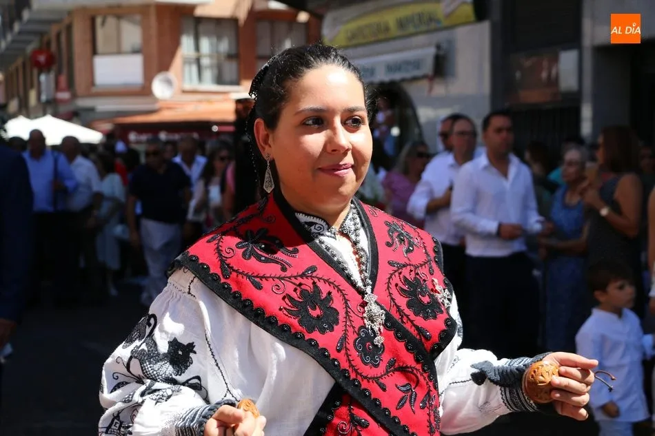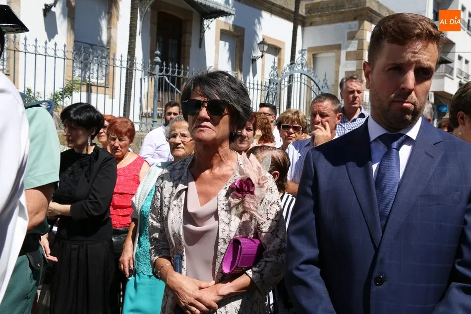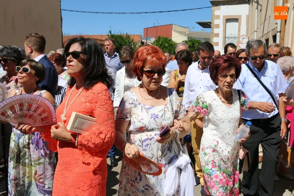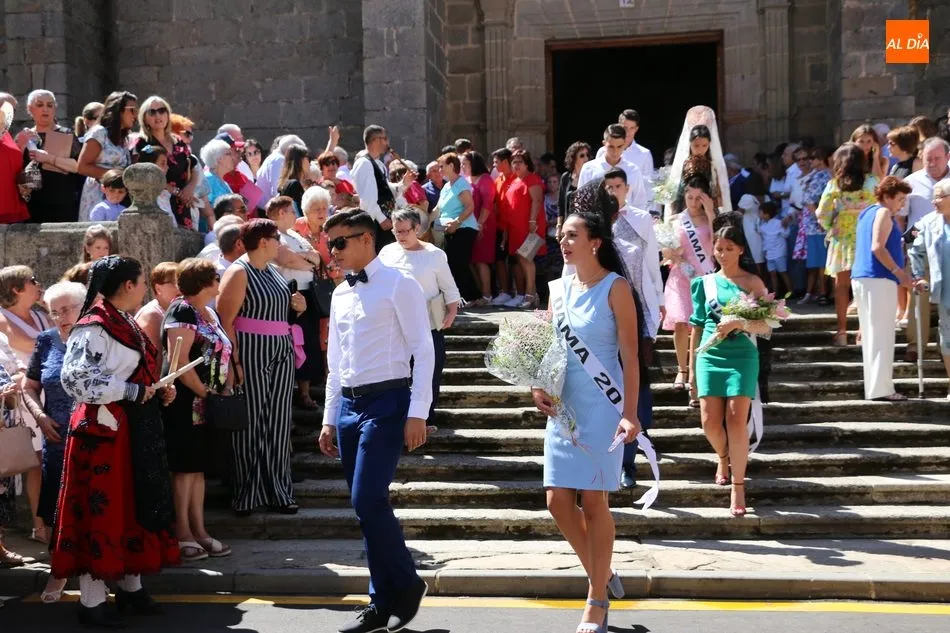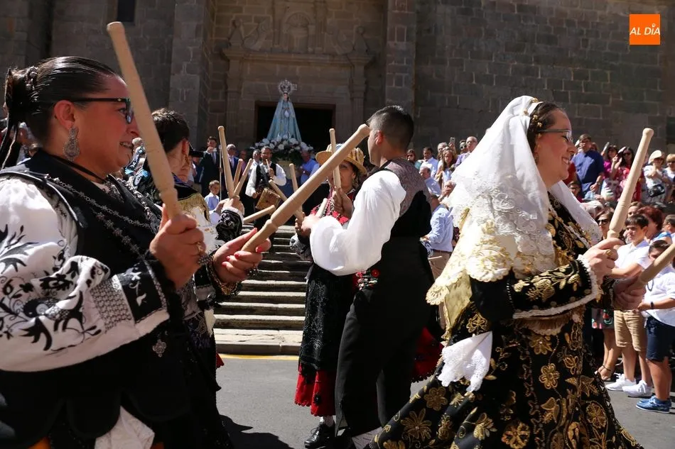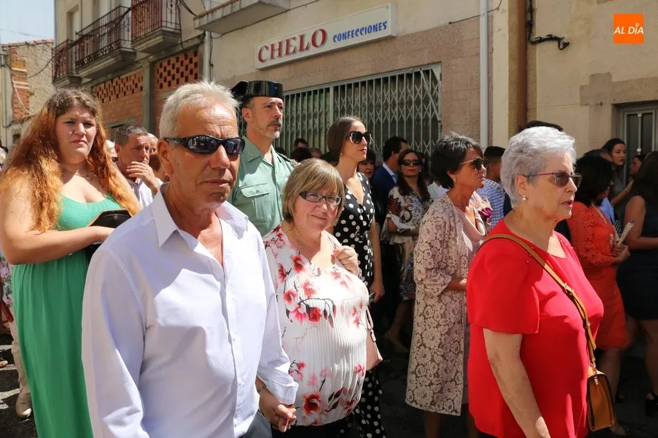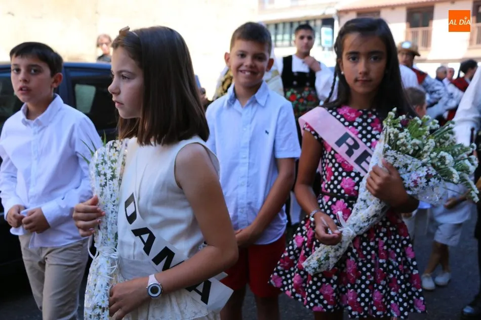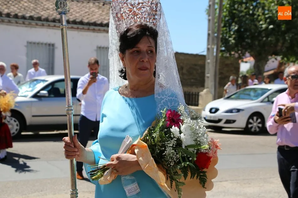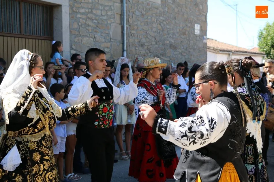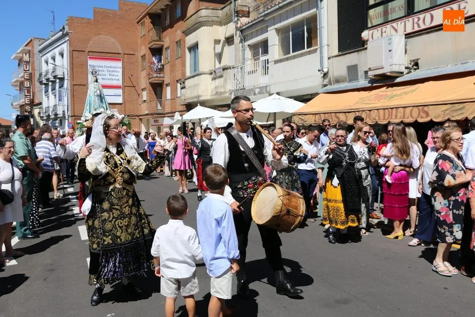 Tras la misa oficiada por los párrocos y sacerdotes de la localidad, con presencia de autoridades locales con la alcaldesa Luisa de Paz al frente, a la que acompañaba el teniente de alcalde Óscar Martín y el capitán de la Guardia Civil, Jesús Ríos, las campanas de la iglesia anunciaban la salida de la Virgen del Socorro a hombros de sus fieles y escoltada por sus mayordomas. Entre tanto, los sones de la gaita y el tamboril de David Vicente comenzaban a escucharse para recibir en la calle a Nuestra Señora, donde la aguardaban los integrantes del grupo de folclore Organza para ofrecerle sus danzas de paleos.