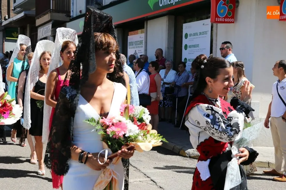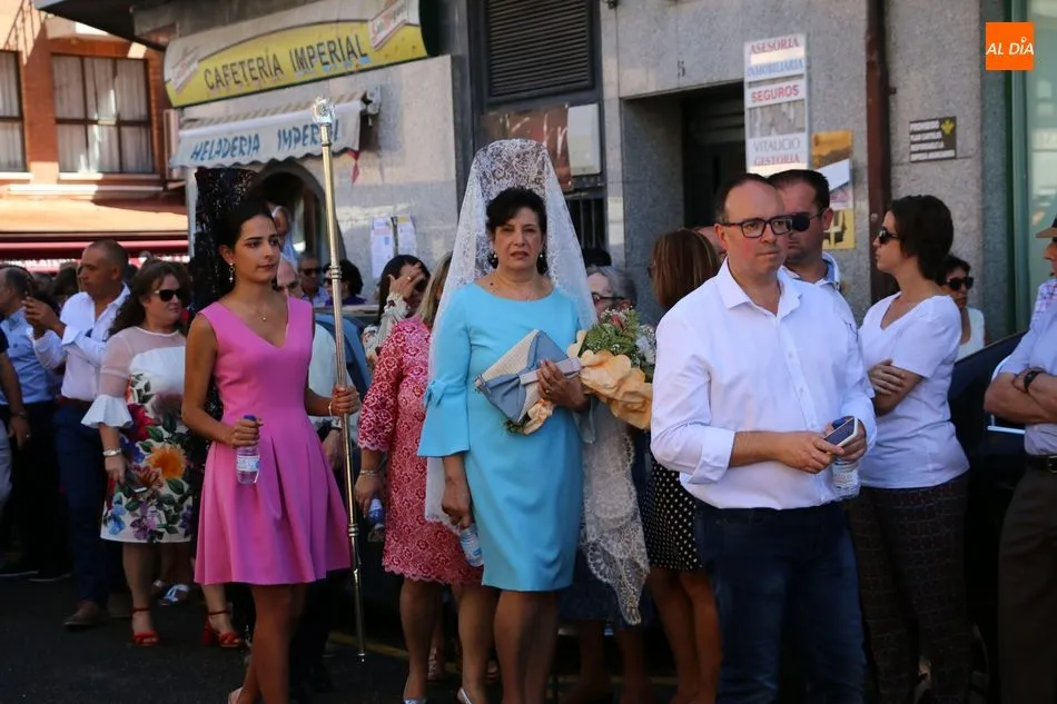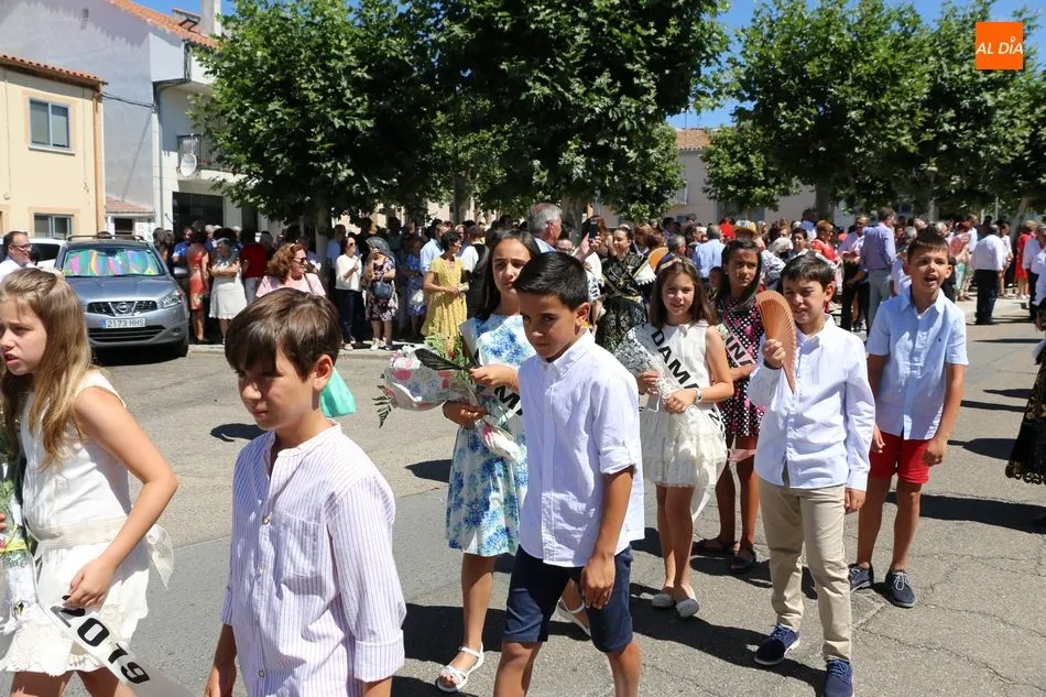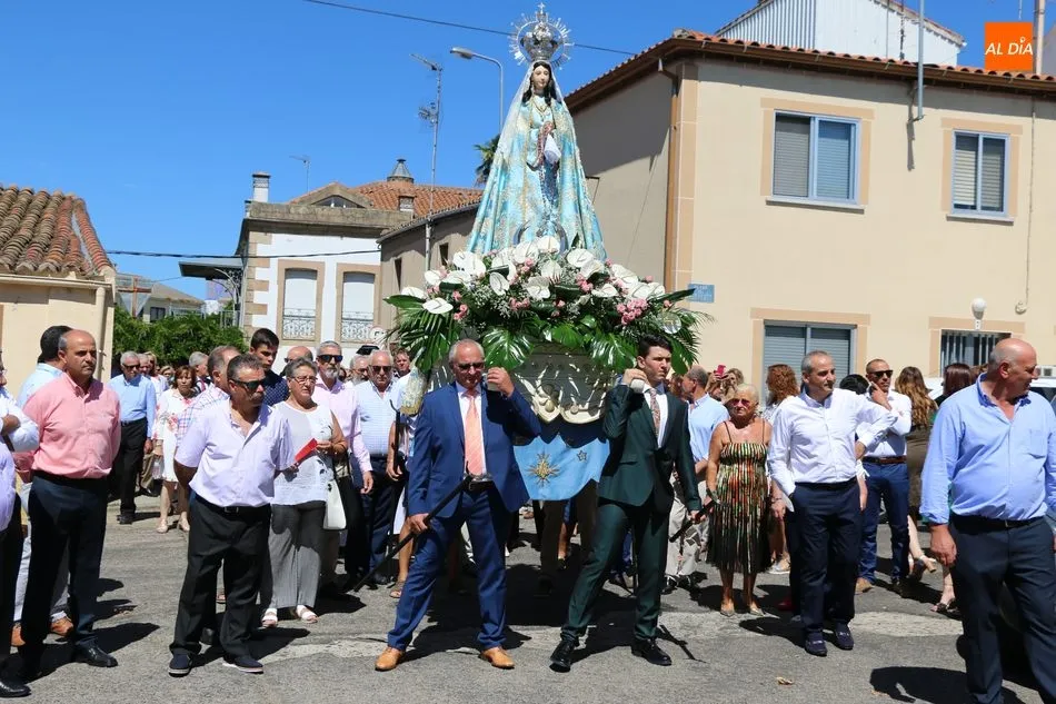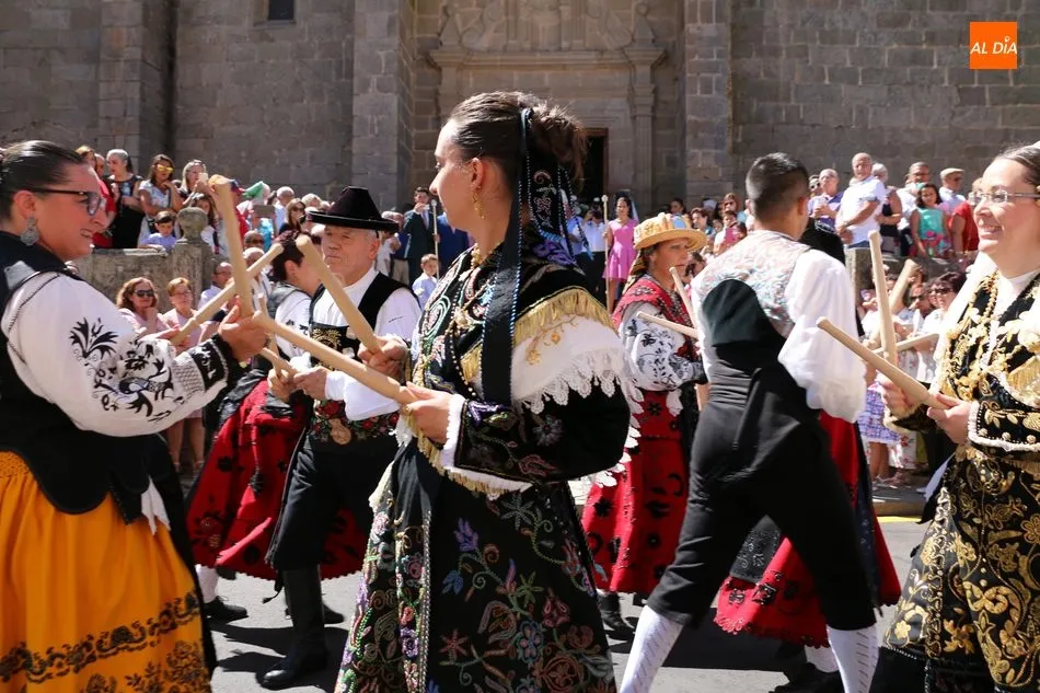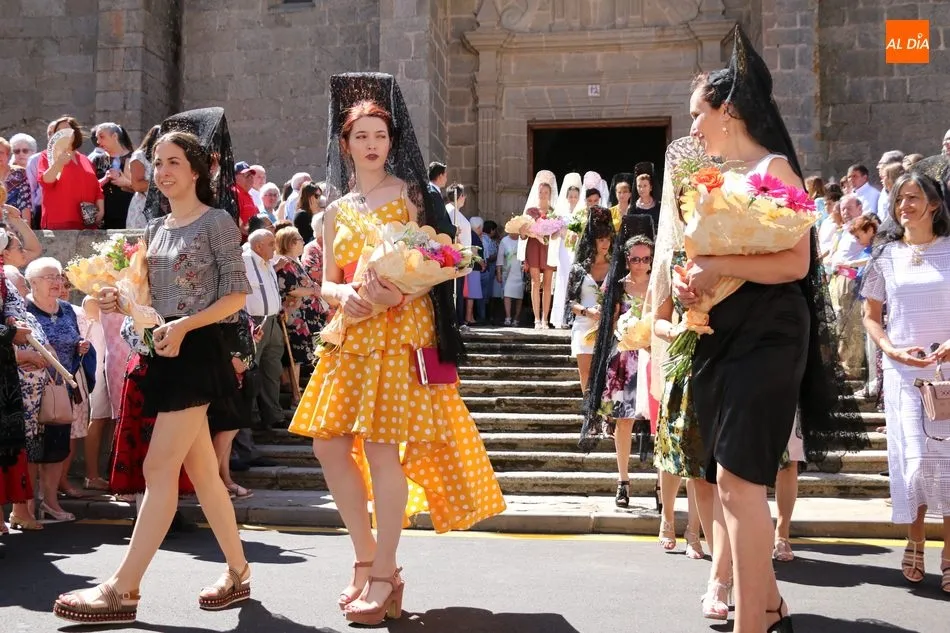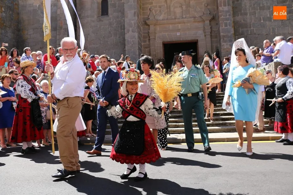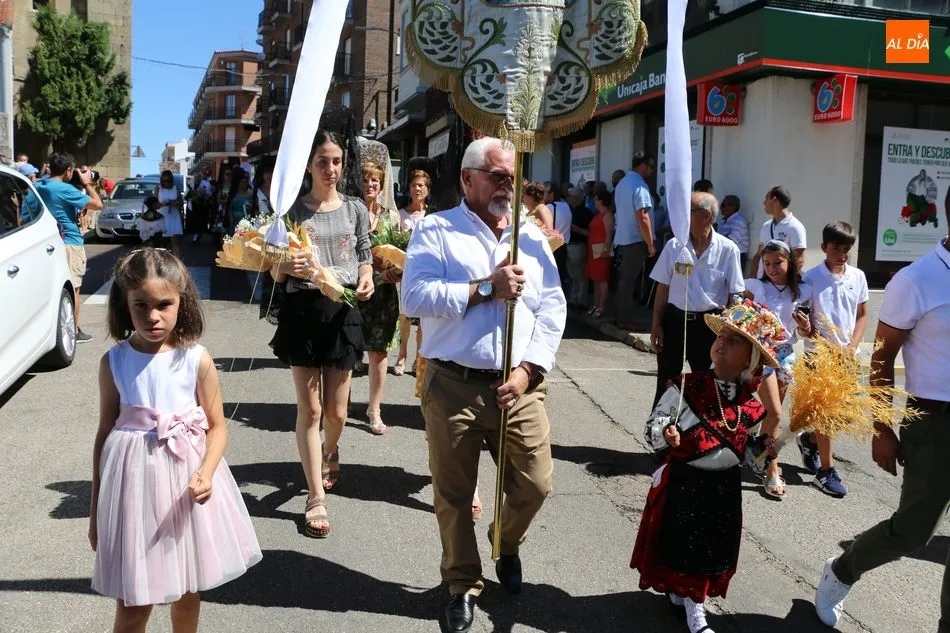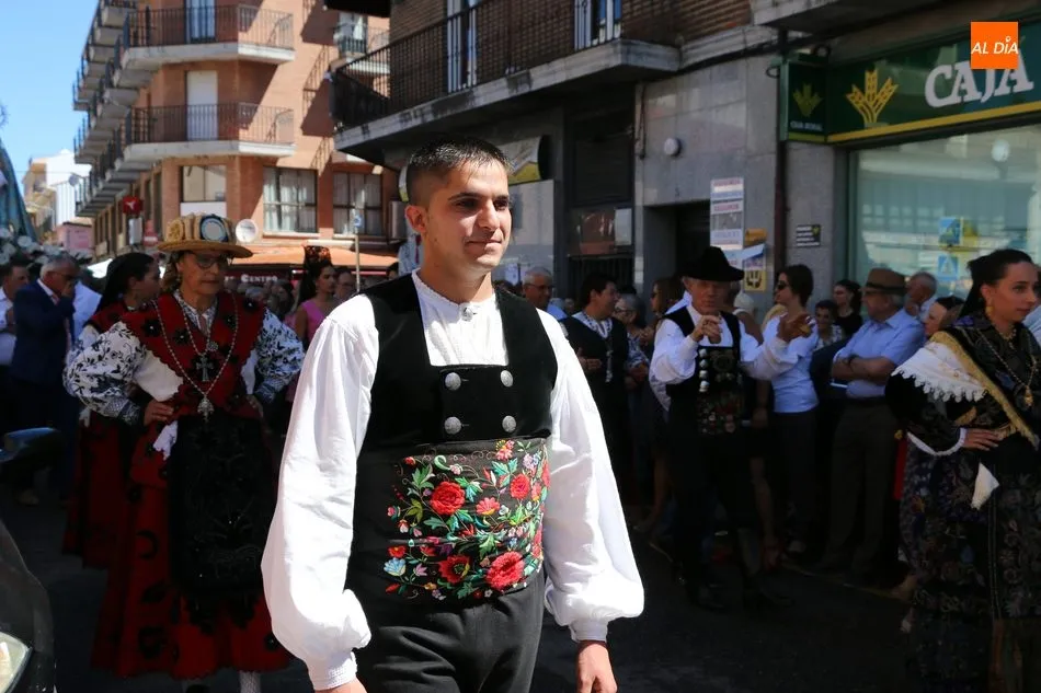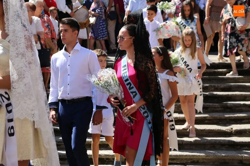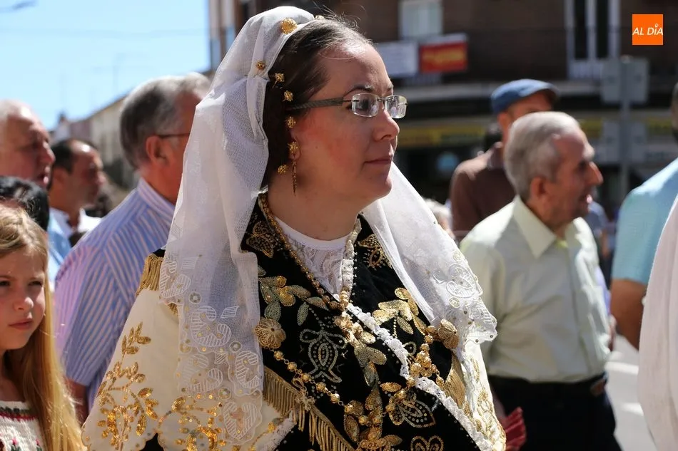 Tras la misa oficiada por los párrocos y sacerdotes de la localidad, con presencia de autoridades locales con la alcaldesa Luisa de Paz al frente, a la que acompañaba el teniente de alcalde Óscar Martín y el capitán de la Guardia Civil, Jesús Ríos, las campanas de la iglesia anunciaban la salida de la Virgen del Socorro a hombros de sus fieles y escoltada por sus mayordomas. Entre tanto, los sones de la gaita y el tamboril de David Vicente comenzaban a escucharse para recibir en la calle a Nuestra Señora, donde la aguardaban los integrantes del grupo de folclore Organza para ofrecerle sus danzas de paleos.