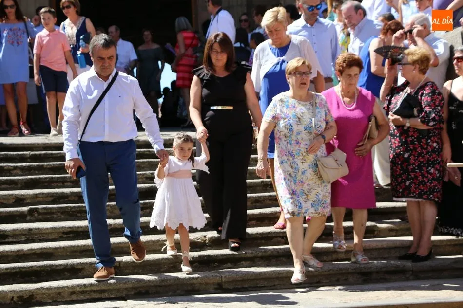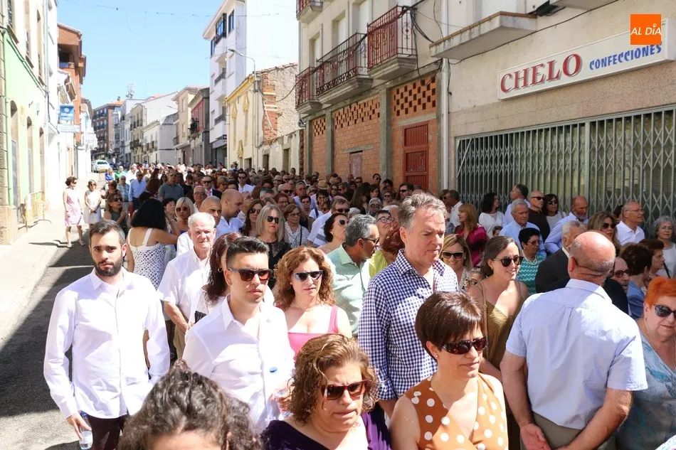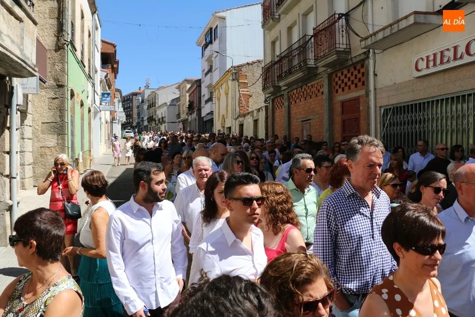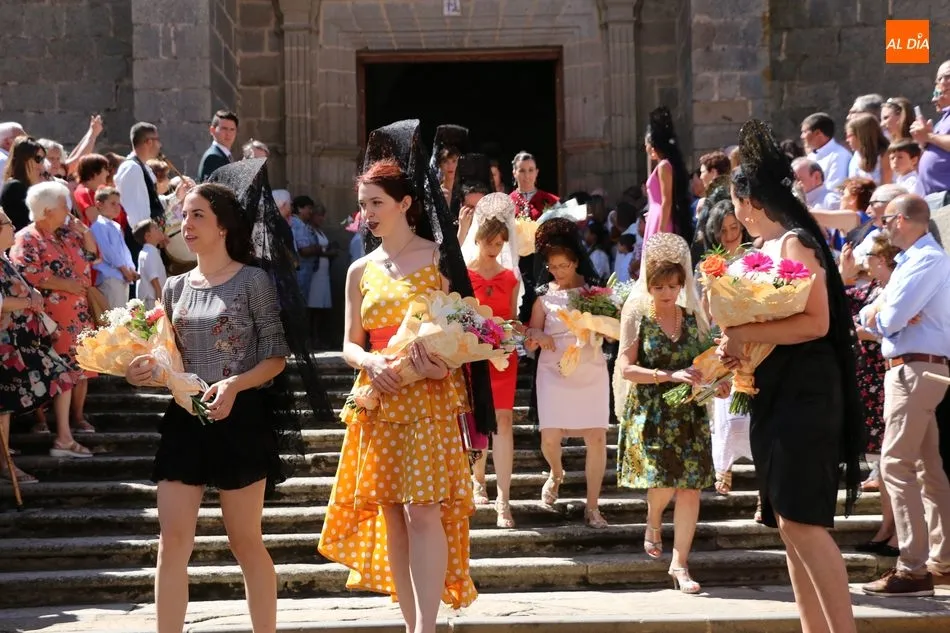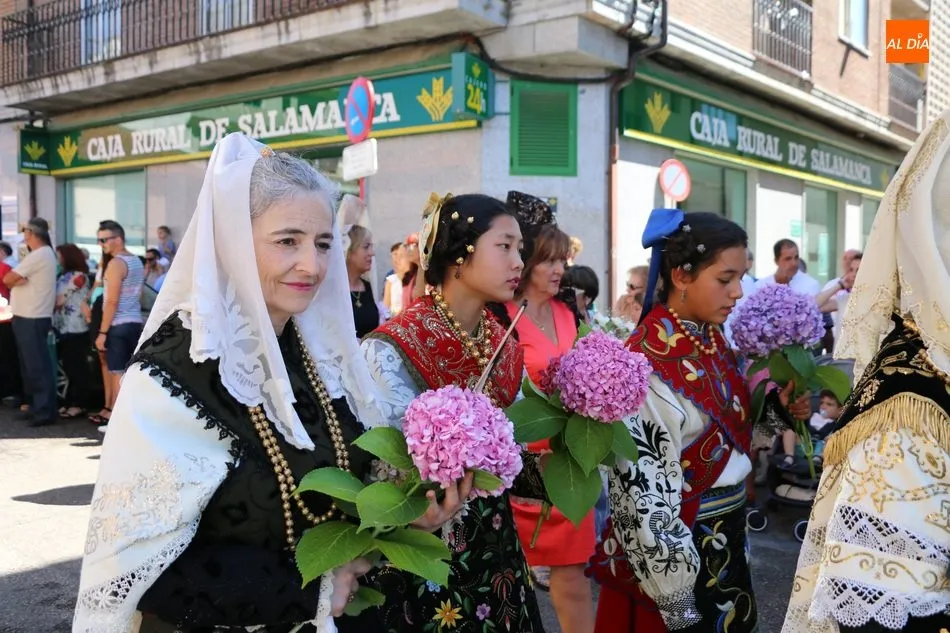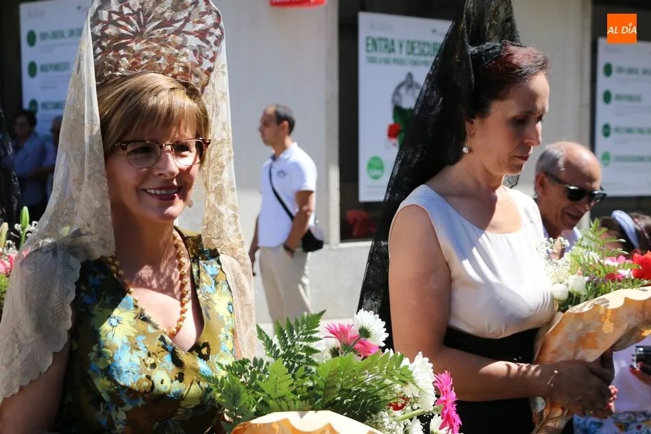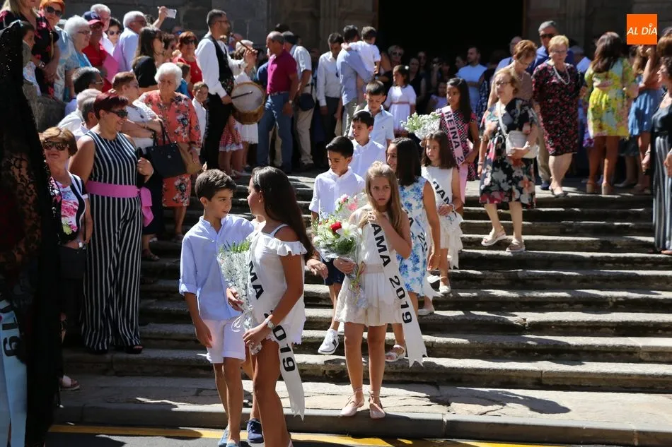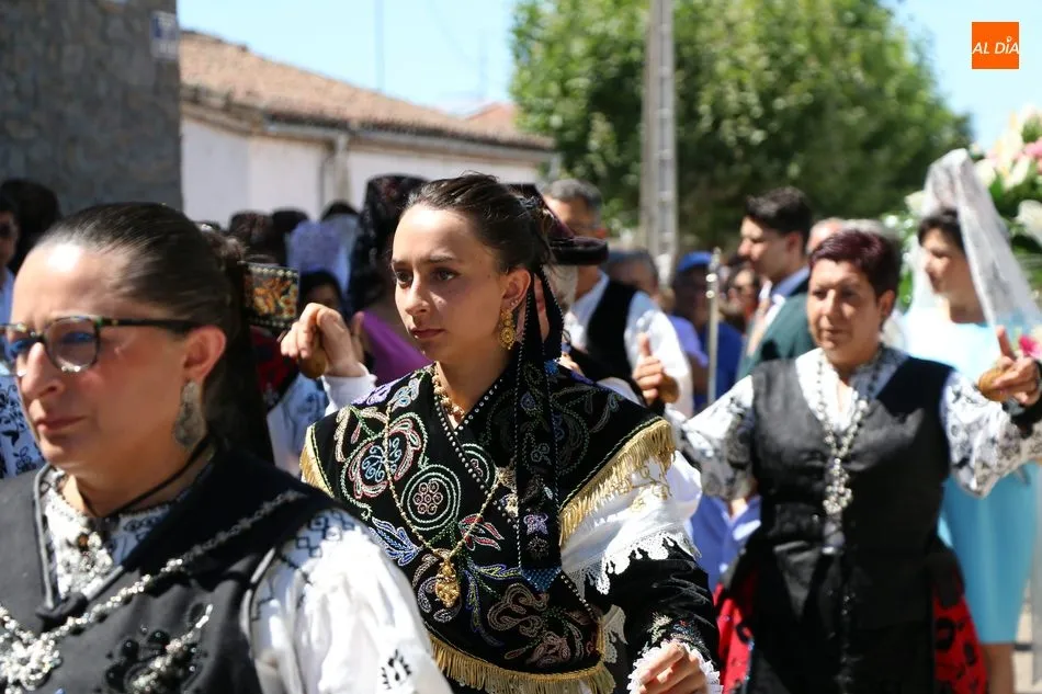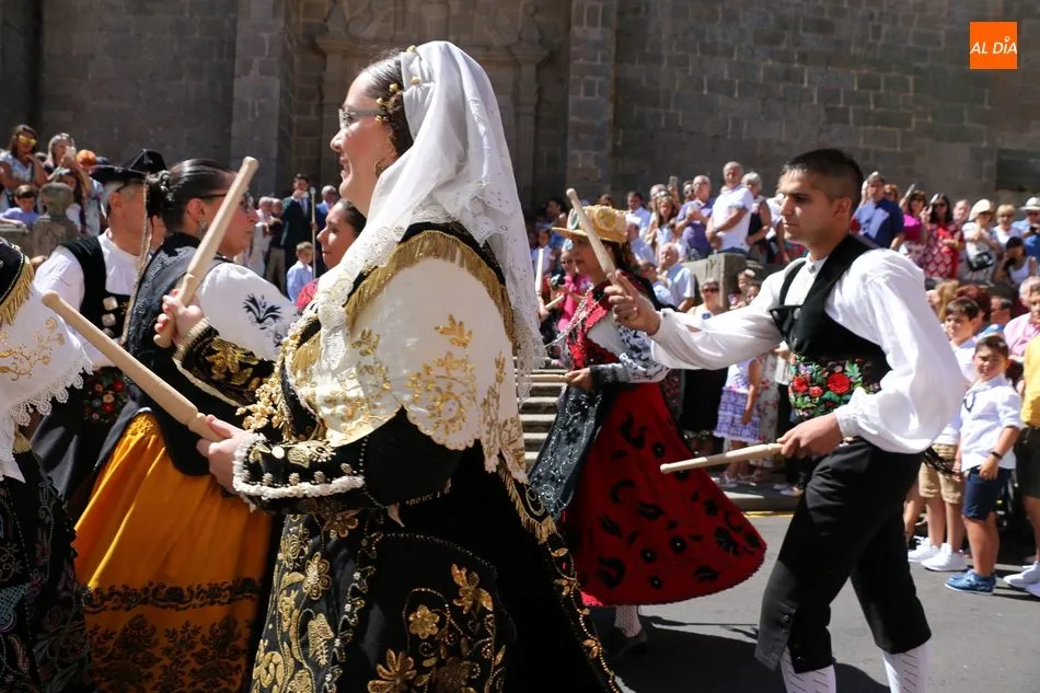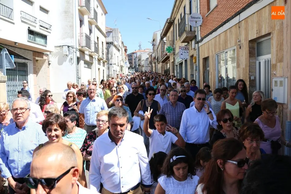 Tras la misa oficiada por los párrocos y sacerdotes de la localidad, con presencia de autoridades locales con la alcaldesa Luisa de Paz al frente, a la que acompañaba el teniente de alcalde Óscar Martín y el capitán de la Guardia Civil, Jesús Ríos, las campanas de la iglesia anunciaban la salida de la Virgen del Socorro a hombros de sus fieles y escoltada por sus mayordomas. Entre tanto, los sones de la gaita y el tamboril de David Vicente comenzaban a escucharse para recibir en la calle a Nuestra Señora, donde la aguardaban los integrantes del grupo de folclore Organza para ofrecerle sus danzas de paleos.