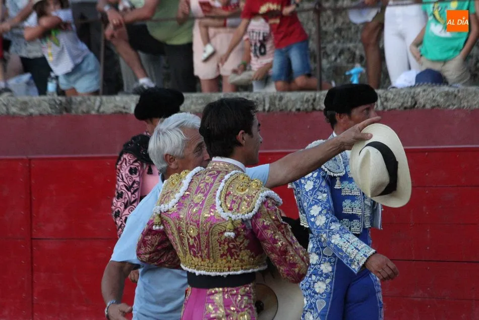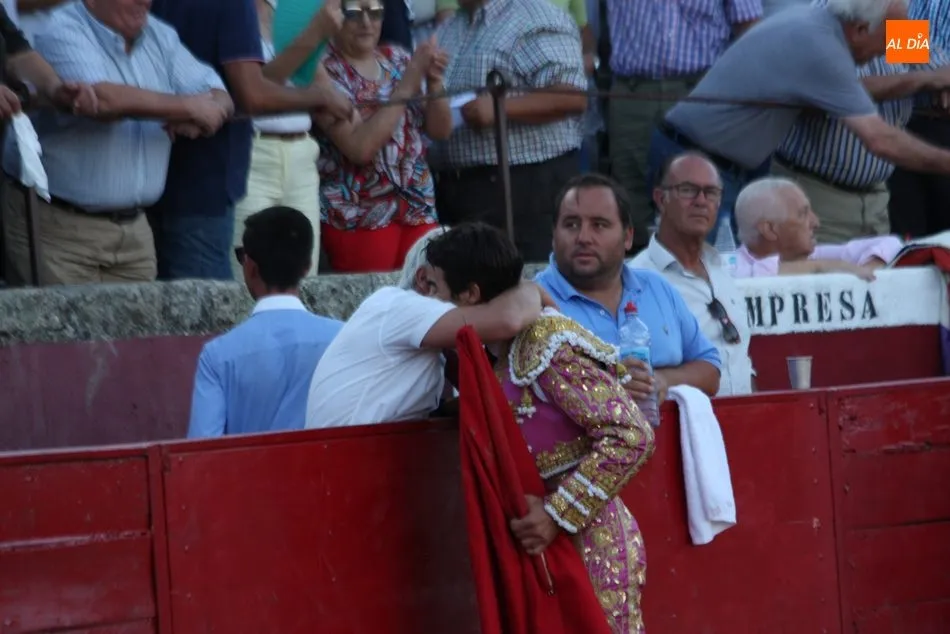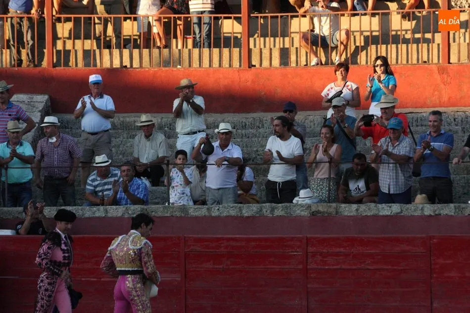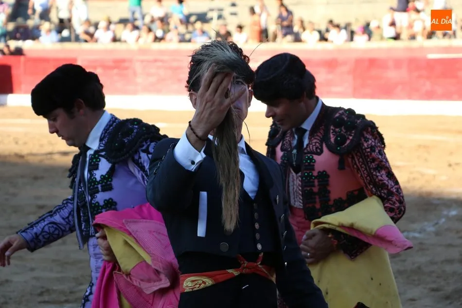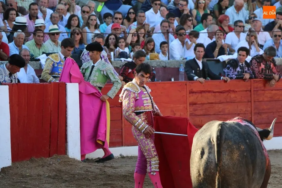 Domingo López Chaves se quedó sin trofeo en su primero por errar con la espada, que necesitó de dos medias para tumbar al Victorino después de una faena con la muleta que llegó a los tendidos. Al de Ledesma no le quedaba otra que arriesgar en su segundo, quinto de la tarde, buen toro de Victorino Martín que acabó dando la vuelta al ruedo. Chaves toreó por ambos pitones con muletazos hondos que trasmitieron emoción a los tendidos, pero un desarme a mitad y otro al final emborronaron el buen toreo del ledesmino, que arregló con un estoconazo hasta la empuñadora y que le llevó a pasear el segundo rabo de la tarde.