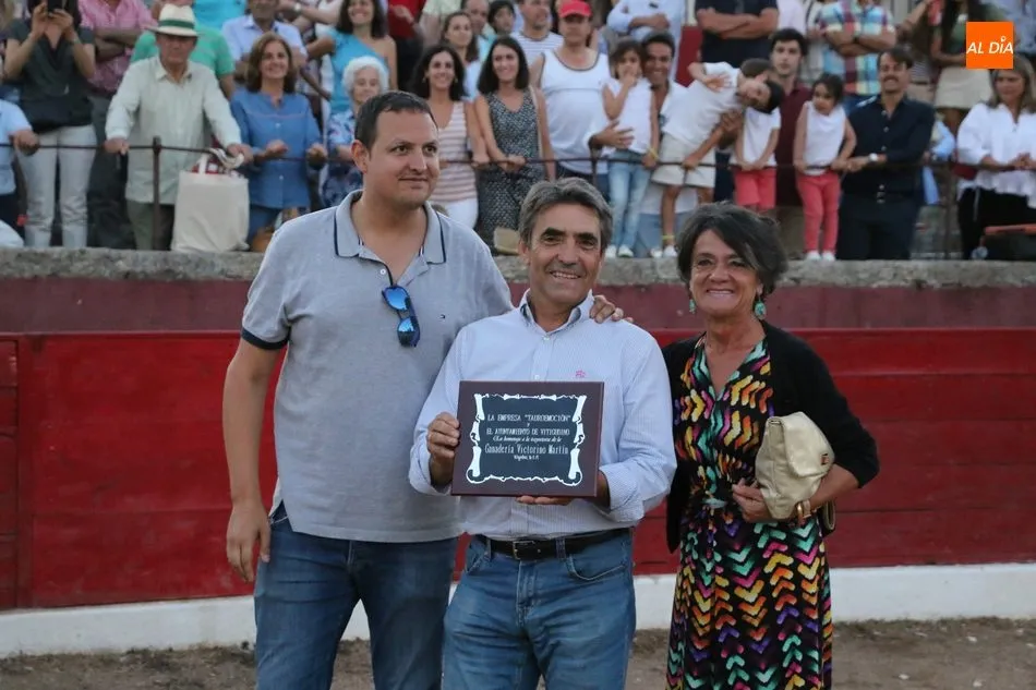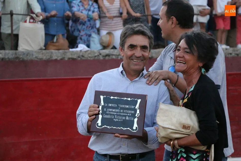 Al finalizar el festejo, la alcaldesa de Vitigudino, Luisa de Paz, le hizo entregad e una placa al ganadero Victorino Martín en homenaje por ser en esta plaza en la que su padre salió a hombros por última vez, hecho ocurrido en 2013.