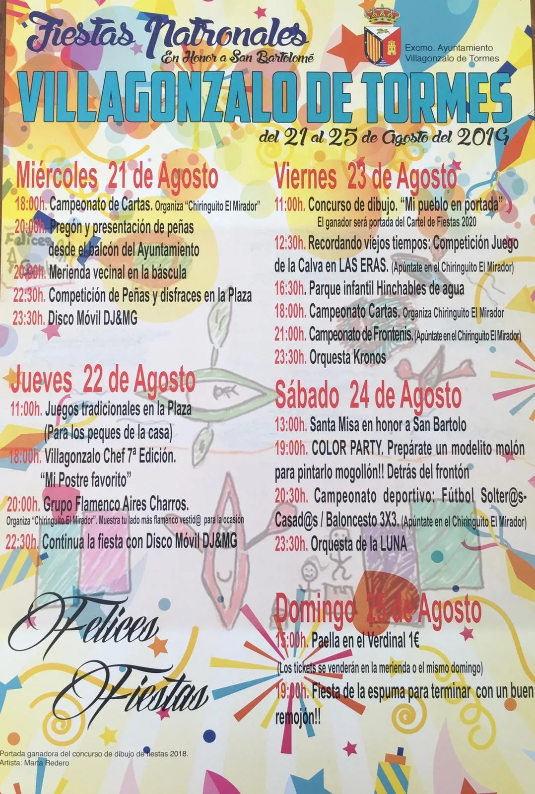 Los vecinos de Villagonzalo de Tormes ya descuentan los días del calendario que restan para celebrar las fiestas en honor a San Bartolomé. Durante cuatro jornadas, del jueves 22 al domingo 25 de agosto, este municipio salmantino de poco más de 250 habitantes que durante los meses de verano triplica su población disfrutará con los numerosos actos festivos que desde el Ayuntamiento han programado.