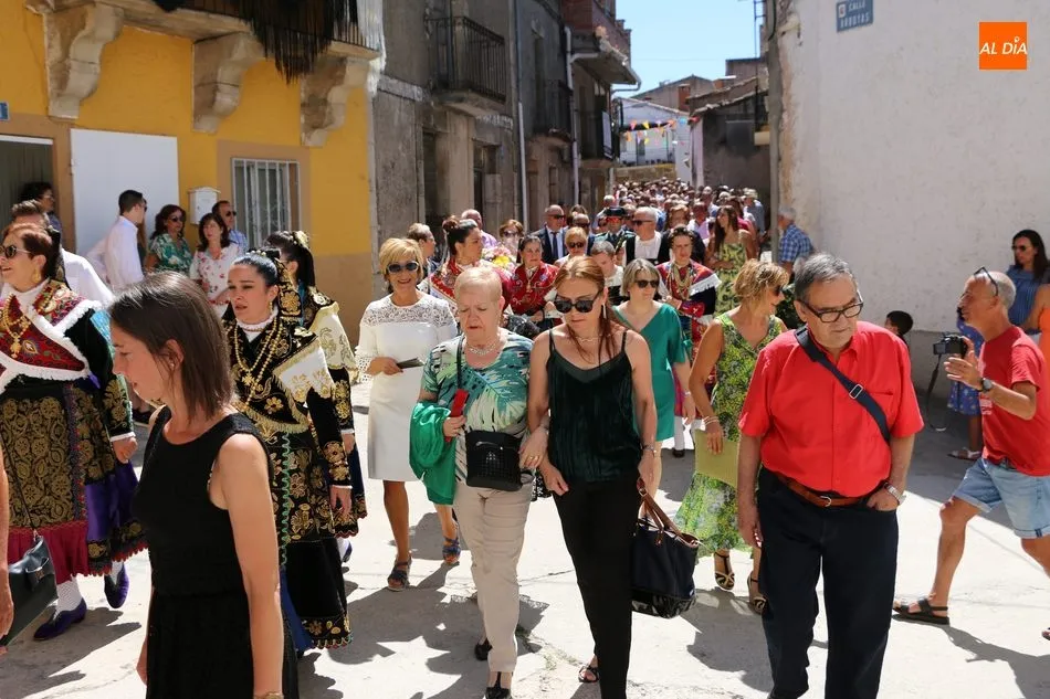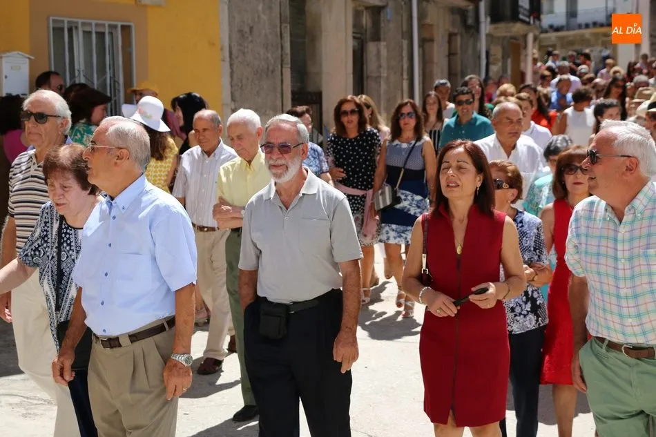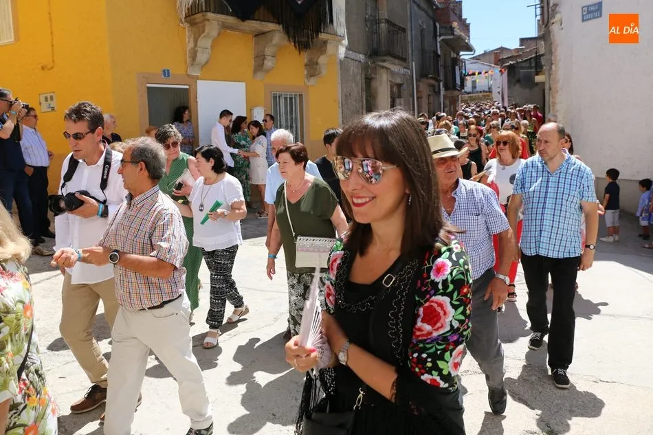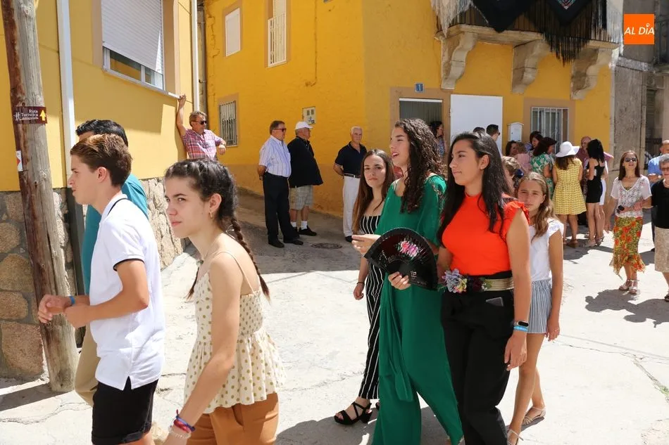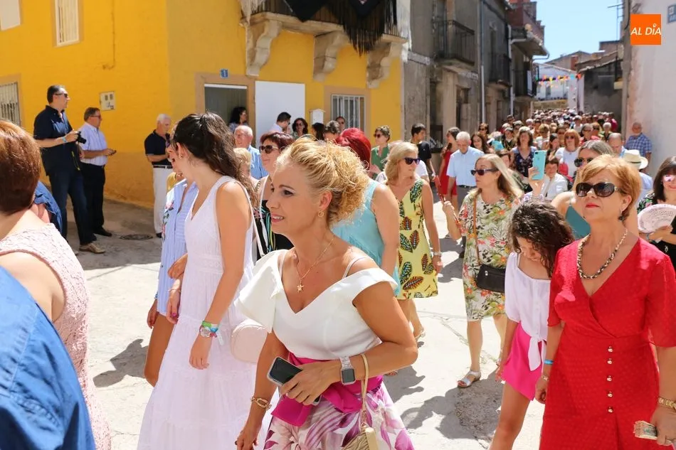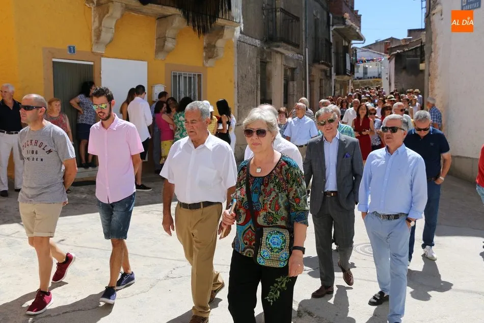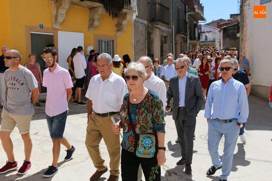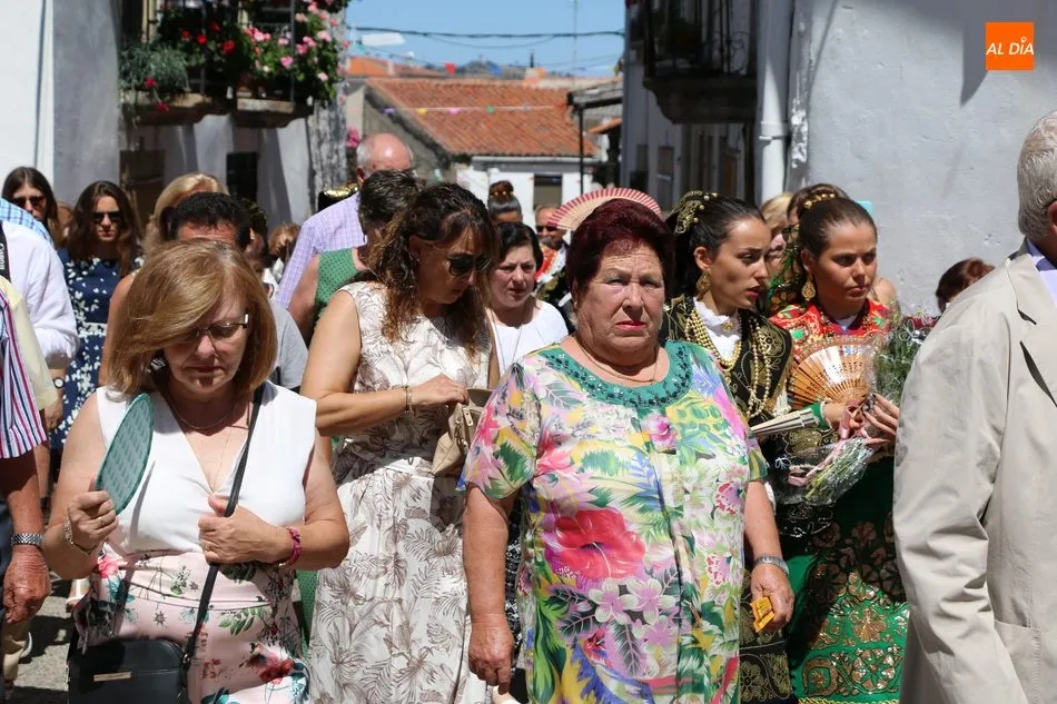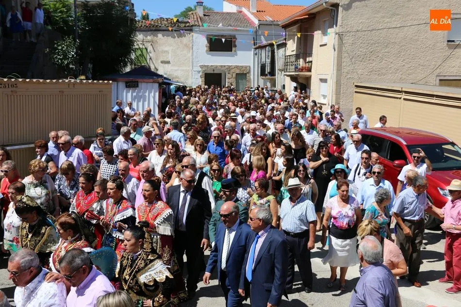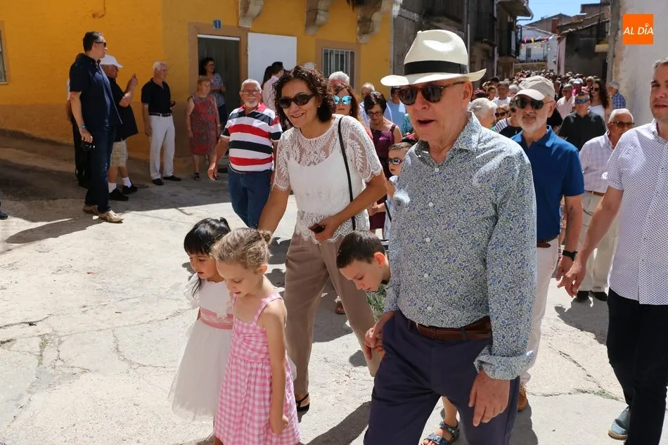 Tras la homilía oficiada por el párroco local, José Ramón Mateos, acoampñadp también por el sacerdote Ignacio Gómez, los vecinos sacaron al Patrón en procesión. La devoción a San Roque se percibía cada pocos metros con paradas para que todos pudieran llevar a hombros la peana del Santo, hasta su entrada en la Plaza Mayor, donde un grupo de charras le brindó un baile interpretado con la gaita y el tamboril por los tamborileros locales Fernando Corral, Javier Ramos y Jorge Martín.