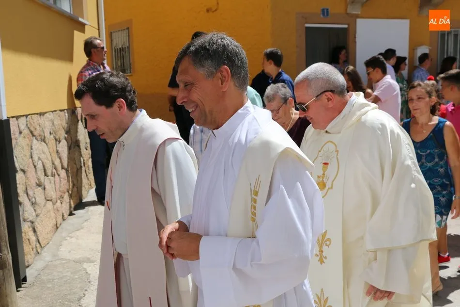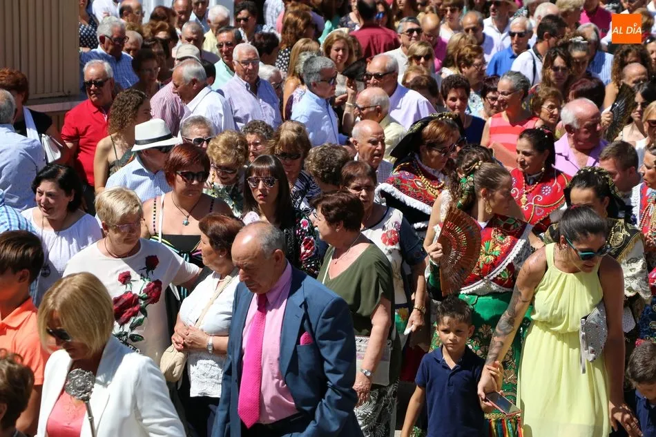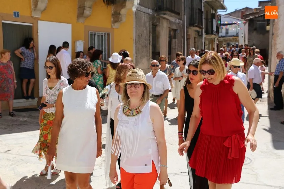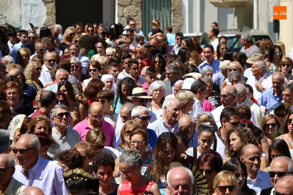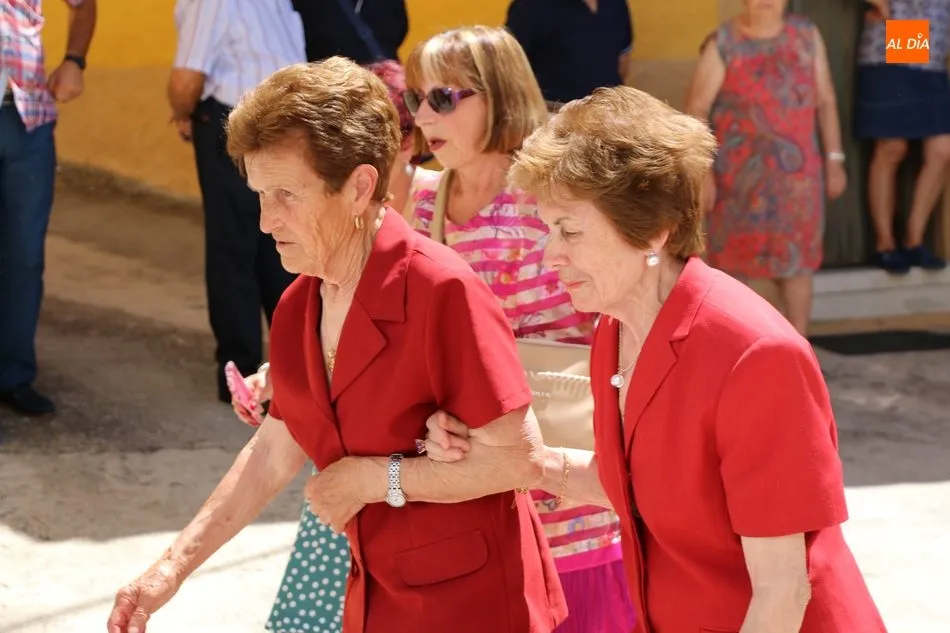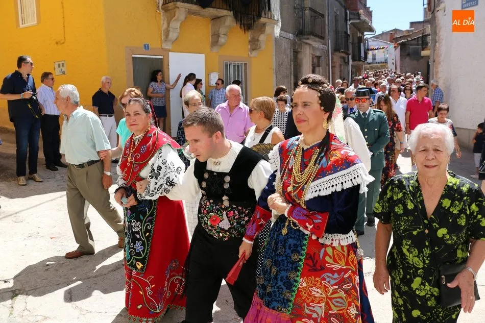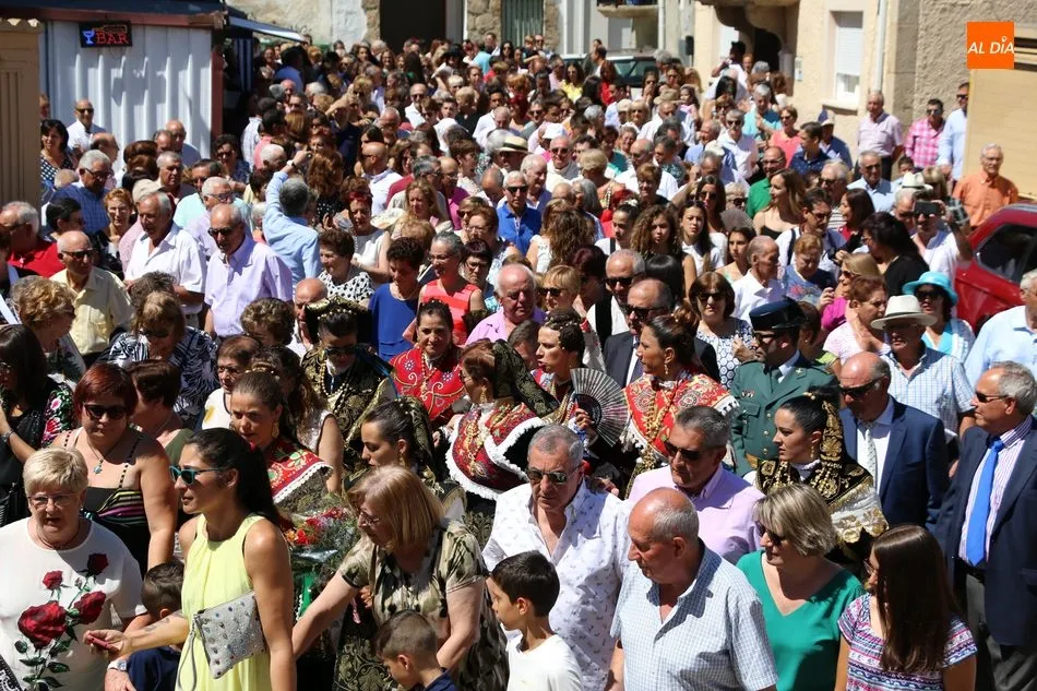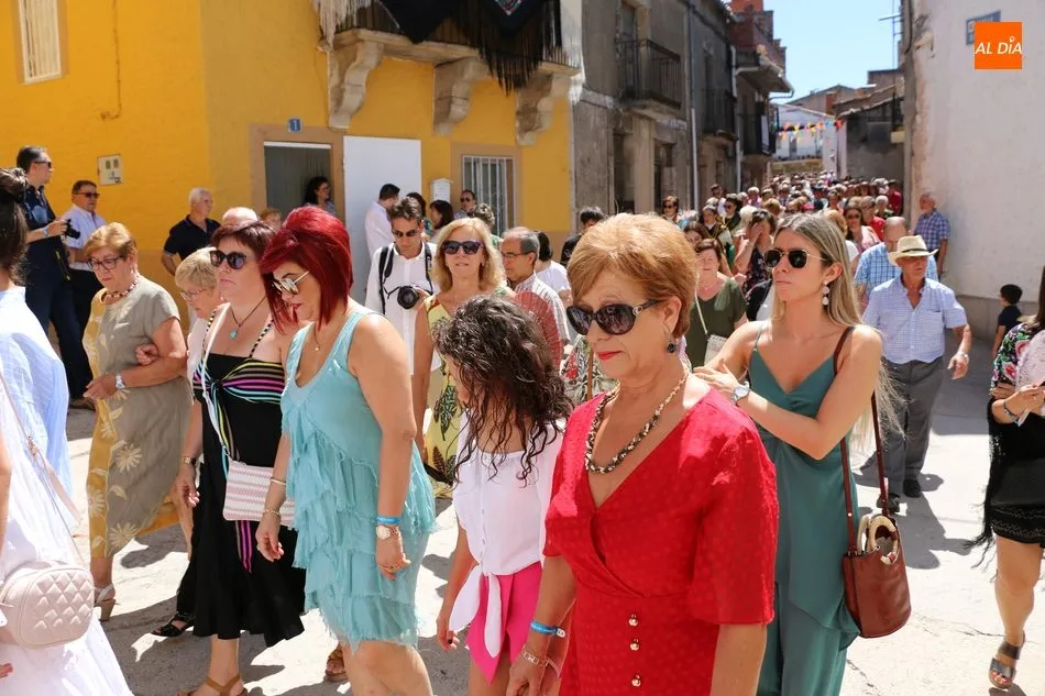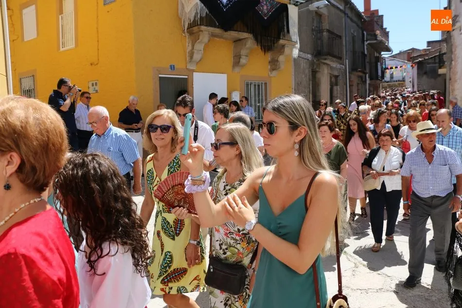 Tras la homilía oficiada por el párroco local, José Ramón Mateos, acoampñadp también por el sacerdote Ignacio Gómez, los vecinos sacaron al Patrón en procesión. La devoción a San Roque se percibía cada pocos metros con paradas para que todos pudieran llevar a hombros la peana del Santo, hasta su entrada en la Plaza Mayor, donde un grupo de charras le brindó un baile interpretado con la gaita y el tamboril por los tamborileros locales Fernando Corral, Javier Ramos y Jorge Martín.