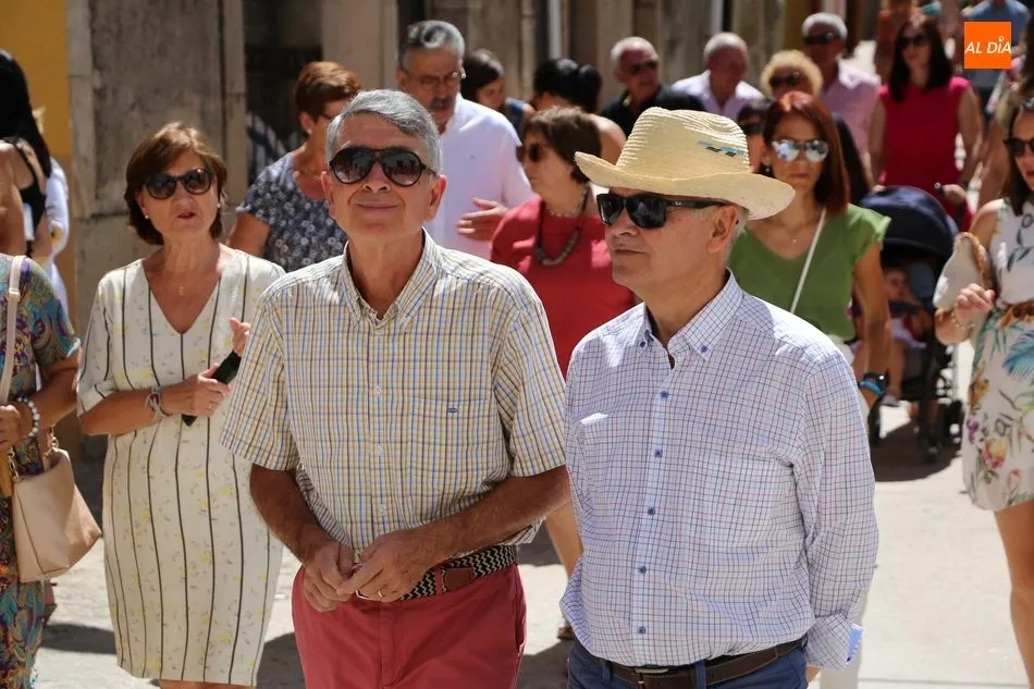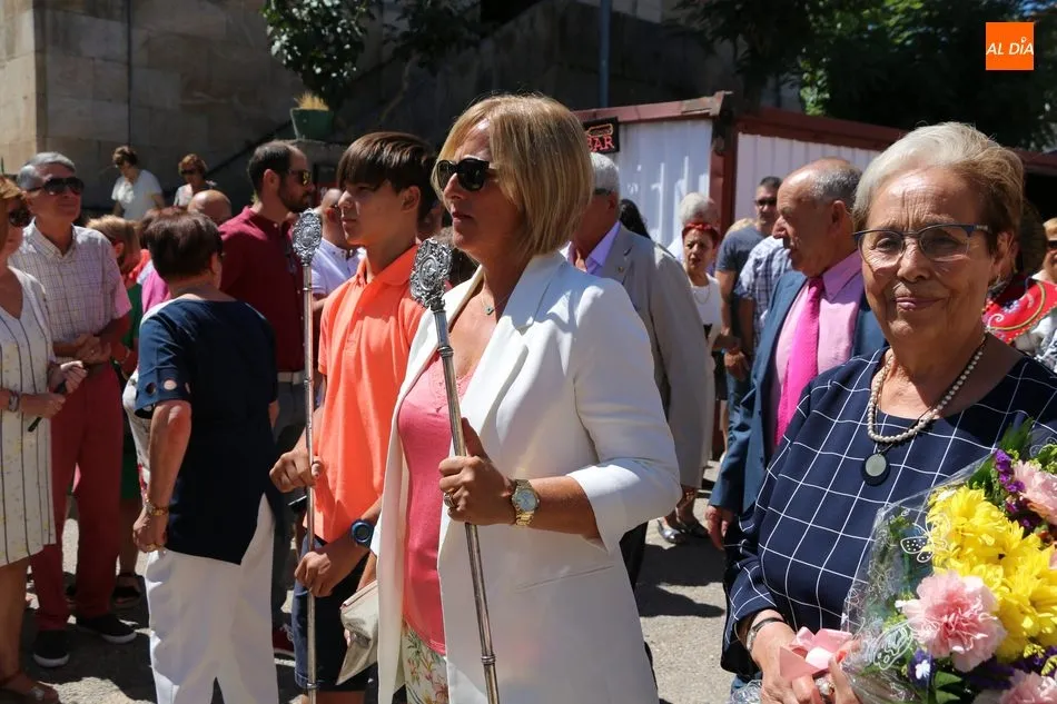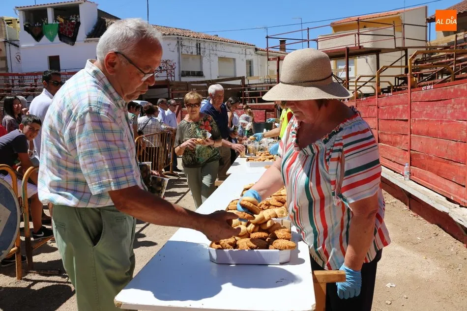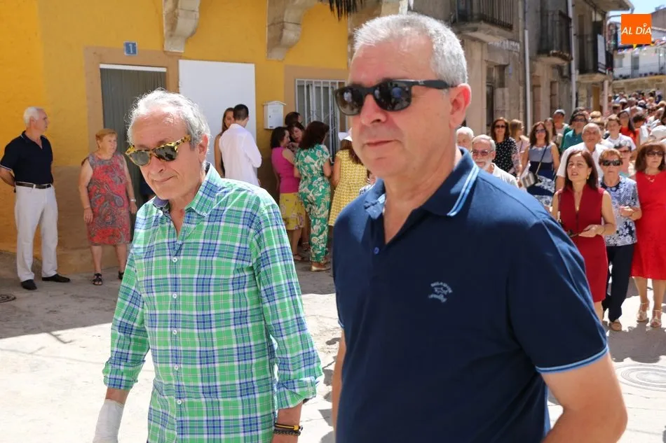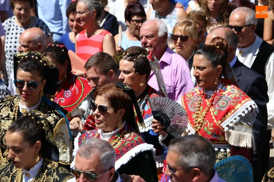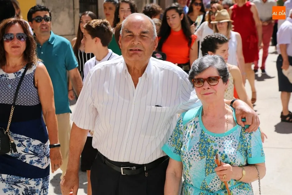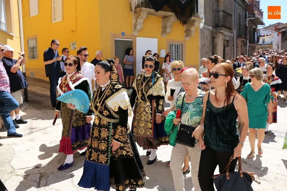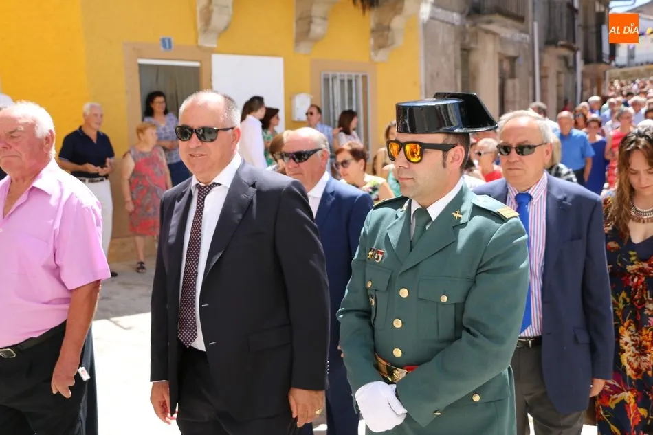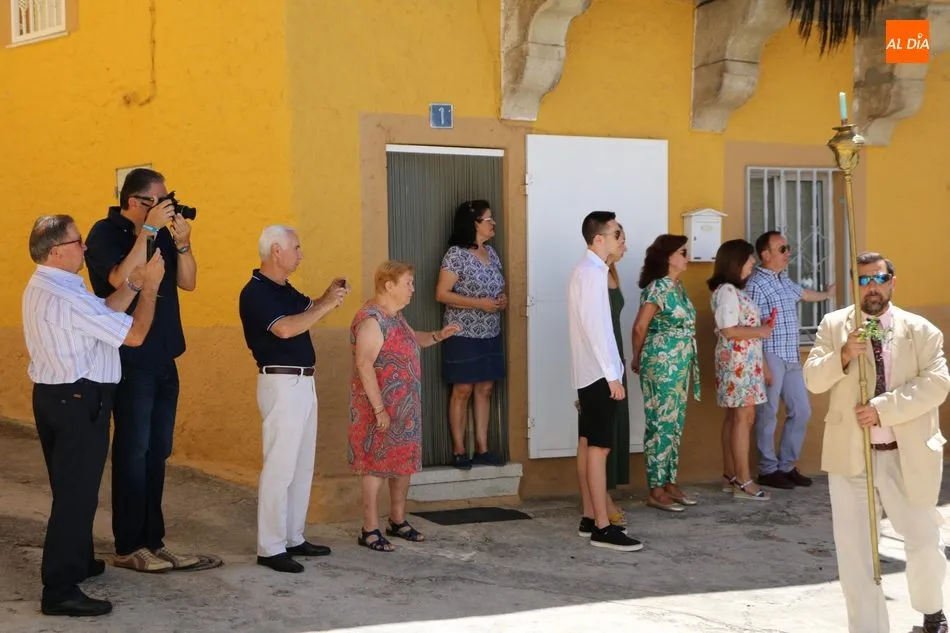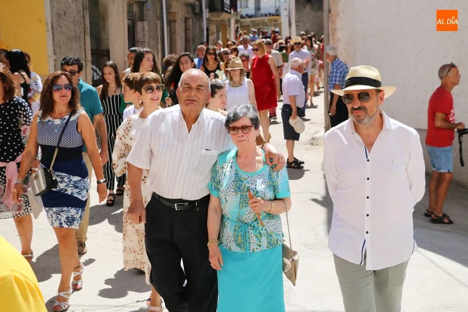 Tras la homilía oficiada por el párroco local, José Ramón Mateos, acoampñadp también por el sacerdote Ignacio Gómez, los vecinos sacaron al Patrón en procesión. La devoción a San Roque se percibía cada pocos metros con paradas para que todos pudieran llevar a hombros la peana del Santo, hasta su entrada en la Plaza Mayor, donde un grupo de charras le brindó un baile interpretado con la gaita y el tamboril por los tamborileros locales Fernando Corral, Javier Ramos y Jorge Martín.