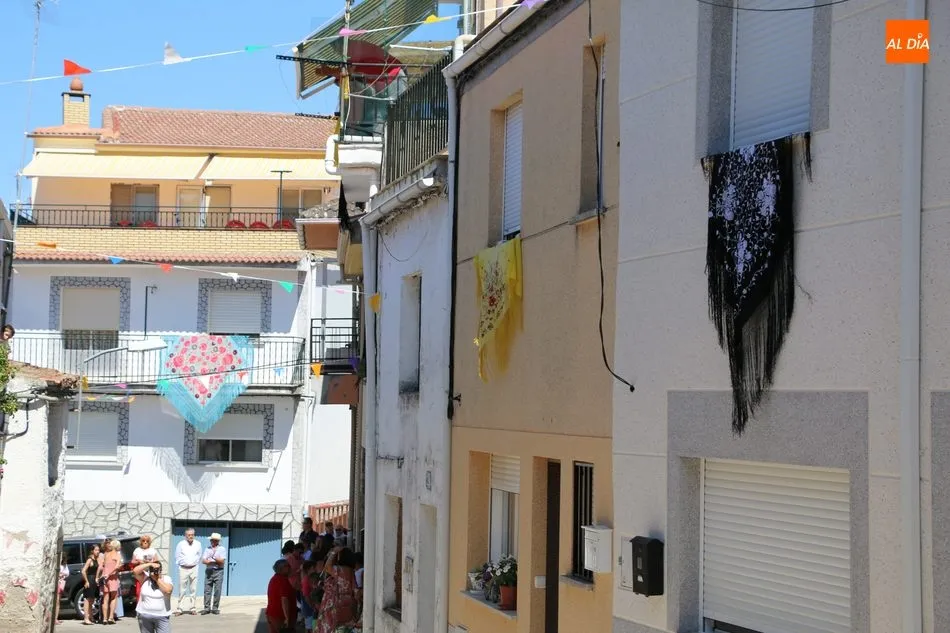 San Roque pasea en procesión en Villarino por entre calles de hierbabuena y balcones con mantillas ...