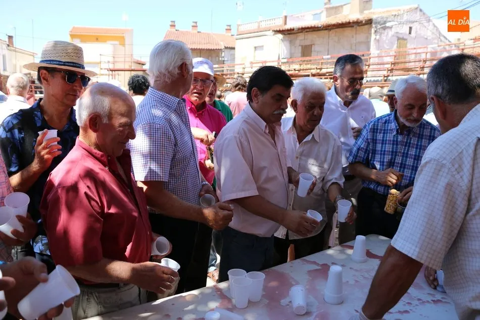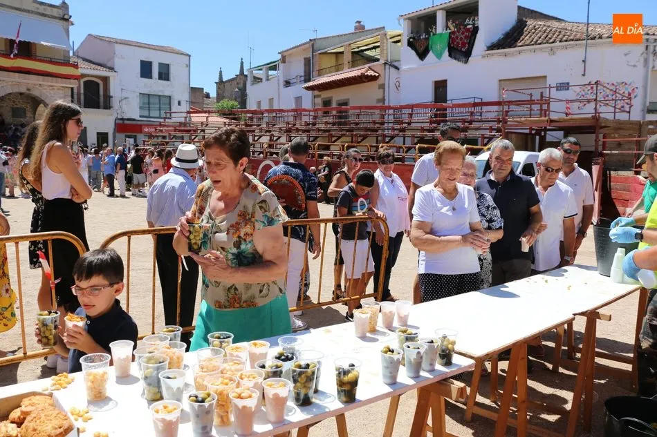 Con el patrón ya de regreso en sus aposentos de Santa María la Mayor, los vecinos volvían a la Plaza para dar cuenta del convite de chochos, aceitunas y sangría ofrecido por el Ayuntamiento, evento al que seguirá esta tarde in tobogán gigante para los más pequeños y una actuación musical en el Sagrado antes de la verbena que será amenizada por la orquesta Costa Dorada.