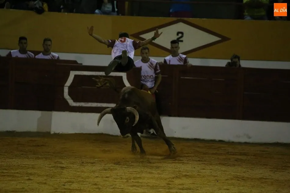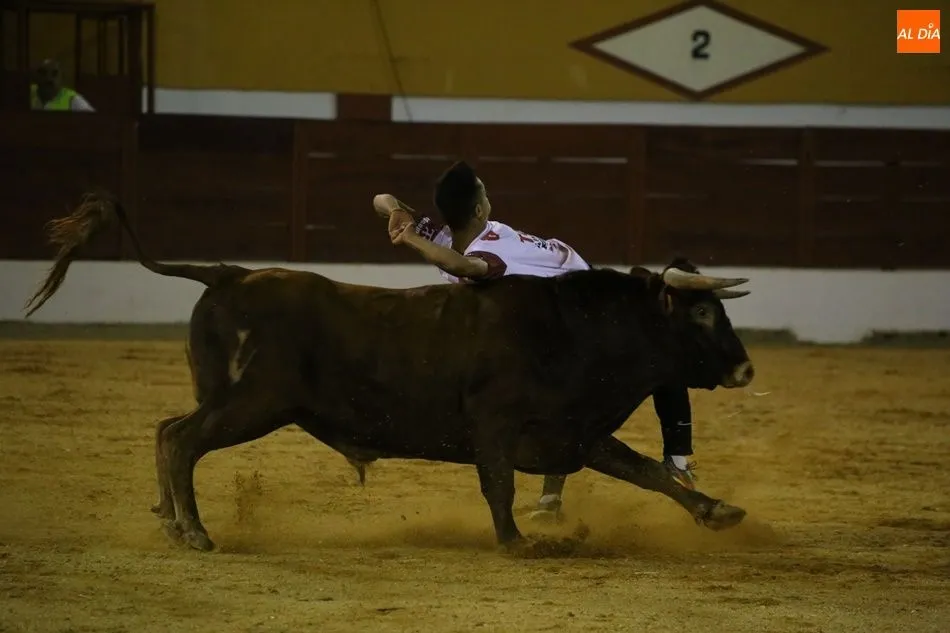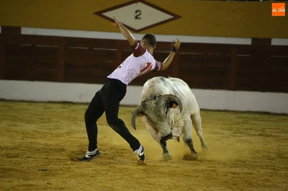 El público, completamente entregado, animó en todo momento a los mozos. Los mayores aplausos fueron para Iván González, natural de Babilafuente, en su primera actuación como recortador en su pueblo.