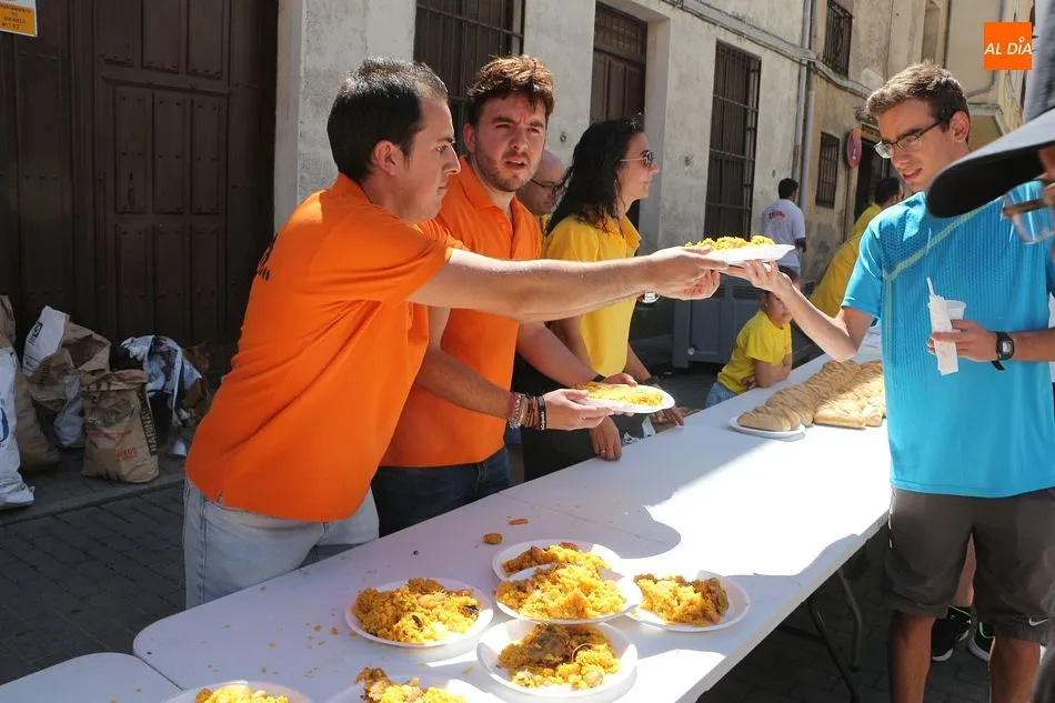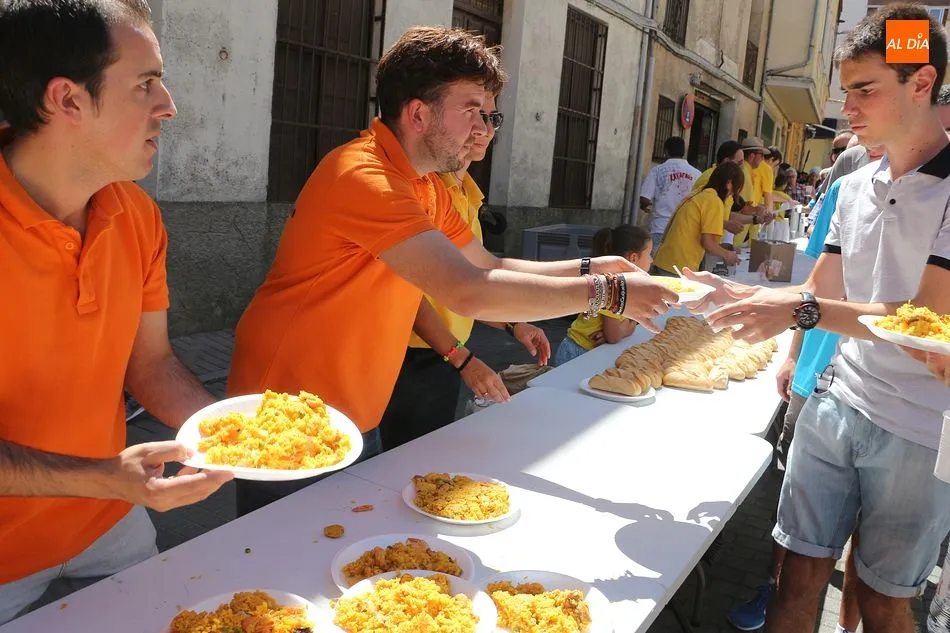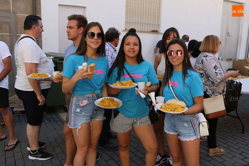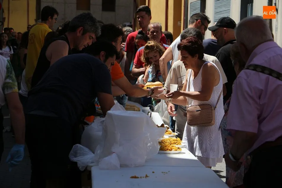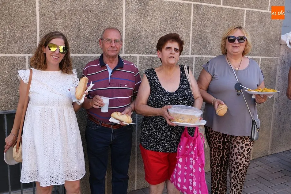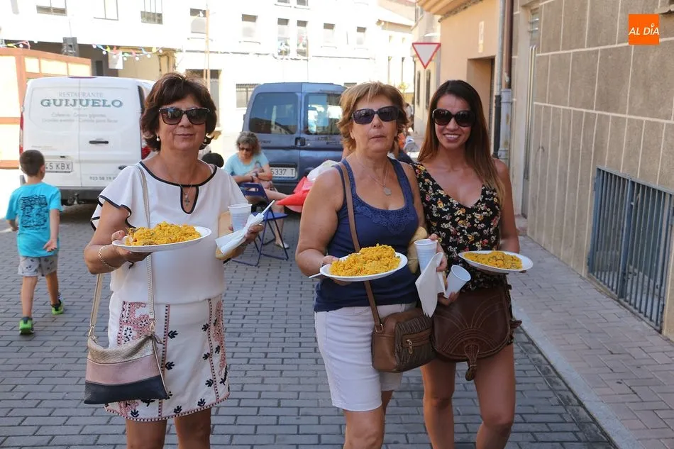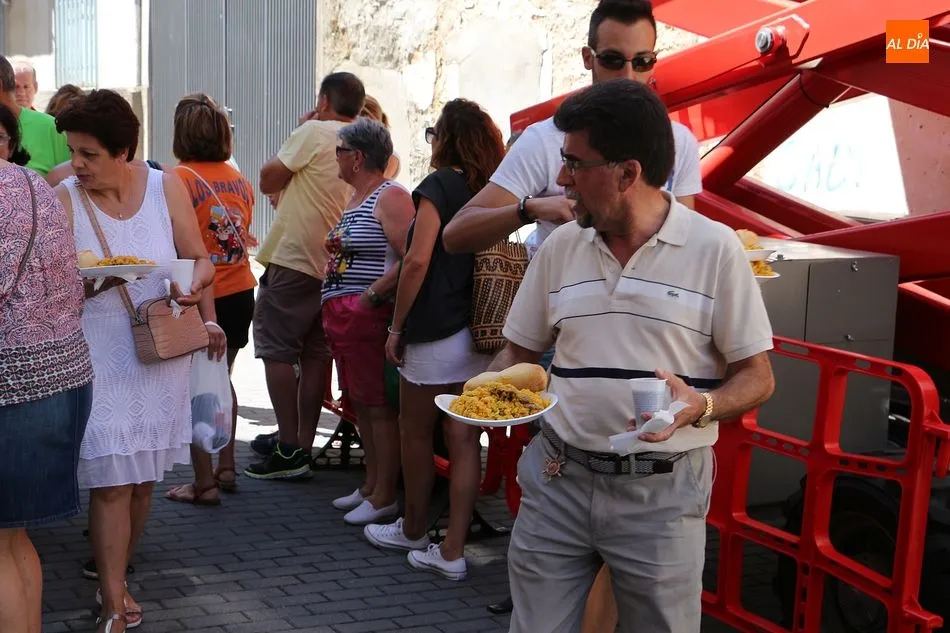Guijuelo afronta hoy una nueva jornada festiva, en esta ocasión con la comida como protagonista. Este año la comida ha tenido carácter solidario, con donaciones de 1 euro por cada comensal, dinero que se destina a la Asociación Española Contra el Cáncer y Manos Unidas. En total se han repartido más de 1.200 vales para la paellada que tradicionalmente se ha repartido en la calle Pedro Flores. El alcalde, Roberto Martín, el concejal de festejos Roberto Hernández y la concejala de Cultura, María Jesús Moro, han estado presentes, así como representantes de las ONG beneficiarias.