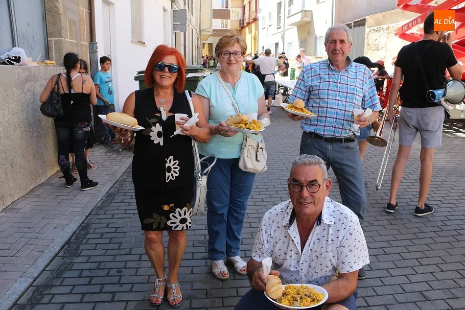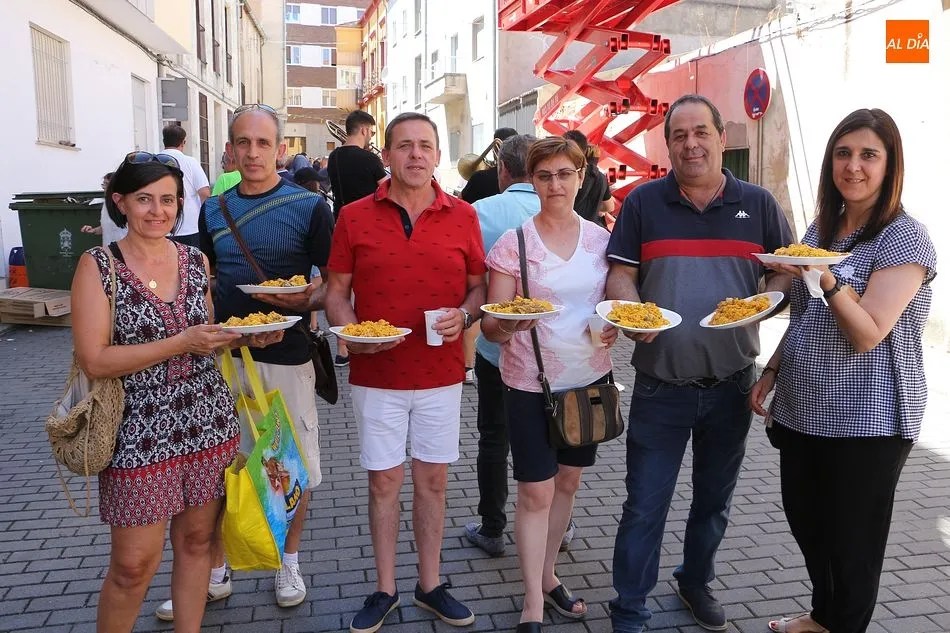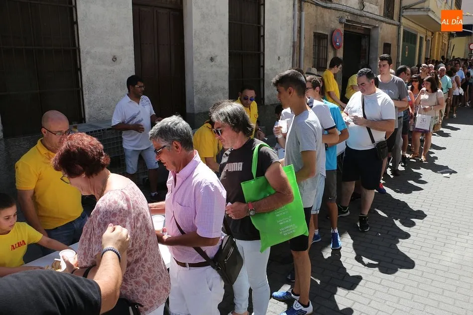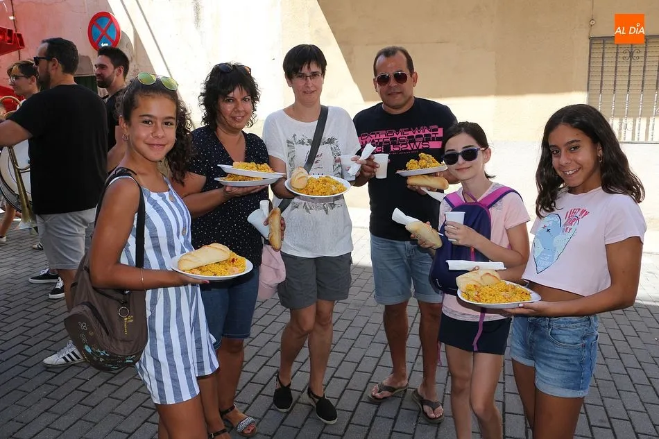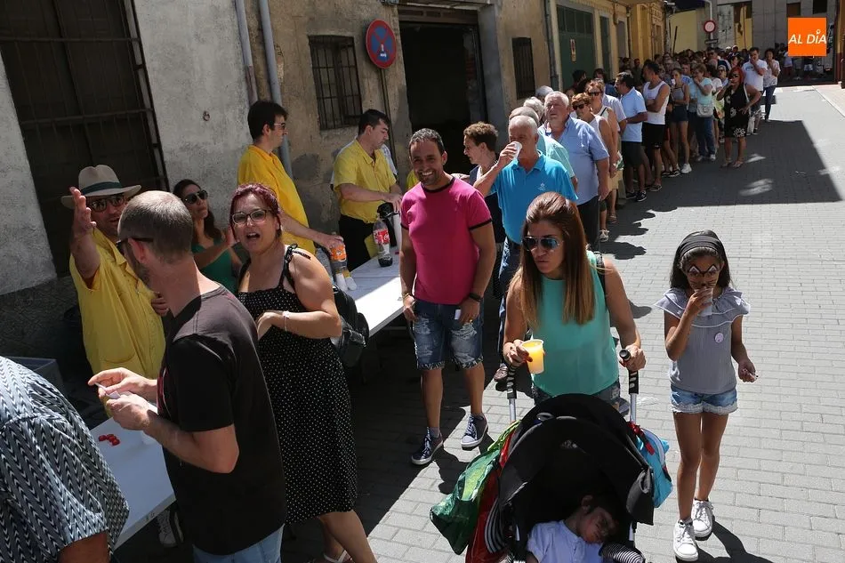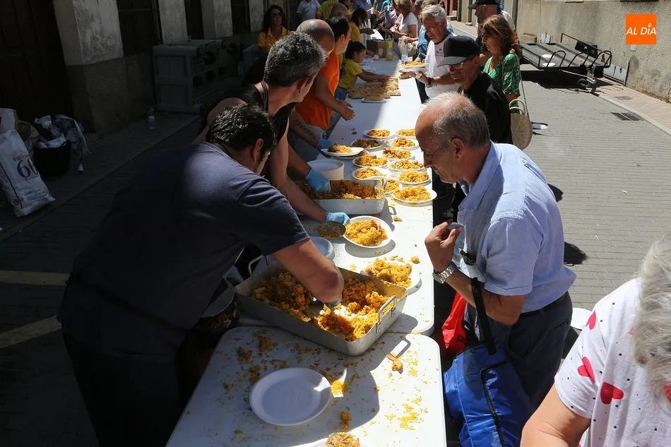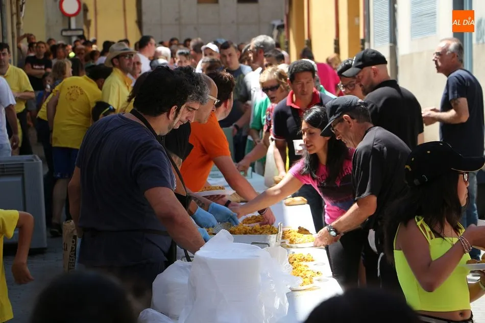 Guijuelo afronta hoy una nueva jornada festiva, en esta ocasión con la comida como protagonista. Este año la comida ha tenido carácter solidario, con donaciones de 1 euro por cada comensal, dinero que se destina a la Asociación Española Contra el Cáncer y Manos Unidas. En total se han repartido más de 1.200 vales para la paellada que tradicionalmente se ha repartido en la calle Pedro Flores. El alcalde, Roberto Martín, el concejal de festejos Roberto Hernández y la concejala de Cultura, María Jesús Moro, han estado presentes, así como representantes de las ONG beneficiarias.