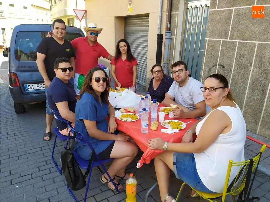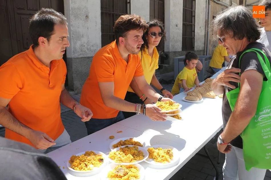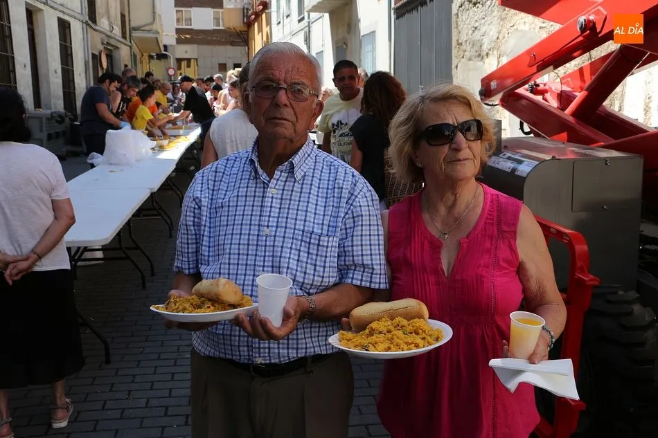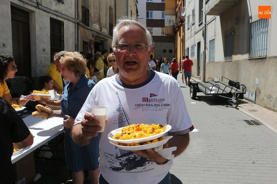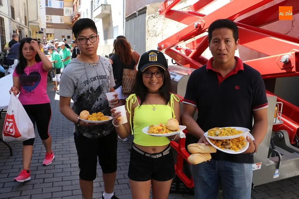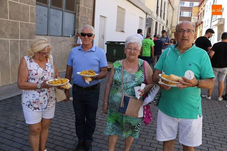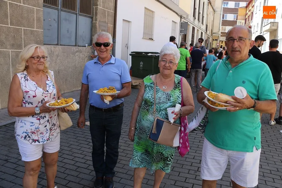 Guijuelo afronta hoy una nueva jornada festiva, en esta ocasión con la comida como protagonista. Este año la comida ha tenido carácter solidario, con donaciones de 1 euro por cada comensal, dinero que se destina a la Asociación Española Contra el Cáncer y Manos Unidas. En total se han repartido más de 1.200 vales para la paellada que tradicionalmente se ha repartido en la calle Pedro Flores. El alcalde, Roberto Martín, el concejal de festejos Roberto Hernández y la concejala de Cultura, María Jesús Moro, han estado presentes, así como representantes de las ONG beneficiarias.